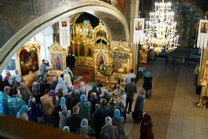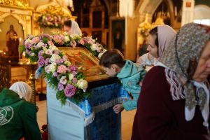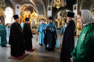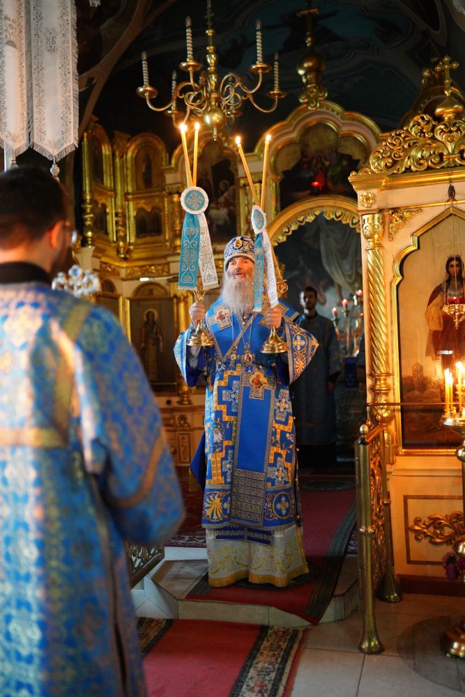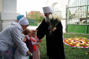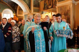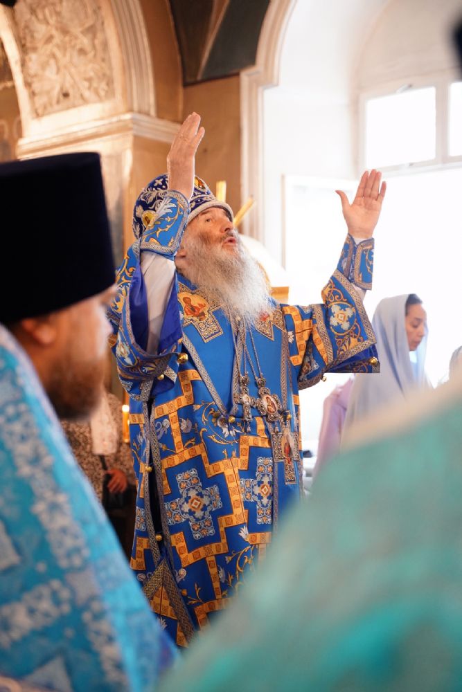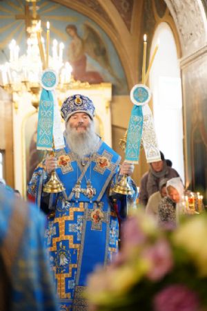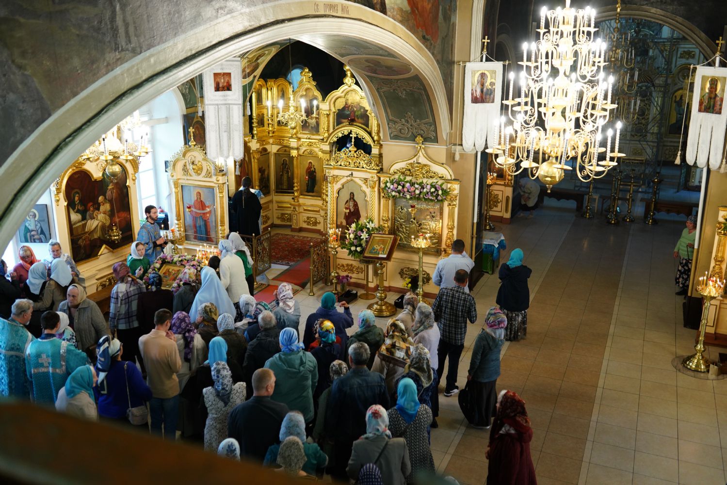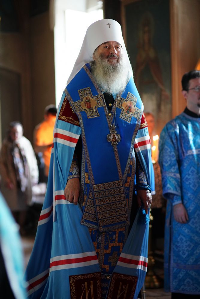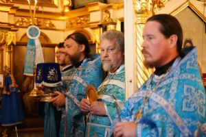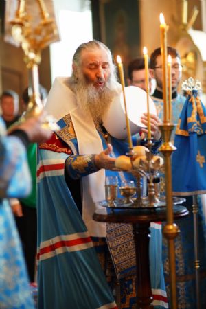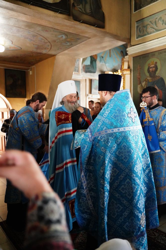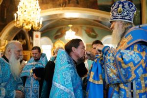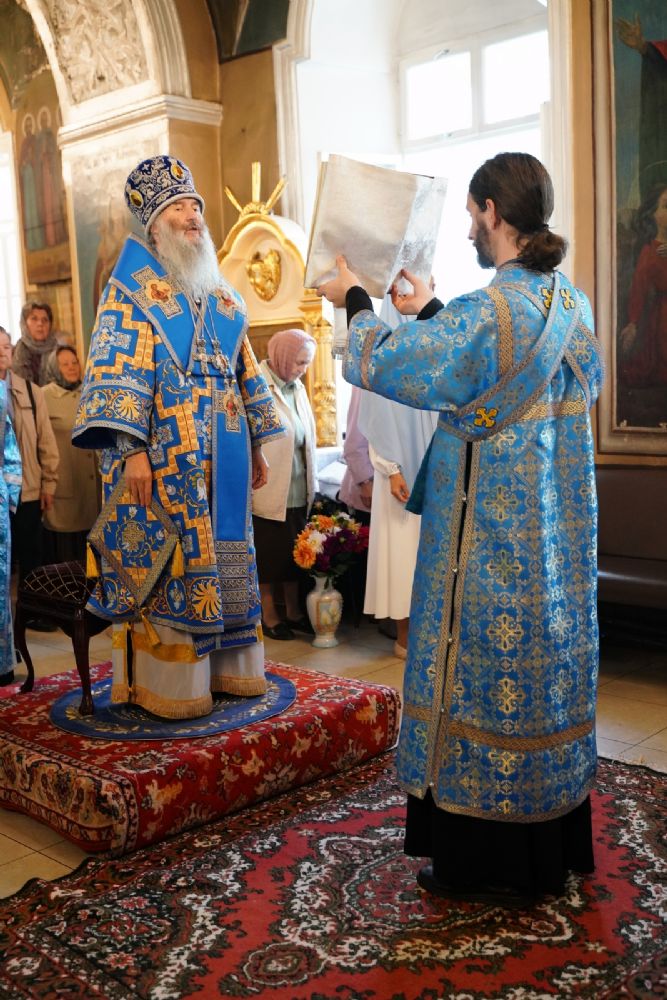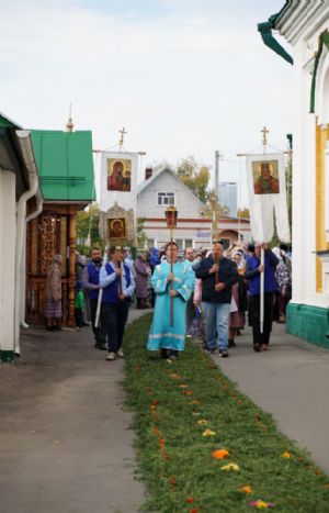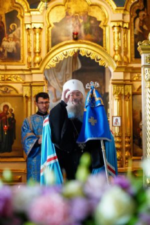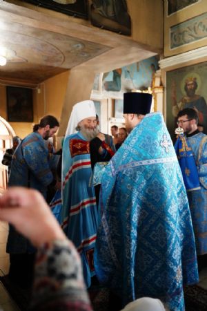 После Литургии, по традиции престольных праздников, вокруг храма прошел крестный ход со чтением Евангелия и кроплением святой водой. По возвращении в храм, верующие вознесли молитву Пресвятой Богородице, пропели Ей величание. Затем митрополит Иоанн обратился к собравшимся с проповедью.