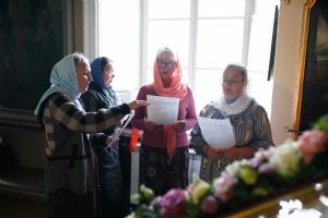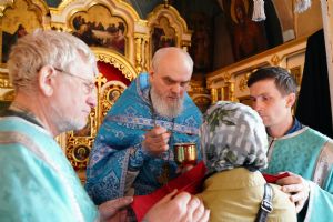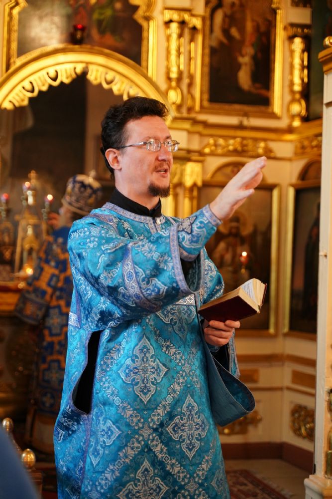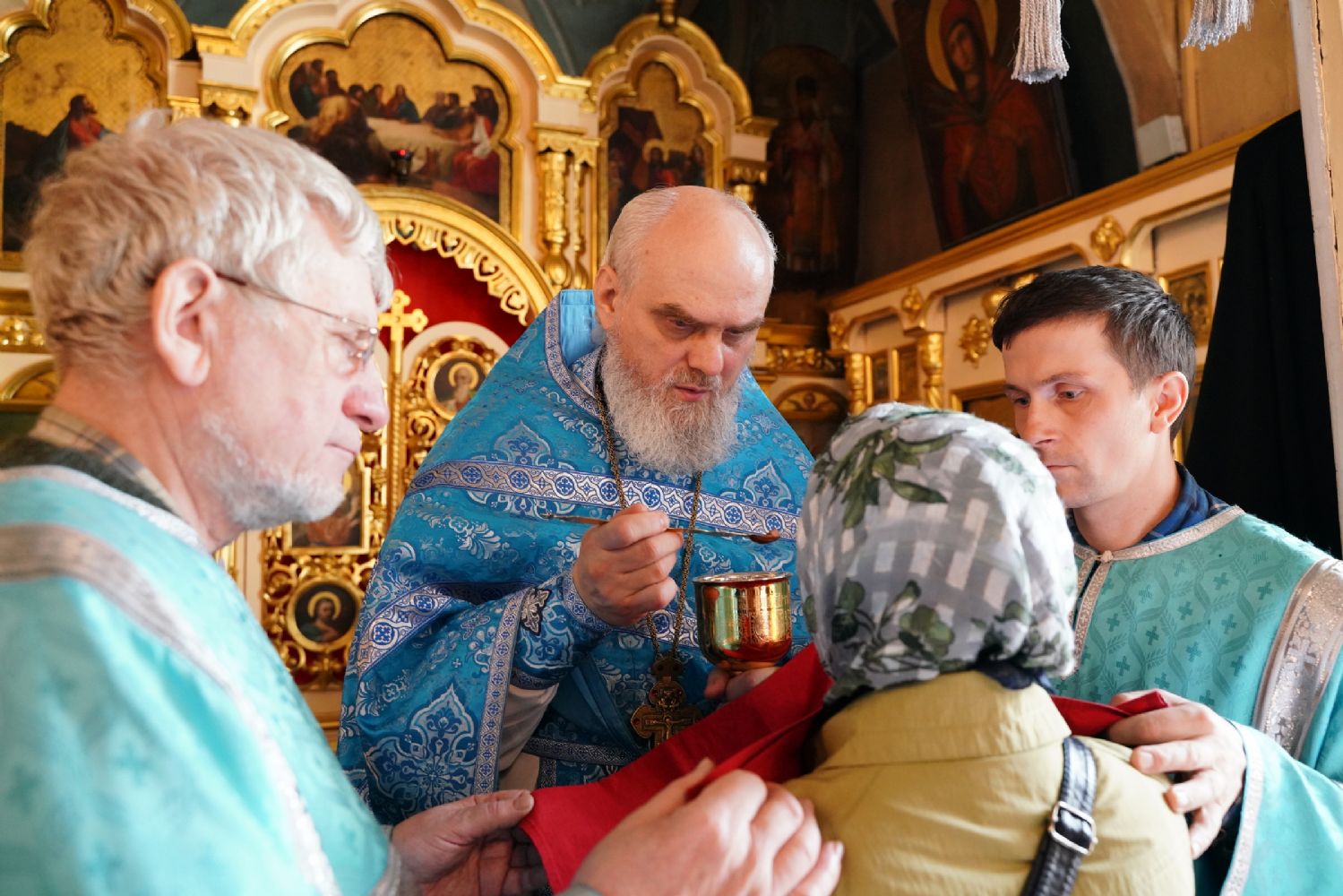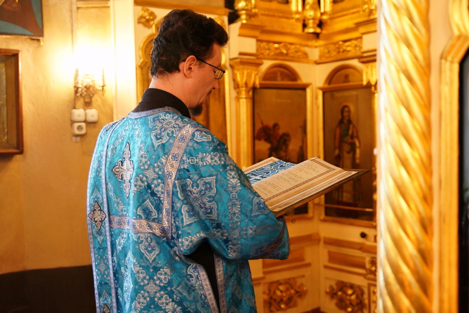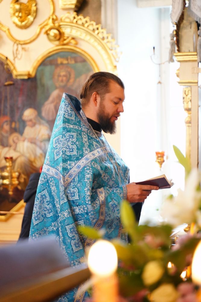 Его Высокопреосвященству сослужили ключарь храма протоиерей Михаил Ильин и клирики храма. Песнопения исполнял хор храма. За богослужением помогали Православные добровольцы и члены братства святого праведного Феодора Ушакова.