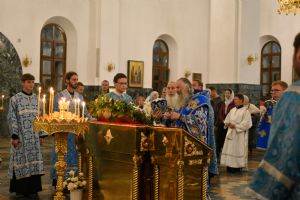 23 сентября вечером, в канун Недели 16-й по Пятидесятнице, дня памяти преподобного Силуана Афонского, митрополит Йошкар-Олинский и Марийский Иоанн возглавил всенощное бдение в Благовещенском кафедральном соборе.
