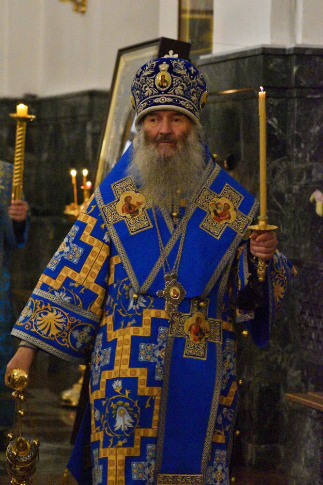 22 ноября вечером, в канун Недели 24-й по Пятидесятнице, дня памяти преподобного Матфея Яранского, митрополит Йошкар-Олинский и Марийский Иоанн возглавил всенощное бдение в Благовещенском кафедральном соборе.