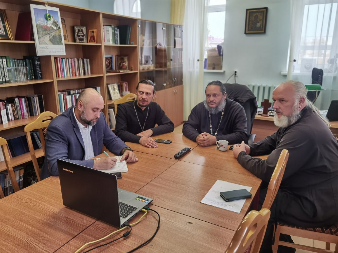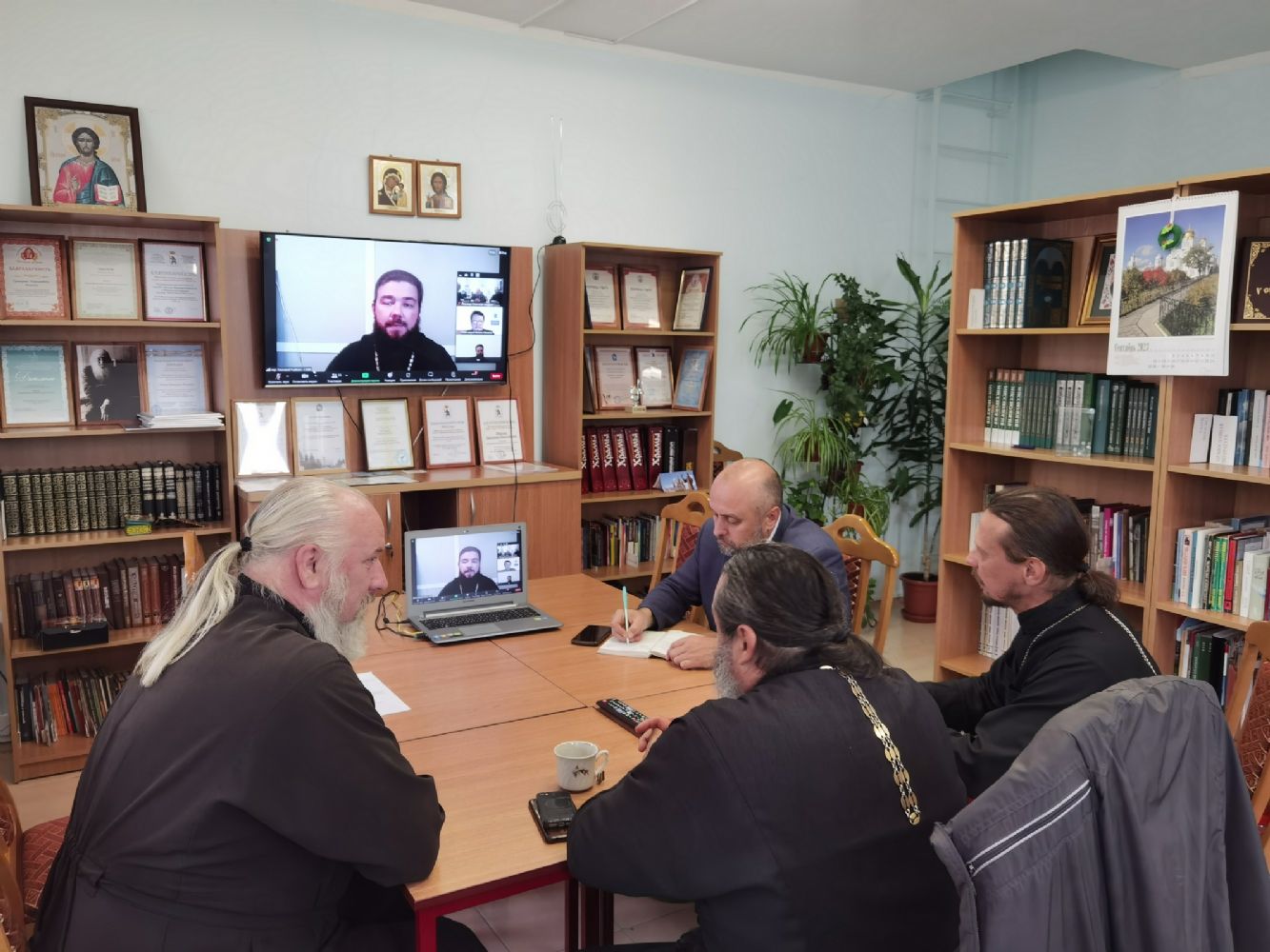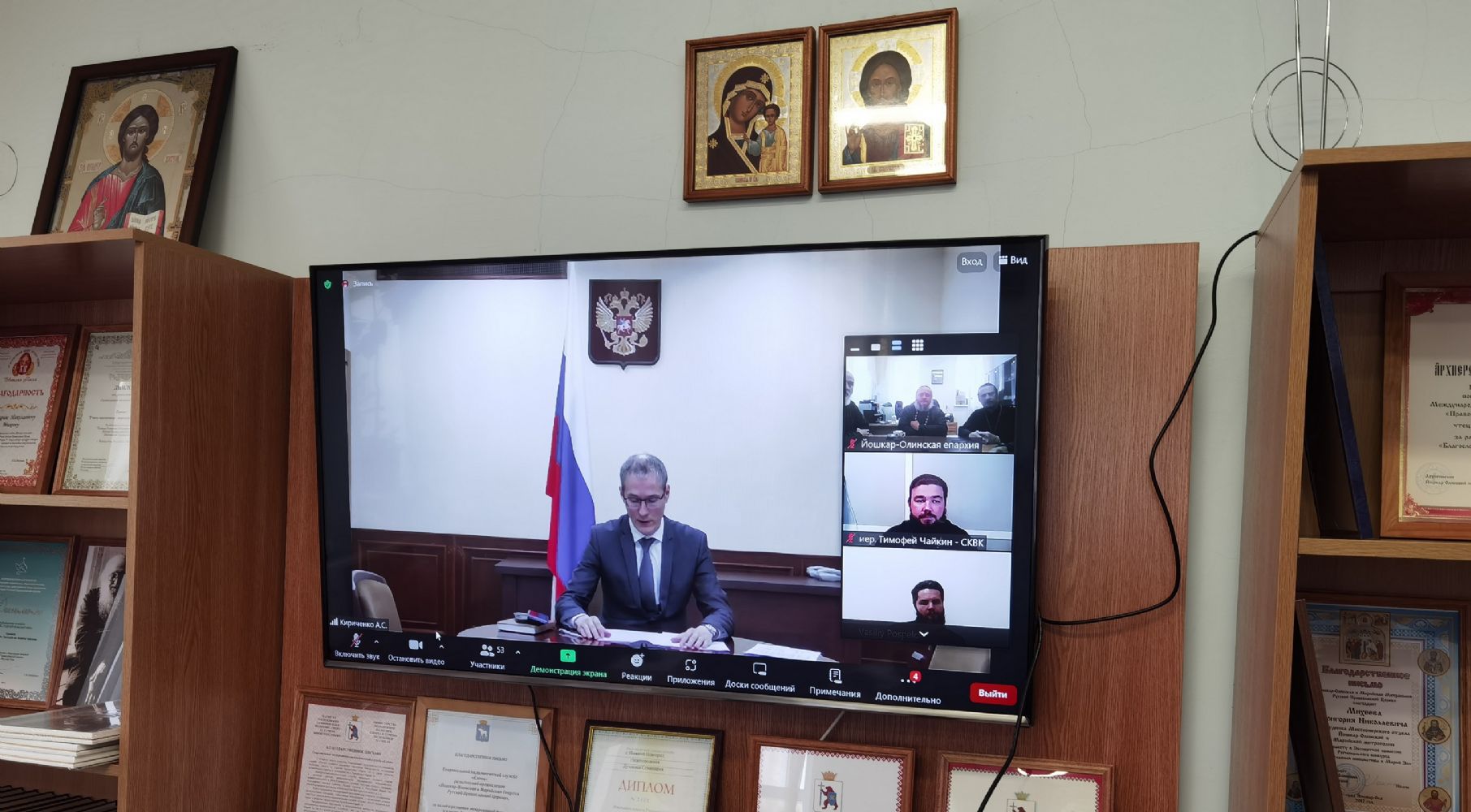 Йошкар-Олинскую епархию на вебинаре представляли руководитель епархиального отдела по взаимодействию с казачеством иерей Алексий Леонов, сотрудник отдела иерей Александр Сергунин, атаман ХКО «Хутор Царевококшайский» Евгений Пушкин и духовник хутора иерей Андрей Кочаков.