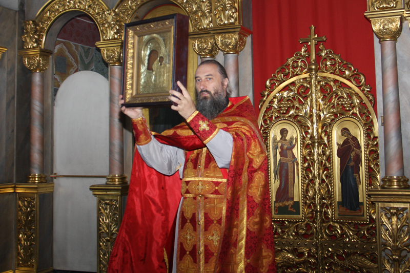 Сегодня начальник УВД по г.Йошкар-Ола полковник милиции Марат Айдаров передал настоятелю церкви Успения Пресвятой Богородицы протоиерею Сергию Филонову икону Пресвятой Богородицы «Казанская», которая была похищена из храма 6 мая.