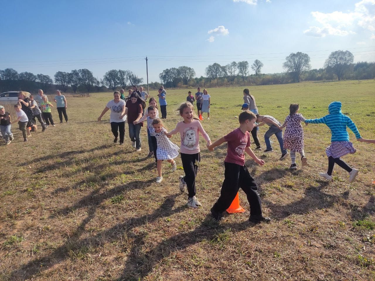 Далее на свежем воздухе были организованы спортивные игры. В веселых эстафетах участвовали и дети, и родители. А потом все вместе, большой и дружной семьей трапезничали на открытом воздухе. Хозяева угощали горячей кашей, родители привезли домашние блины и пироги. И, конечно же, традиционные арбузы!
