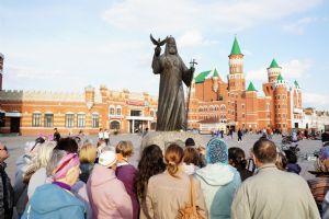 В этот же день от Благовещенского кафедрального собора вторая сборная группа отправилась по Воскресенской набережной на Патриаршую площадь. Прогулка сопровождалась рассказом профессионального экскурсовода – Михаила Дубовского, который показал основные достопримечательности центра города и поведал историю основания и развития Царевококшайска.