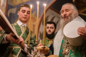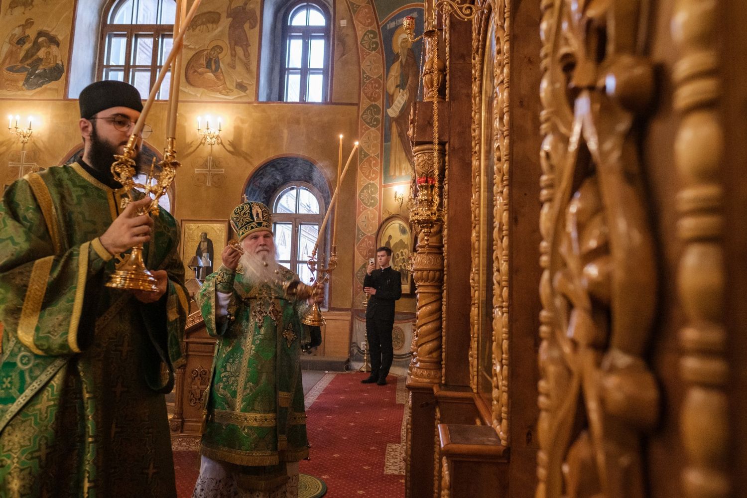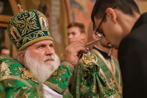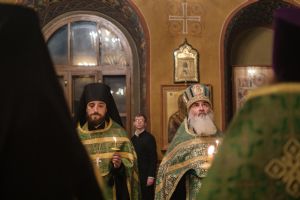 Также митрополиту Викентию сослужили епископ Бишкекский и Кыргызстанский Савватий, епископ Череповецкий и Белозерский Игнатий и академическое духовенство.