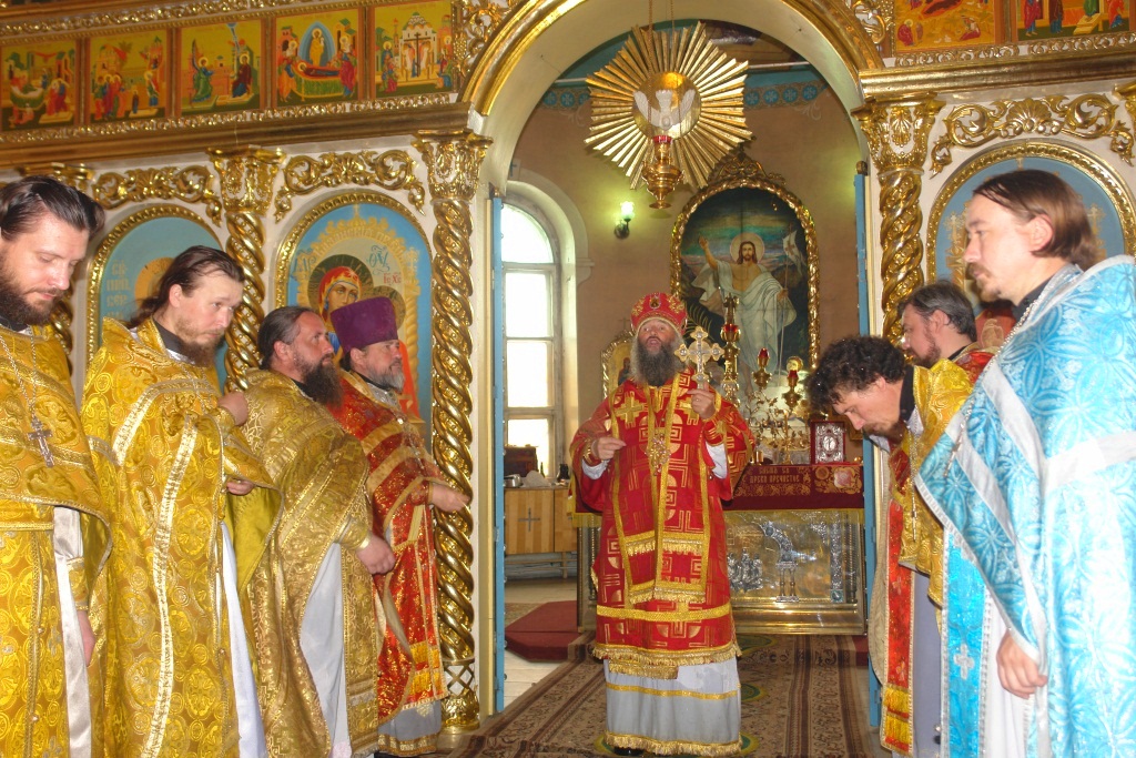 Собор с трудом вмещал всех желавших помолиться за архиерейским богослужением. В честь престольного праздника вокруг храма был совершен крестный ход. После службы Владыку поздравляли с прошедшим днем тезоименитства.