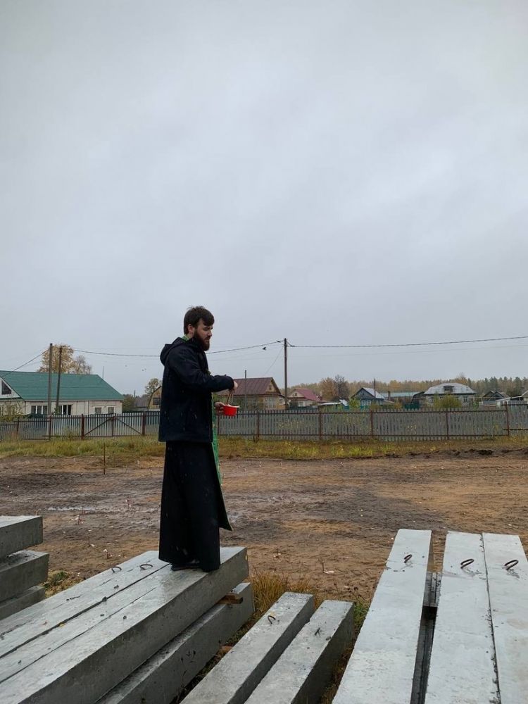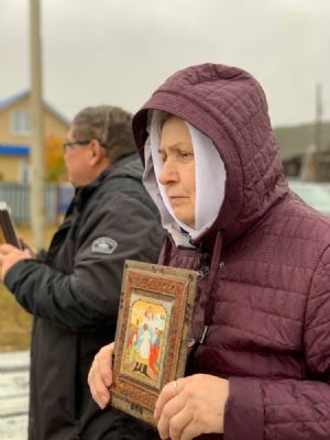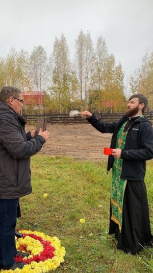 После Литургии верующие крестным ходом прошли на строительную площадку, где начинаются работы по возведению нового храмового здания. Пока богослужения совершаются в небольшом молельном доме, который не может вместить всех приходящих на службы, поэтому храм в Пембе очень нужен. Разработан архитектурный проект нарядного кирпичного храма, буквально на днях – 30 сентября было получено разрешение на строительные работы. Уже разровняли площадку, завезли сваи для фундамента. Отец Андрей окропил стройку и всех молящихся святой водой.