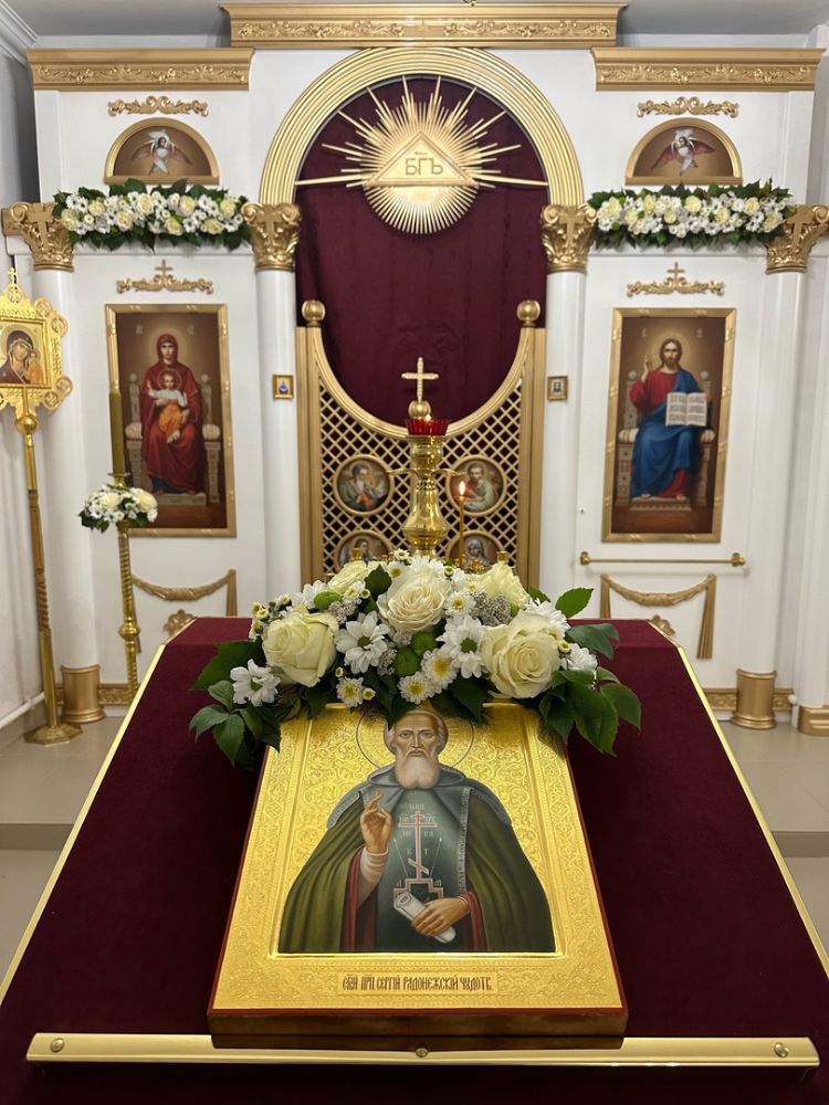 С радостью прихожане готовились к празднику, украсив храм и иконы преподобного Сергия цветами. Божественную Литургию в этот день совершил настоятель храма иерей Артемий Промович. Почтить память преподобного собрались верующие не только из Азаново, но и из других селений и г. Йошкар-Олы. Многие причастились Святых Христовых Таин.