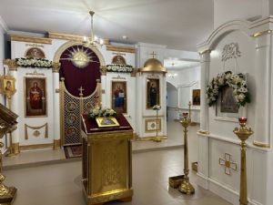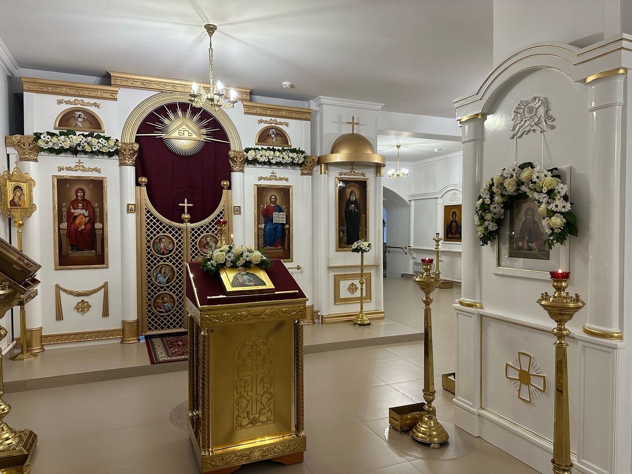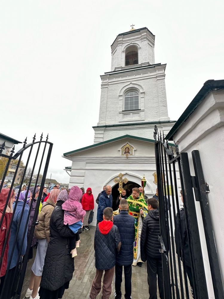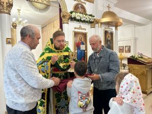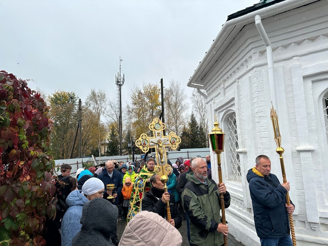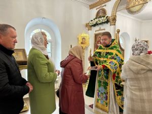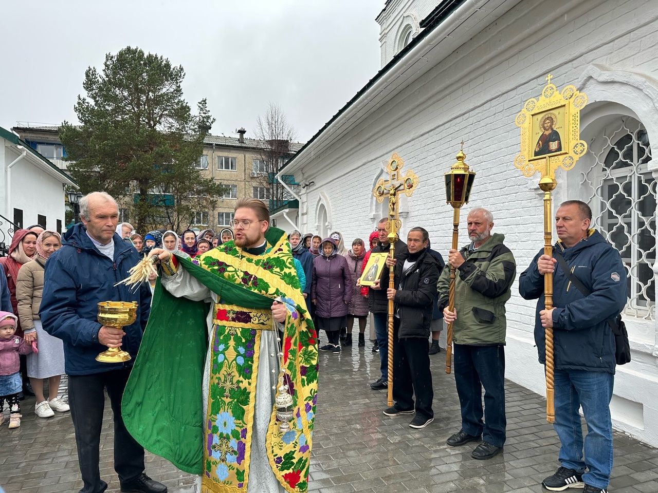 После Литургии вокруг храма прошел праздничный крестный ход со чтением Евангелия и кроплением святой водой. Всем присутствующим были вручены небольшие памятные подарки.