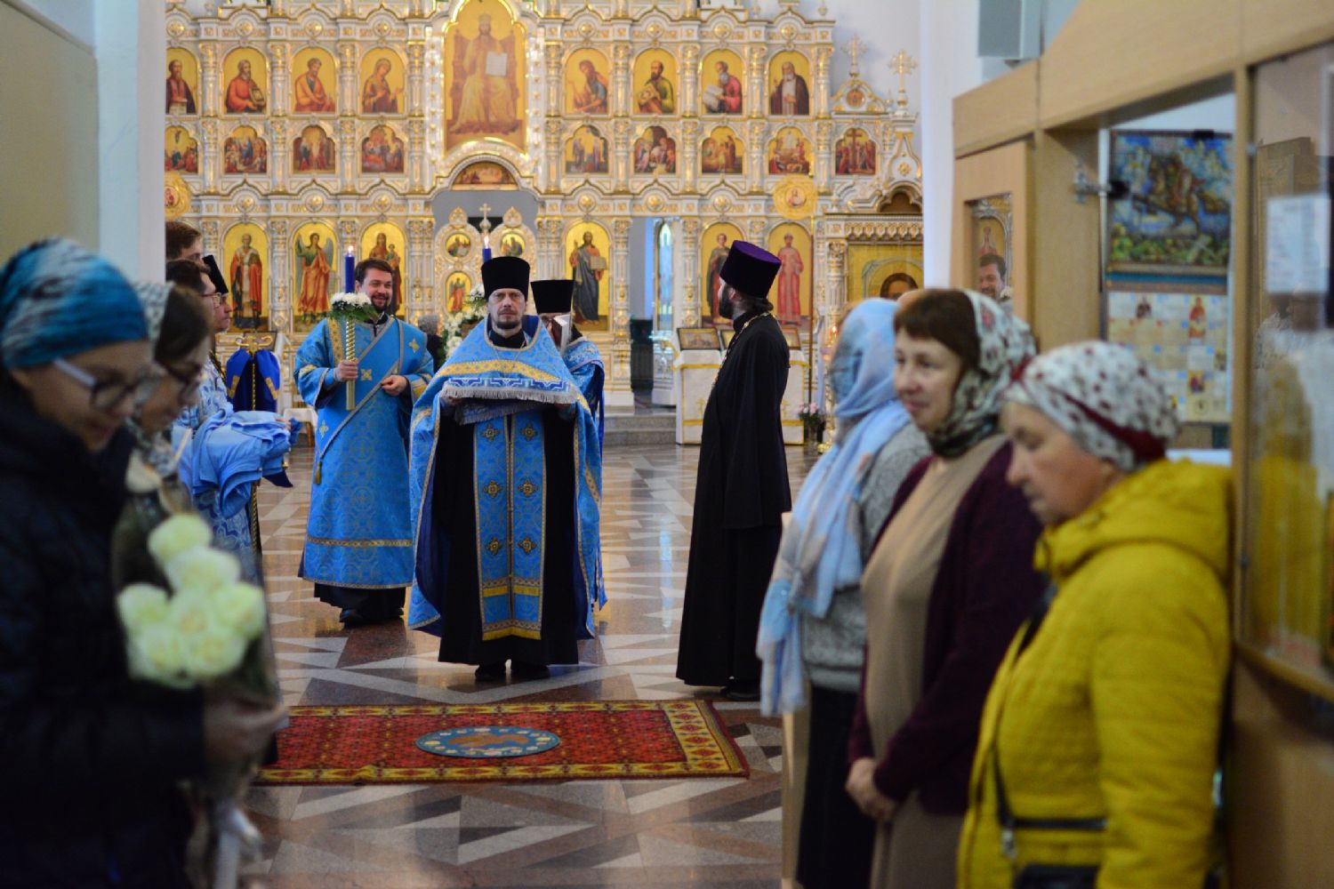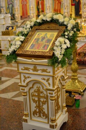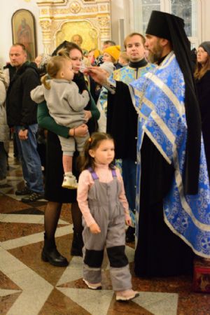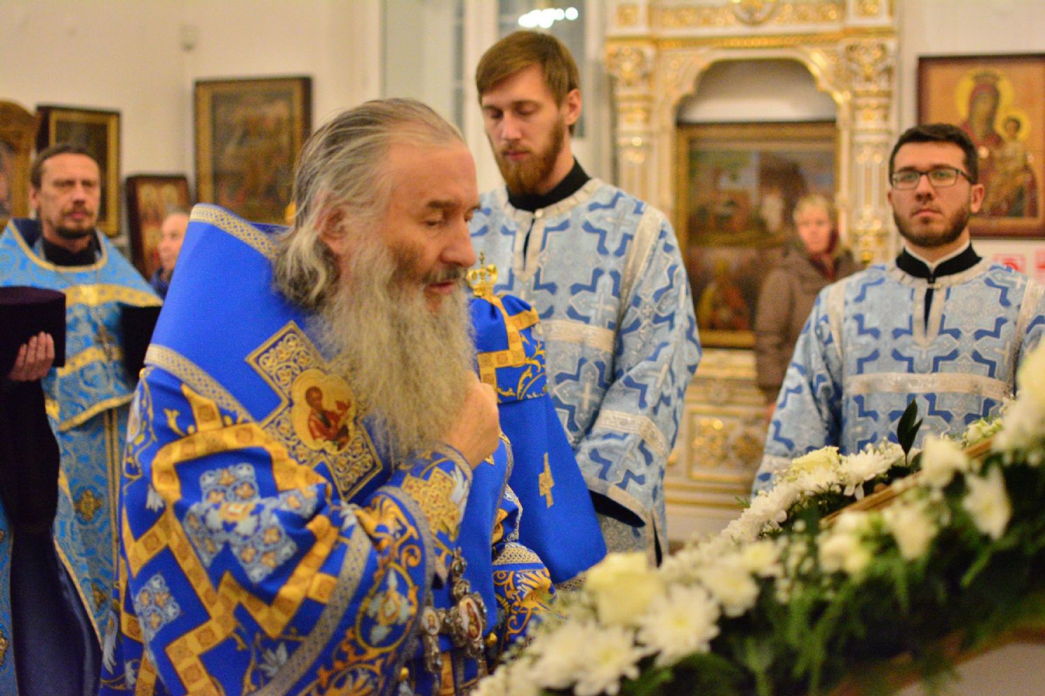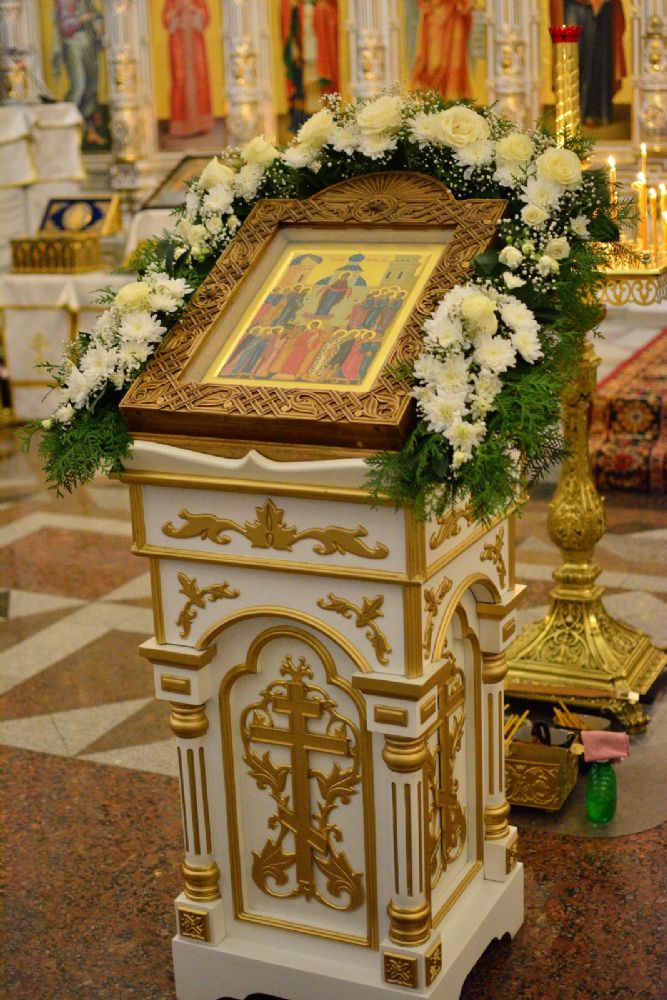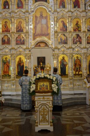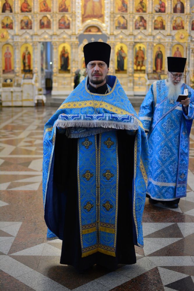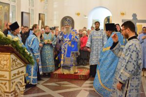Владыке сослужили секретарь Йошкар-Олинского епархиального управления иеромонах Серафим (Пасанаев), настоятель собора иерей Алексий Кирюшкин, клирики собора иерей Леонид Вылекжанин, иерей Андрей Кочаков, диакон Алексий Кузнецов и протодиакон Михаил Козловский. Песнопения исполнял хор собора под руководством регента Елены Поглазовой.