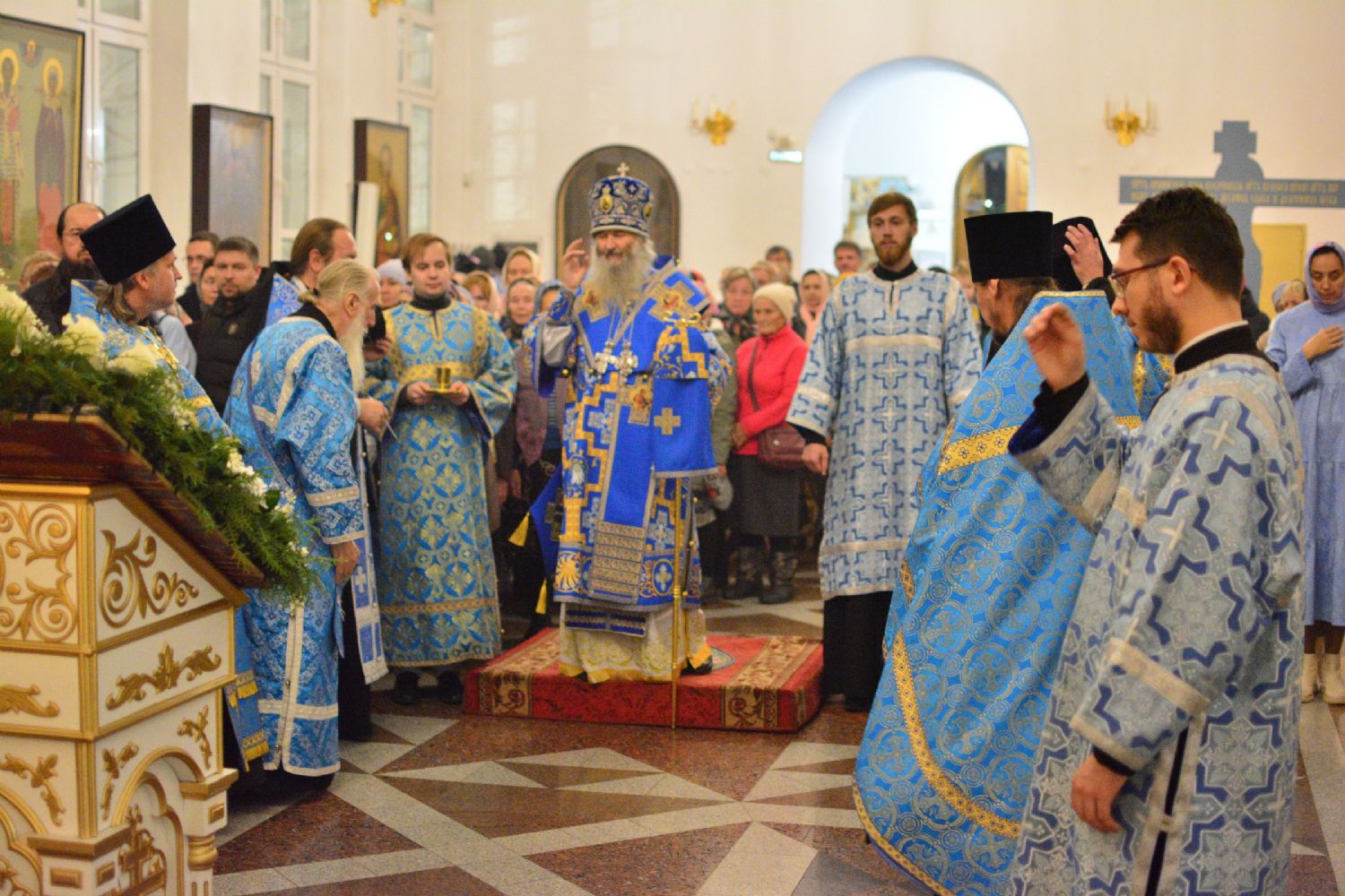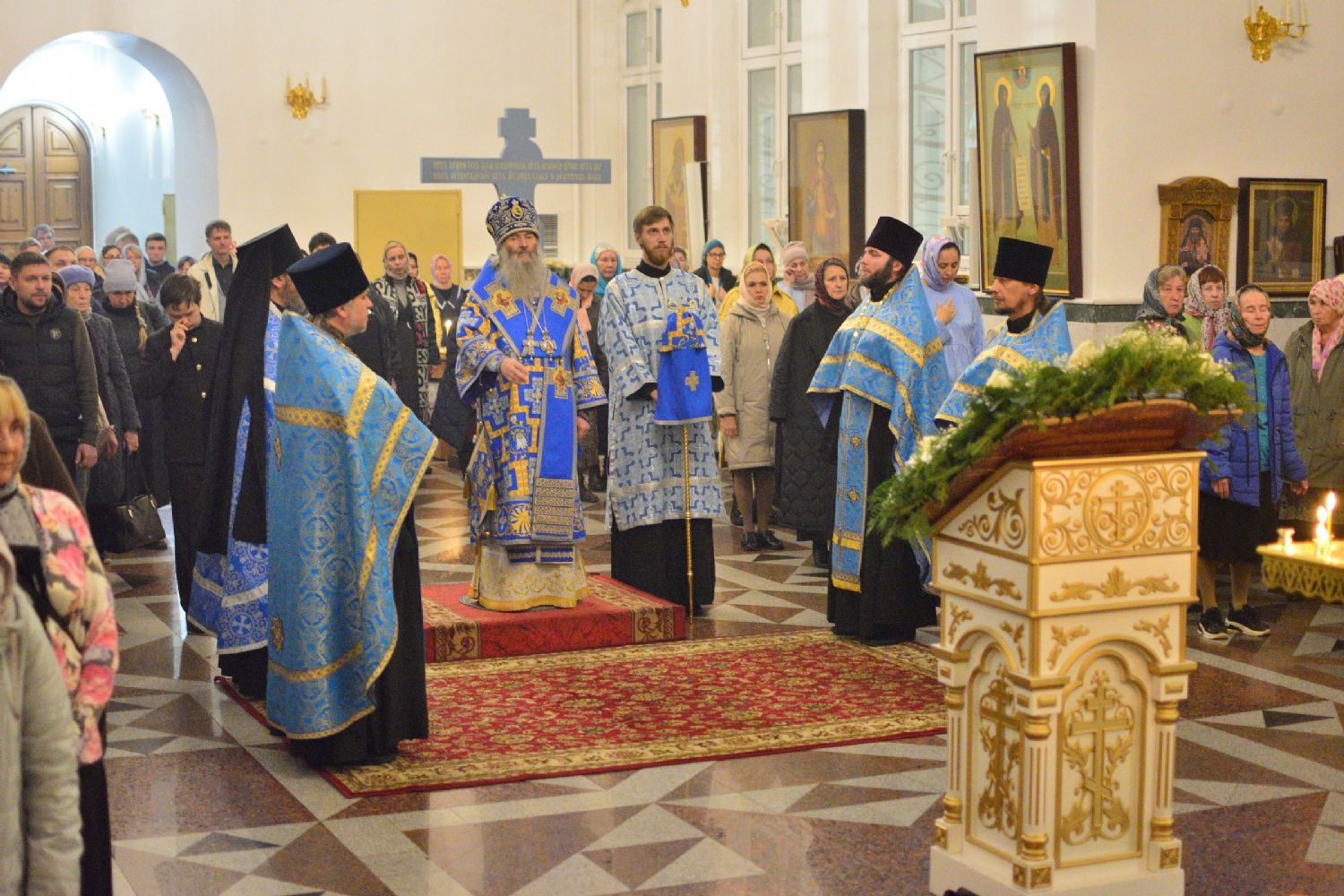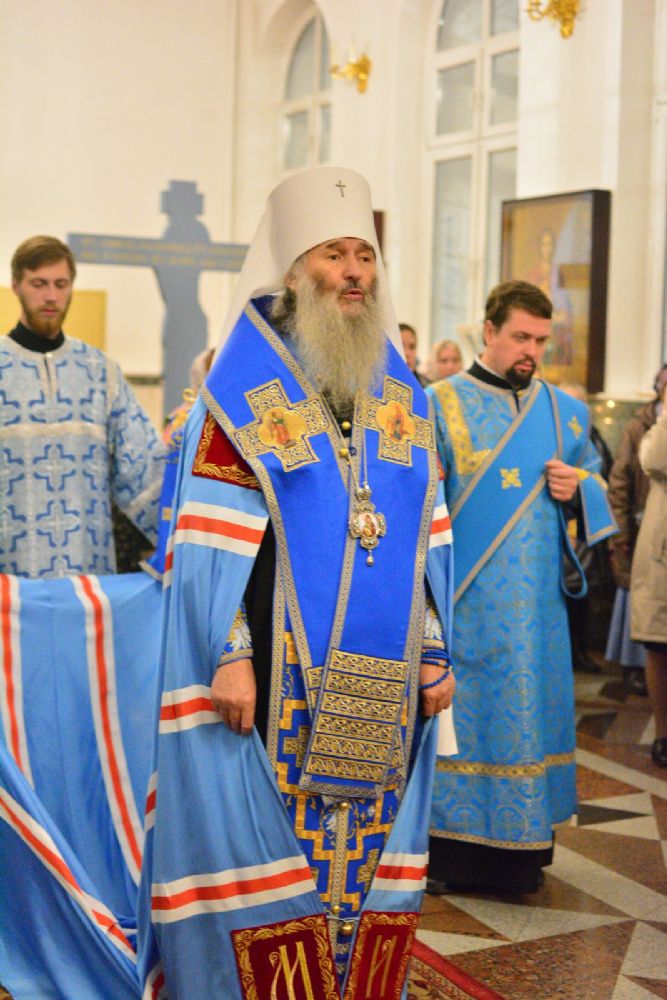13 октября вечером, накануне праздника Покрова Пресвятой Богородицы, митрополит Йошкар-Олинский и Марийский Иоанн возглавил всенощное бдение в Воскресенском соборе г. Йошкар-Олы.