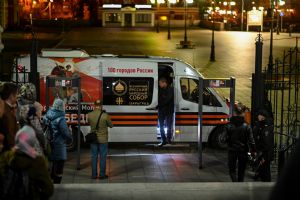 Напомним, ковчег с частицей мощей святого великомученика Георгия Победоносца из Свято-Троицкой Сергиевой лавры по благословению Святейшего Патриарха Московского и всея Руси Кирилла приносится в 100 городов Российской Федерации в рамках Всероссийского молебна о Победе.