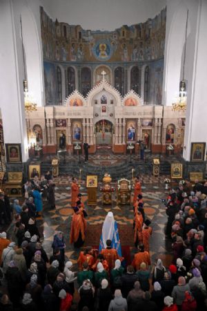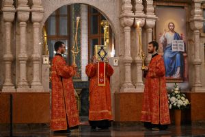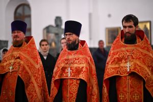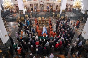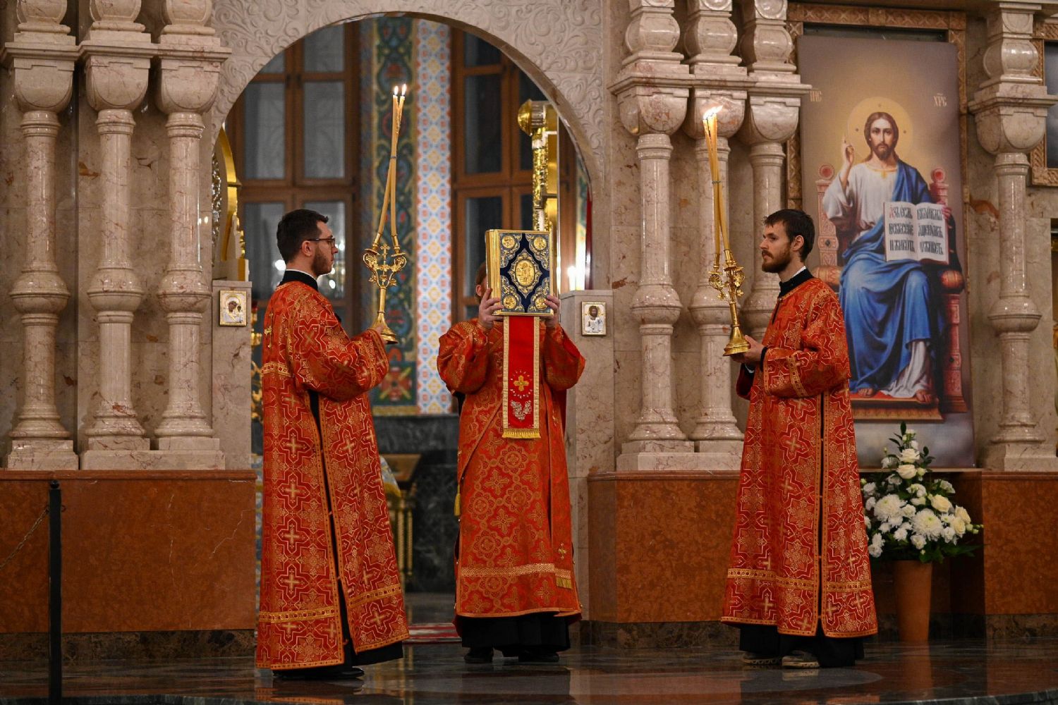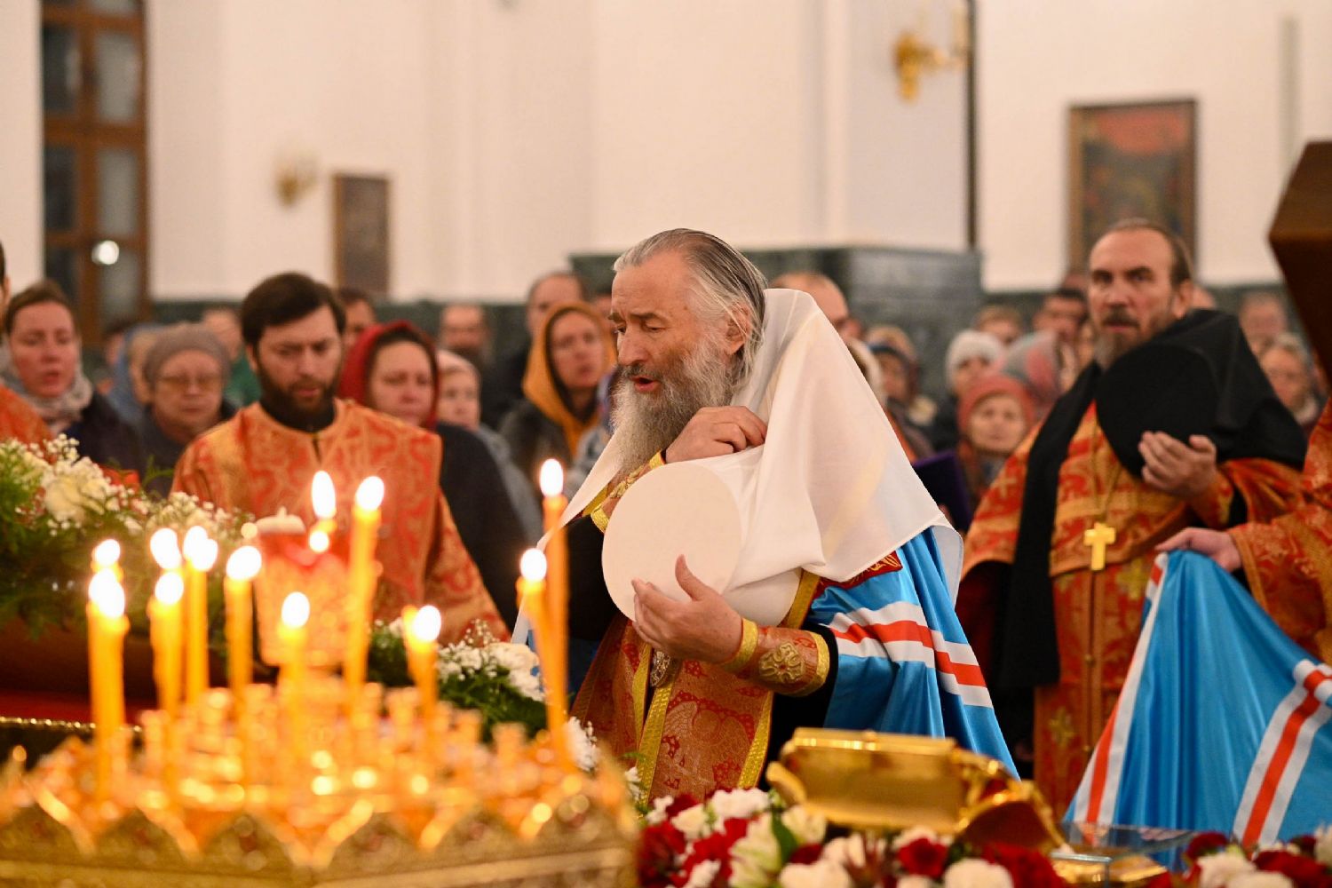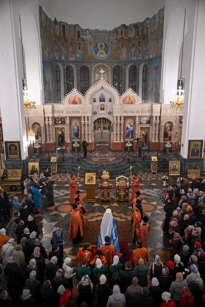 Ковчег с мощами и икона Георгия Победоносца были поставлены в центре кафедрального собора. Митрополит Иоанн возглавил молебен святому великомученику и победоносцу Георгию.