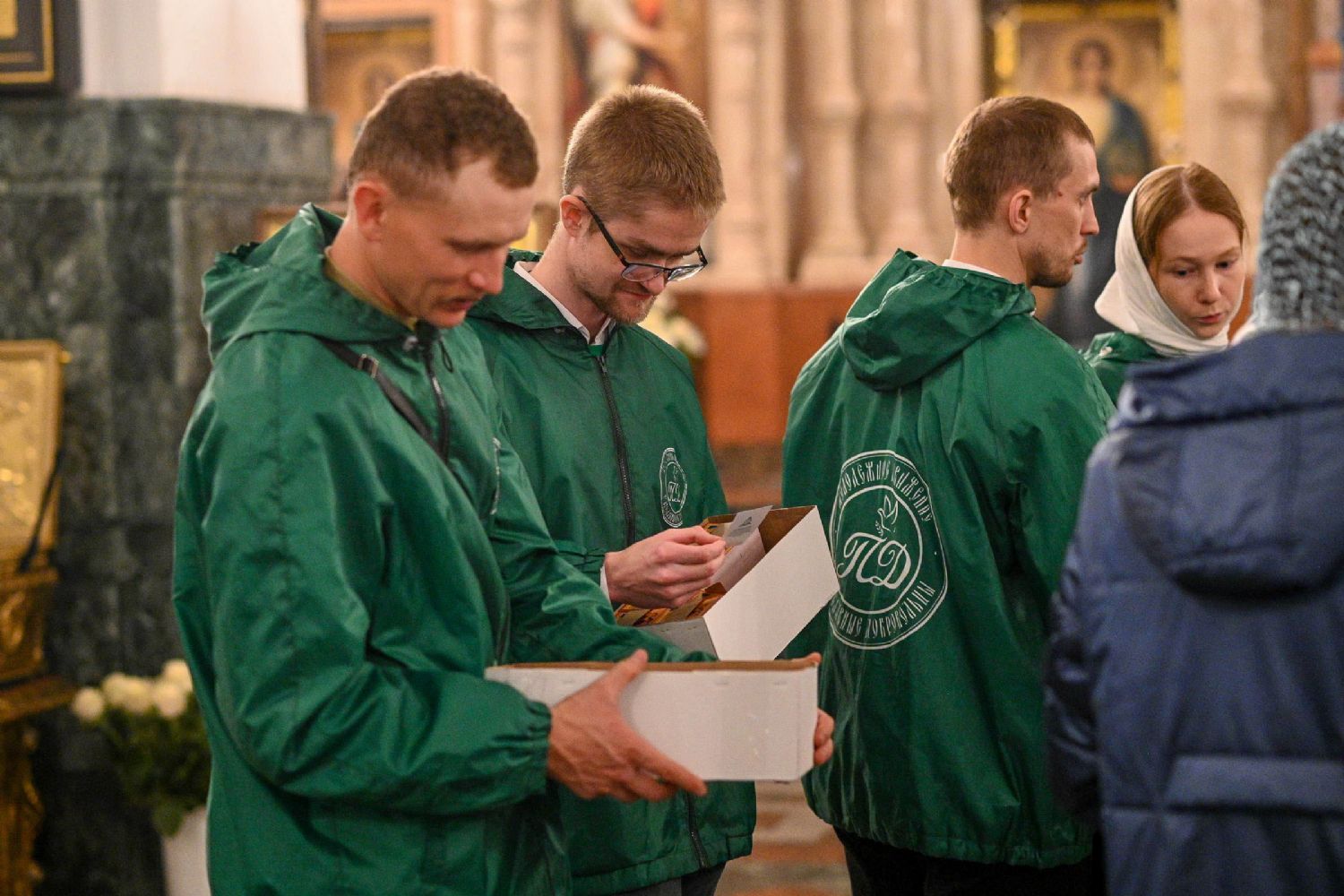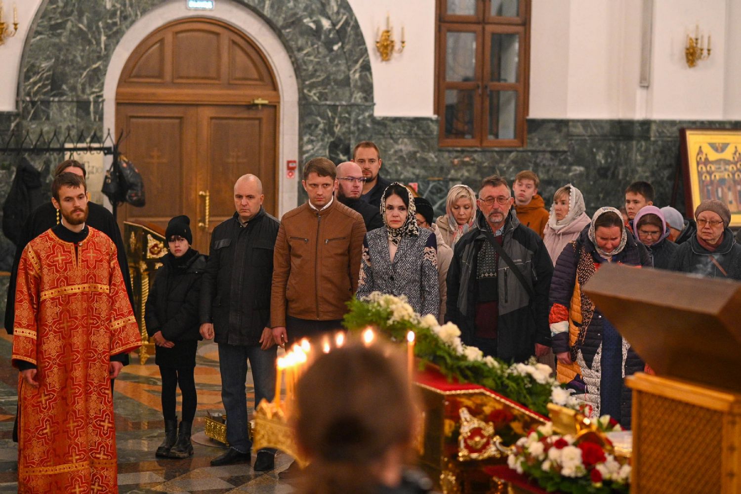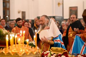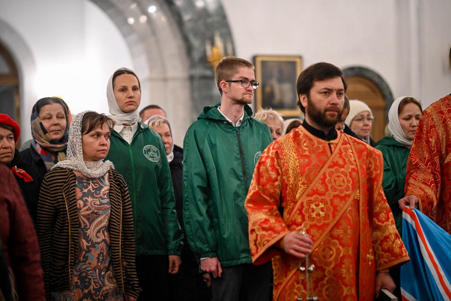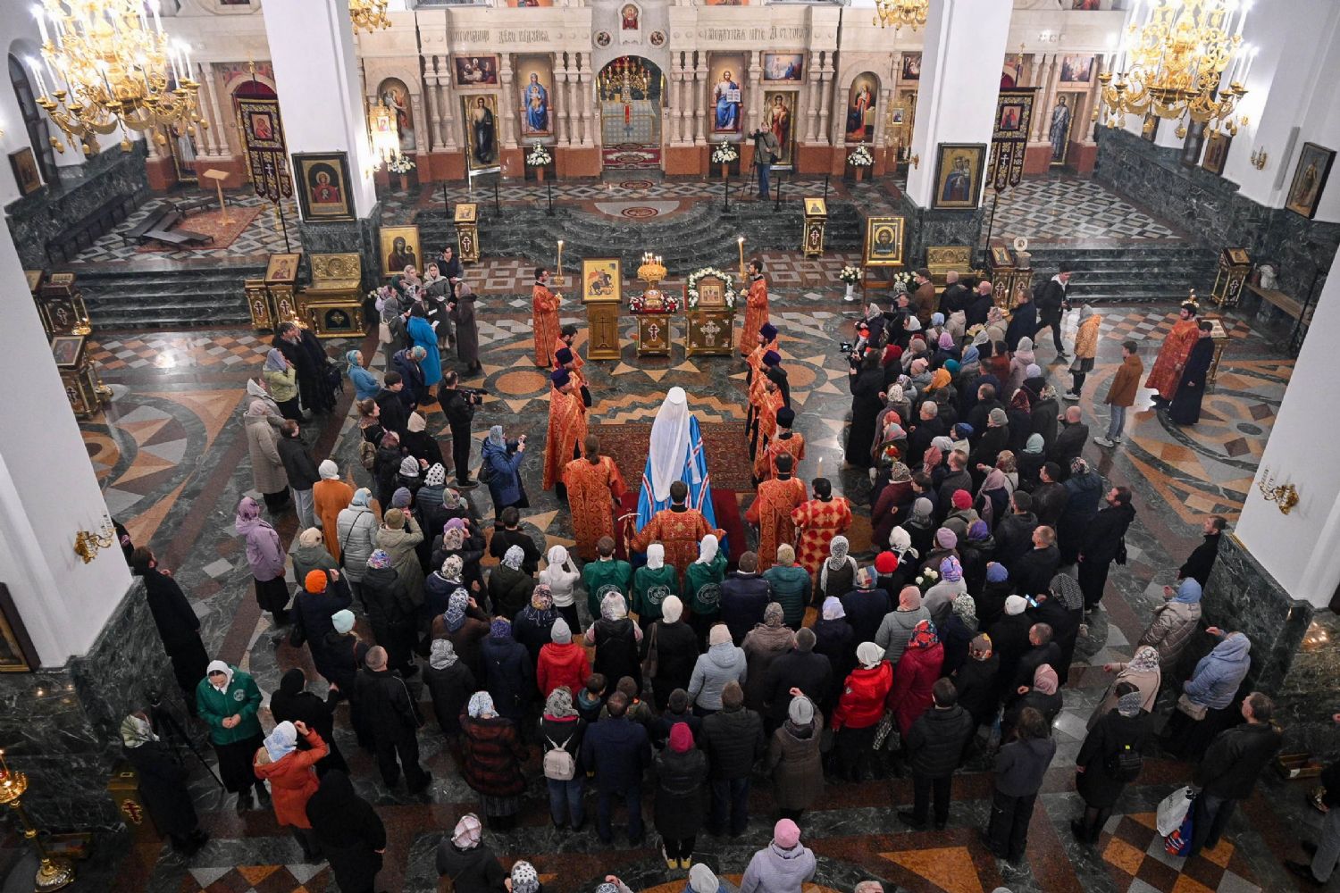 Ковчег с мощами и икона Георгия Победоносца были поставлены в центре кафедрального собора. Митрополит Иоанн возглавил молебен святому великомученику и победоносцу Георгию.