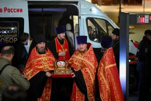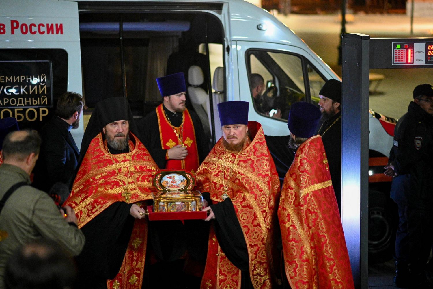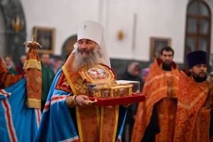 Святыню встретил митрополит Йошкар-Олинский и Марийский Иоанн с духовенством и верующими.