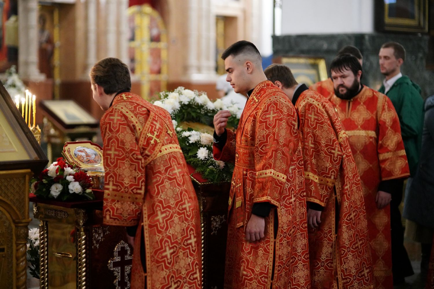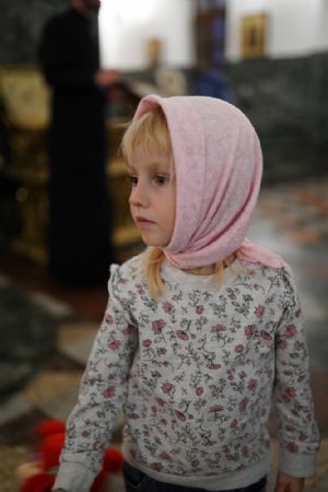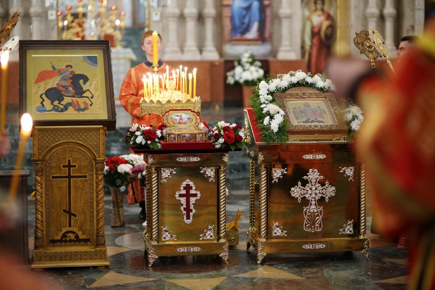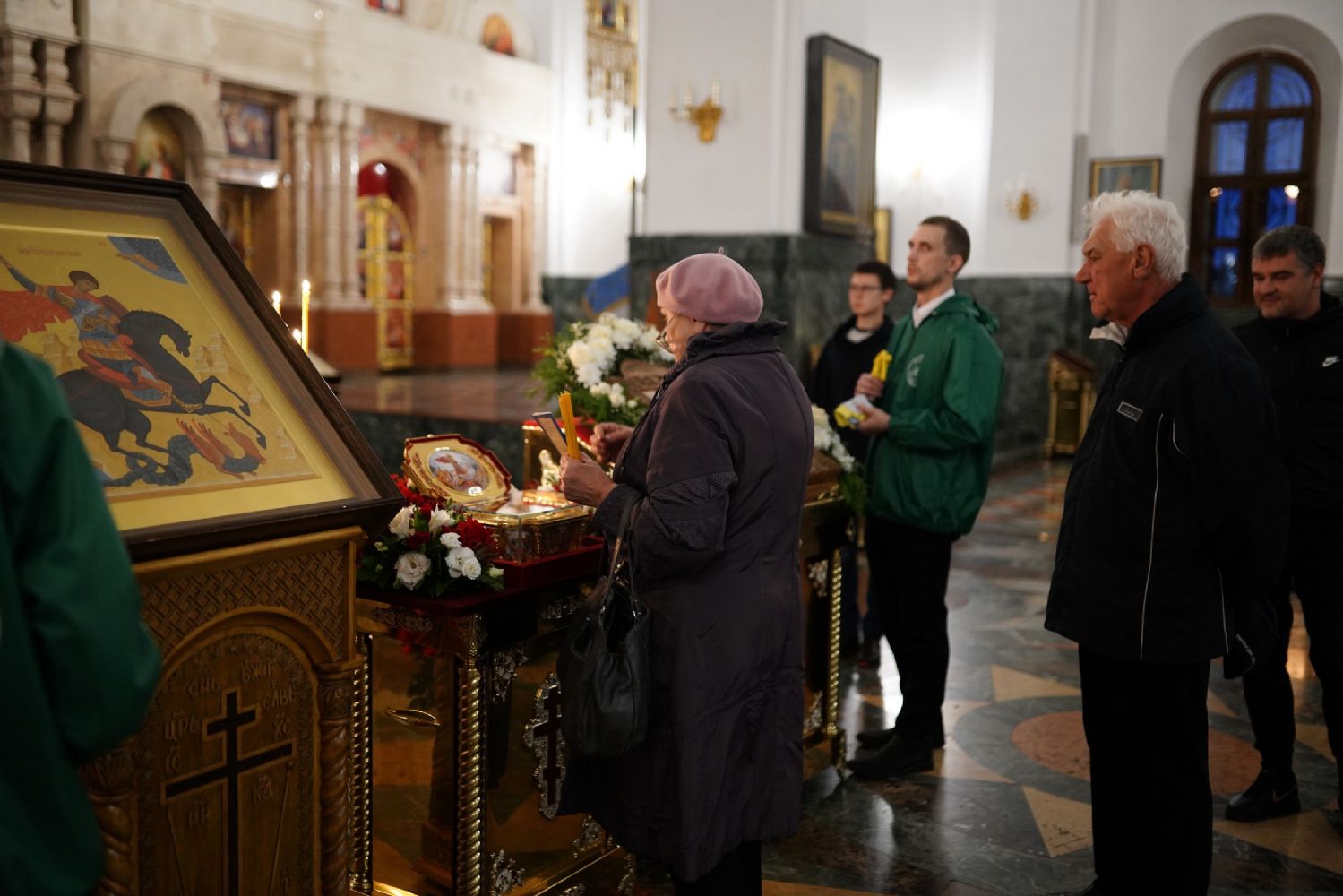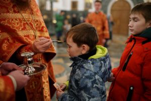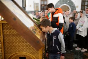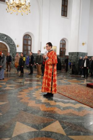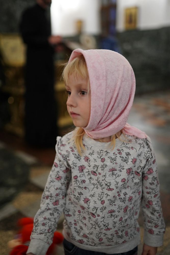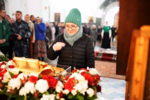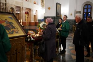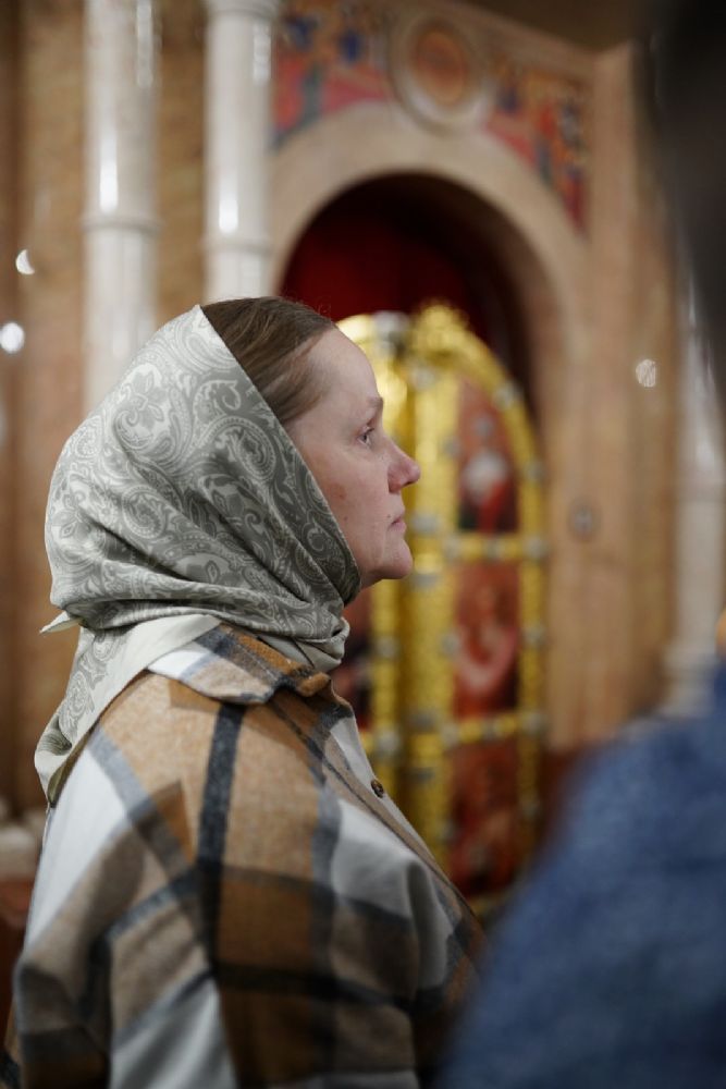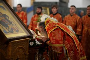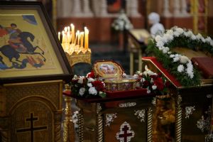 В Благовещенском соборе во время богослужения пребывал ковчег с мощами святого великомученика Георгия Победоносца, принесенный в Йошкар-Олу в рамках Всероссийского молебена о Победе. Поклониться небесному покровителю русского воинства, попросить его заступничества за нашу страну, за ребят, выполняющих воинский долг, собралось множество верующих. На утрене после чтения Евангелия священники помазали всех освященным елеем.