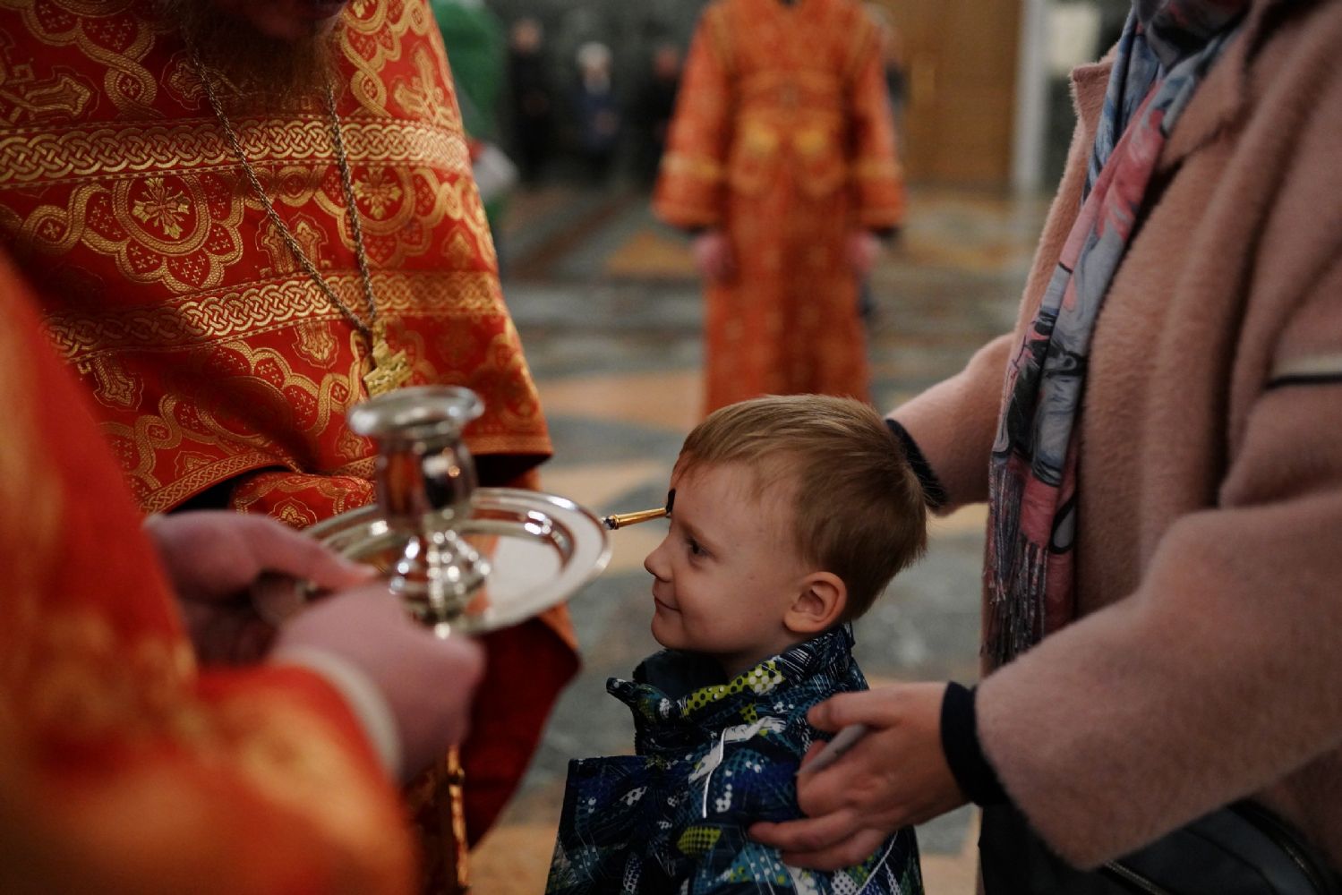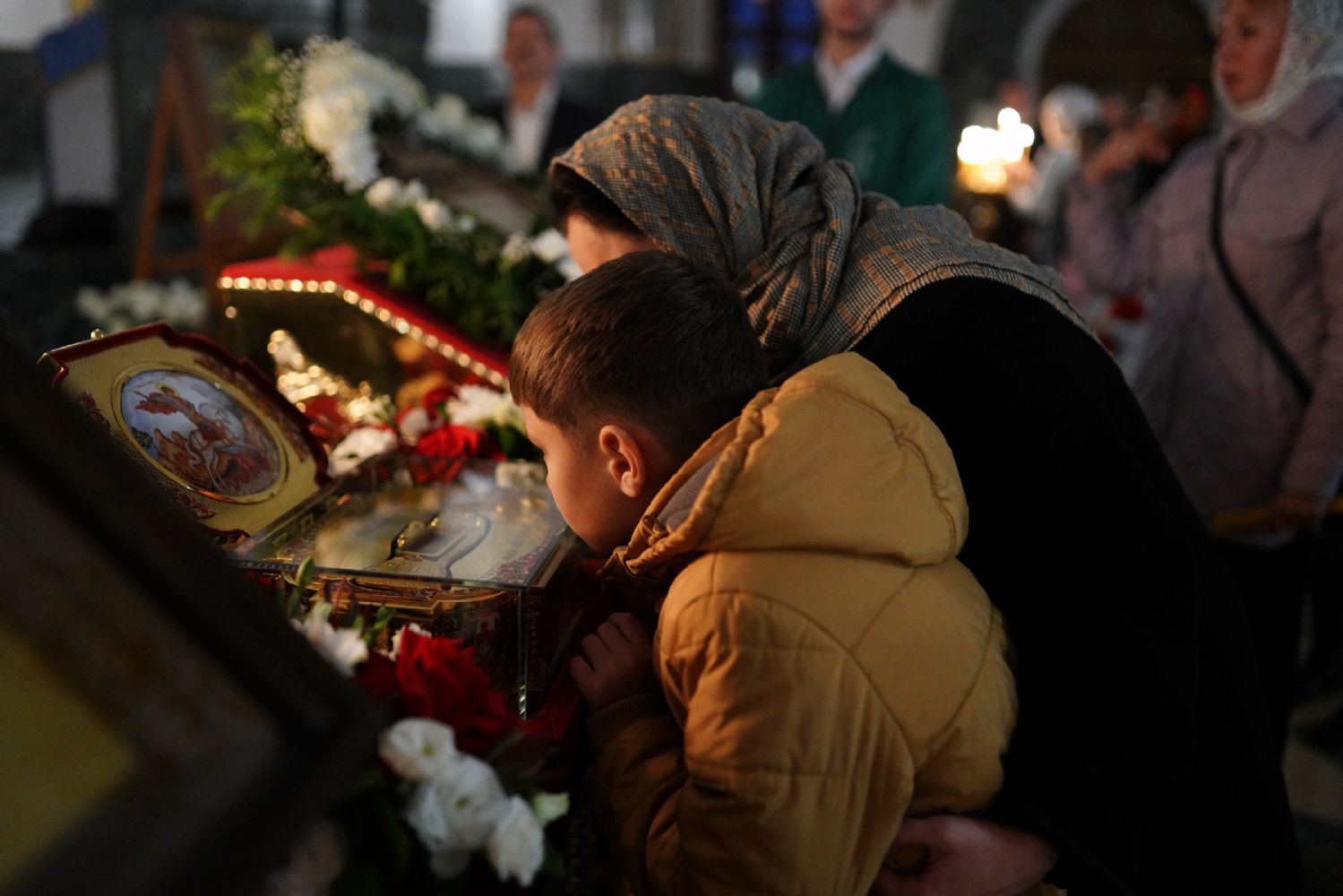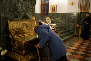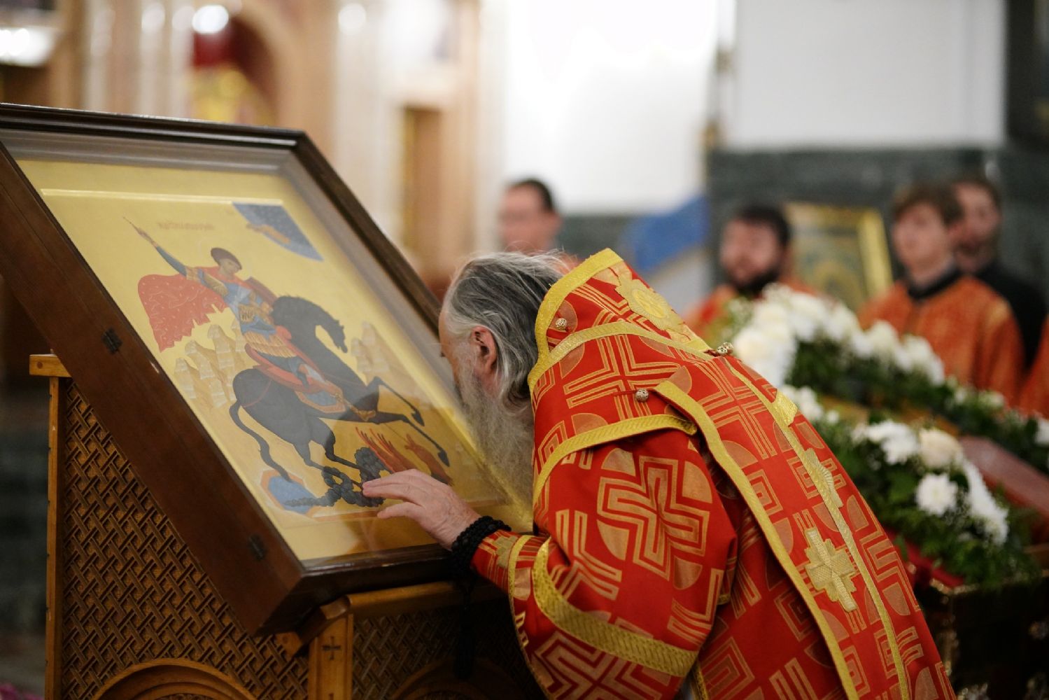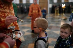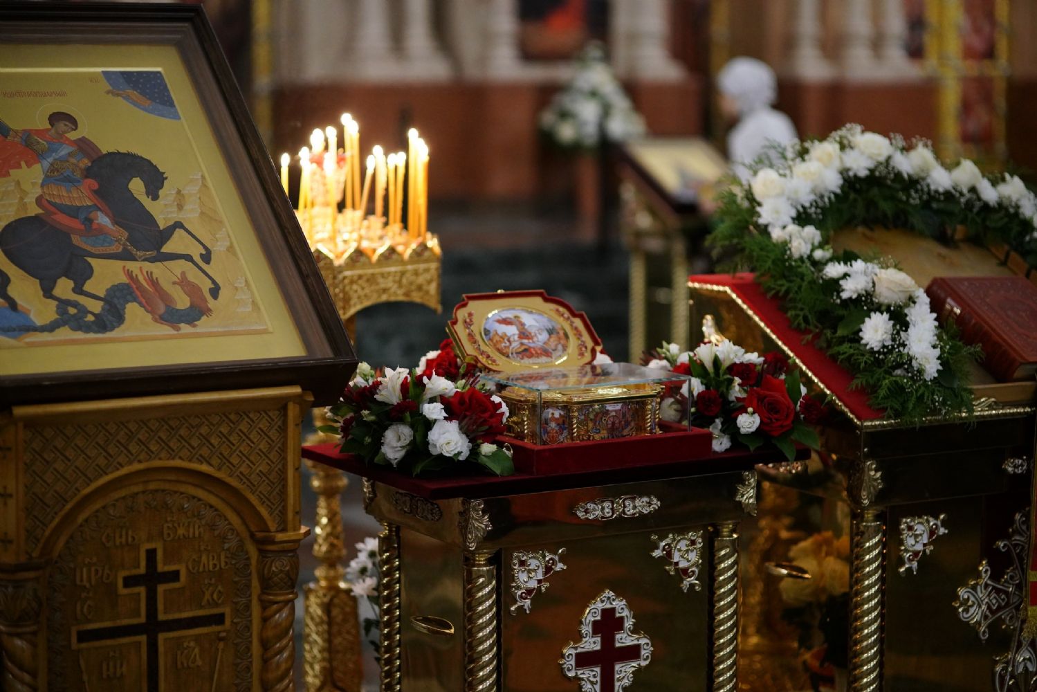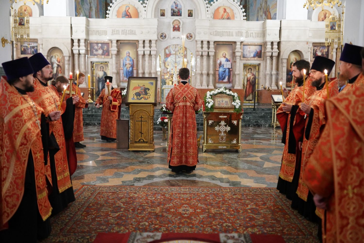 В Благовещенском соборе во время богослужения пребывал ковчег с мощами святого великомученика Георгия Победоносца, принесенный в Йошкар-Олу в рамках Всероссийского молебена о Победе. Поклониться небесному покровителю русского воинства, попросить его заступничества за нашу страну, за ребят, выполняющих воинский долг, собралось множество верующих. На утрене после чтения Евангелия священники помазали всех освященным елеем.