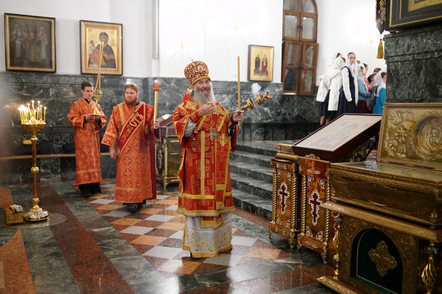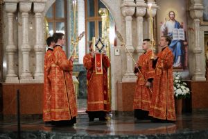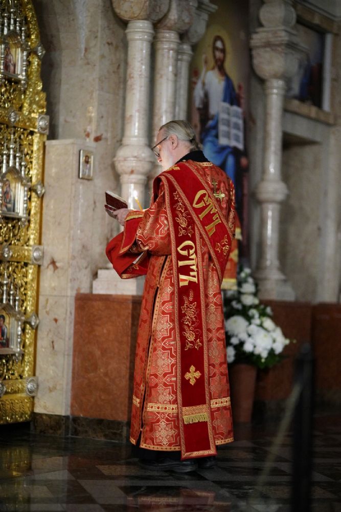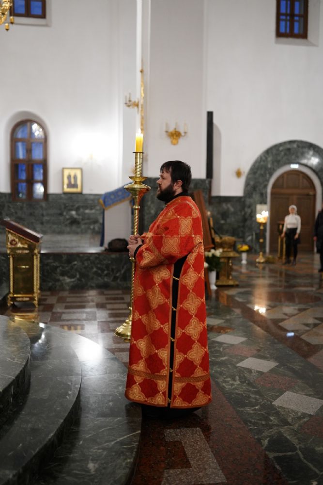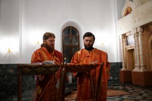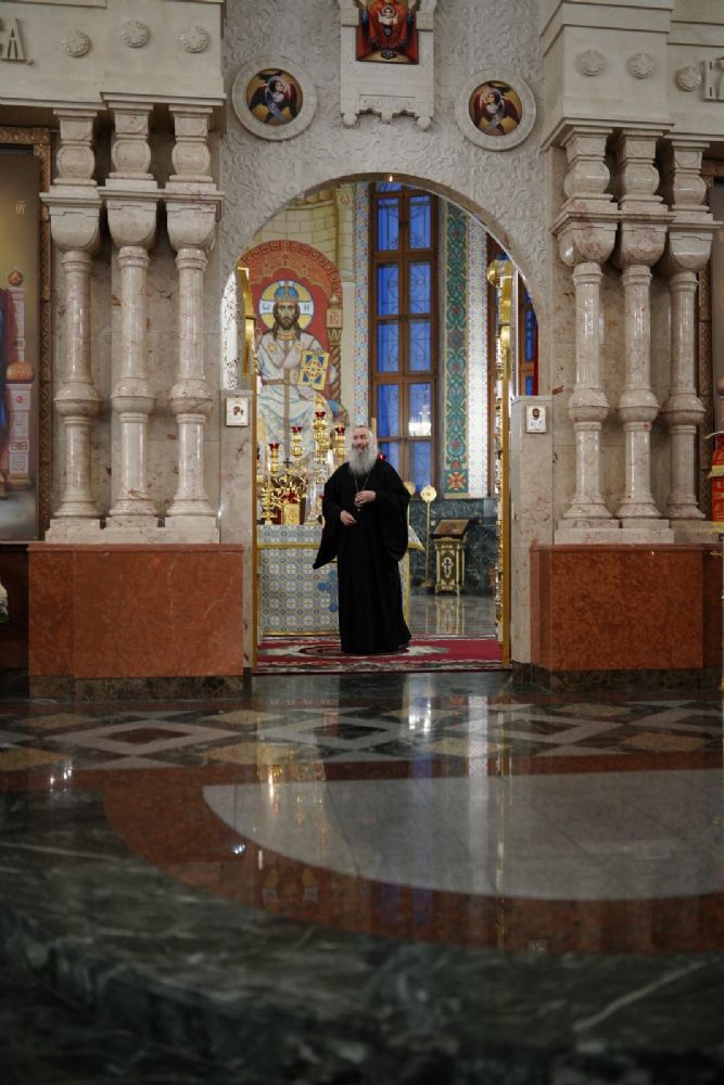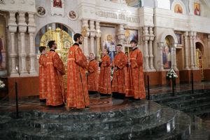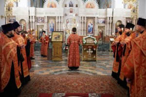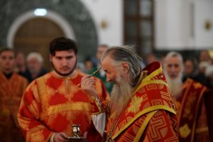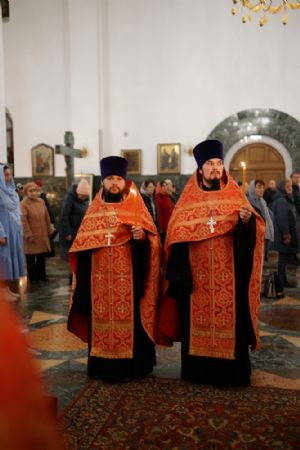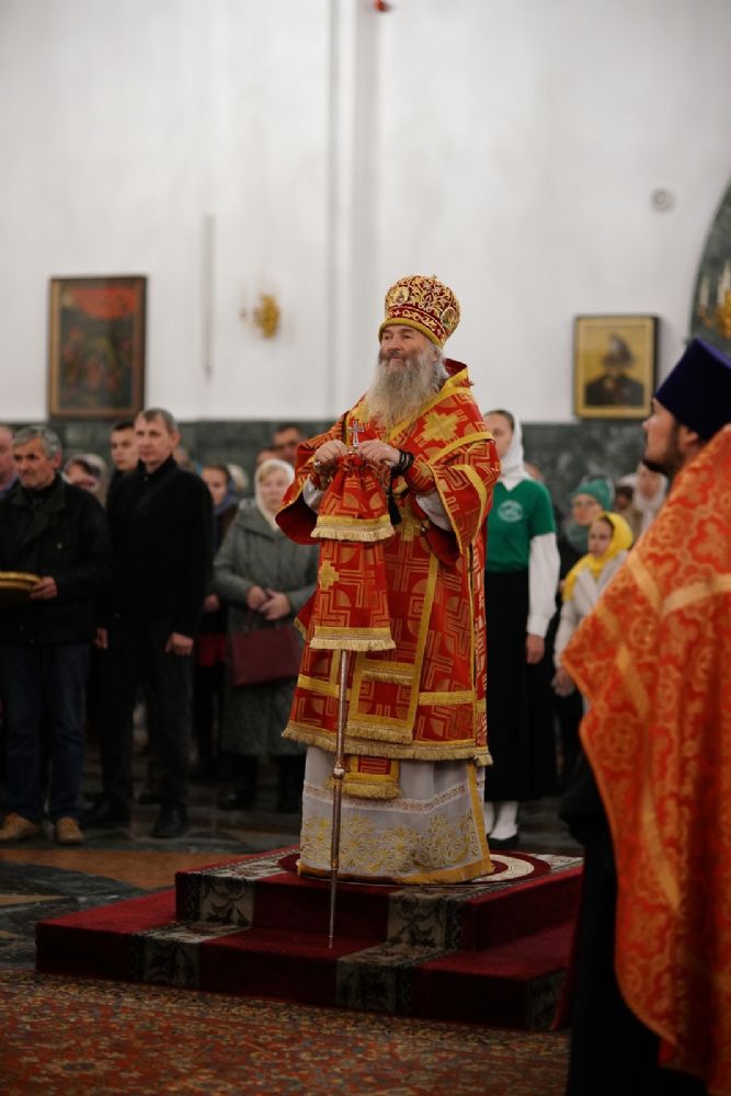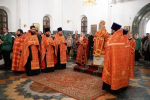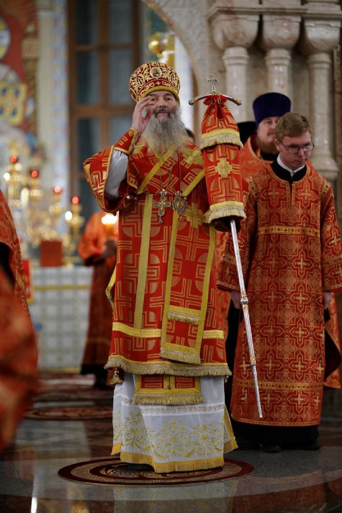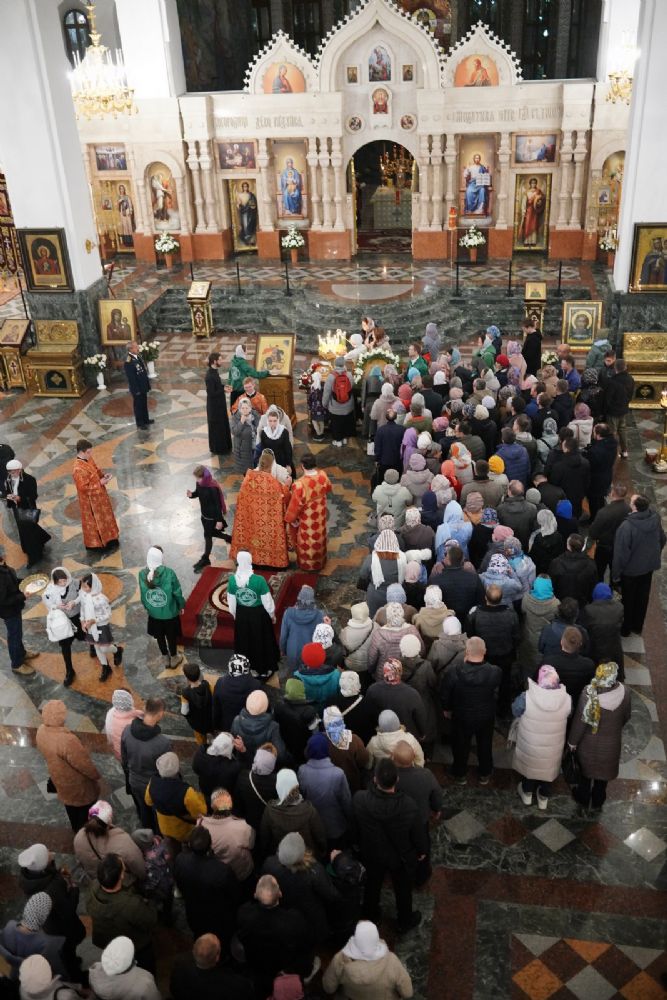 Его Высокопреосвященству сослужили ключарь кафедрального собора протоиерей Сергий Поглазов, клирики собора иереи Никифор Захаров, Евгений Самойлов, Александр Староверов и Иоанн Милютин, диаконы Андрей Дружинин и Артемий Бобоч, а также протодиакон Михаил Козловский. Песнопения антифонно исполняли старший и младший составы детско-юношеского хора «Благовест» под управлением регентов Татьяны Черновой и Софии Андреевой.
