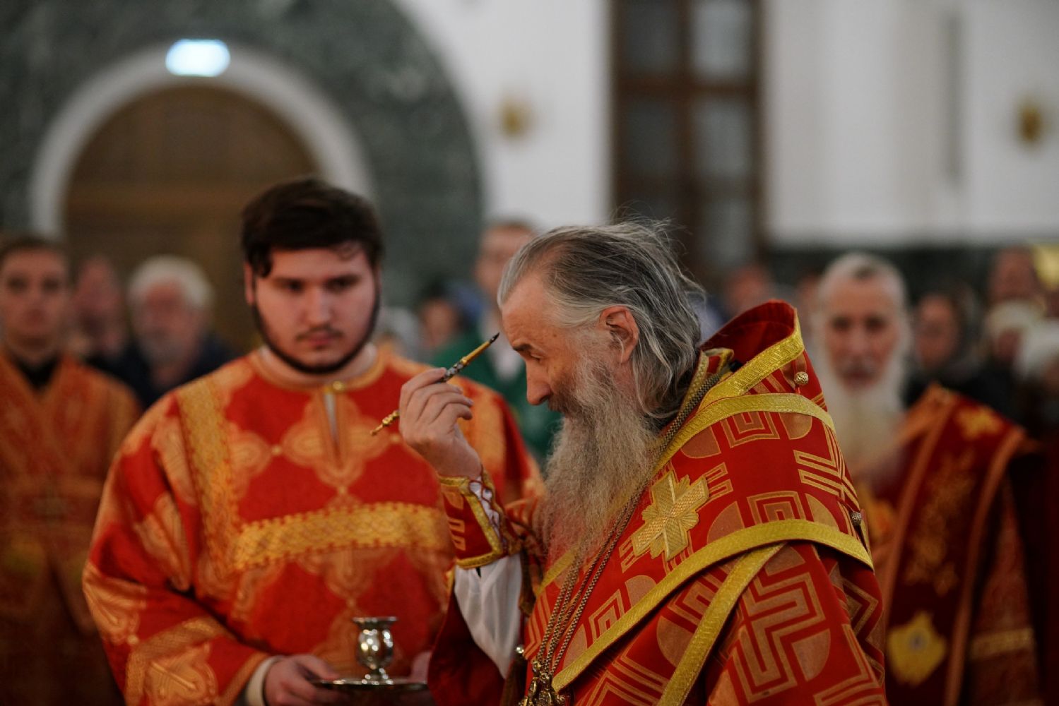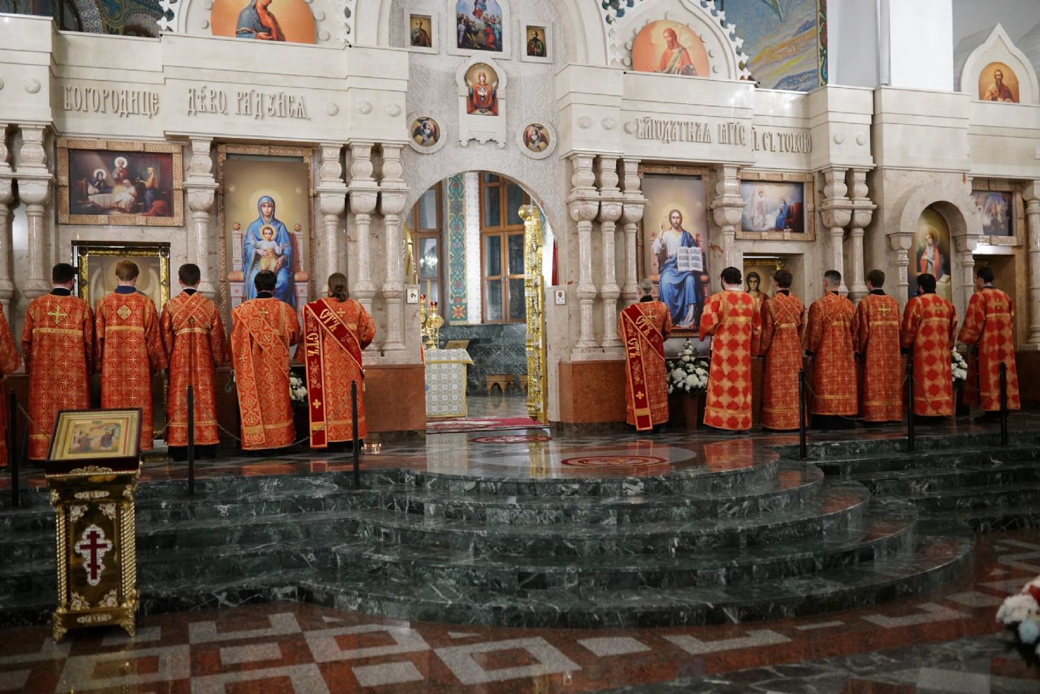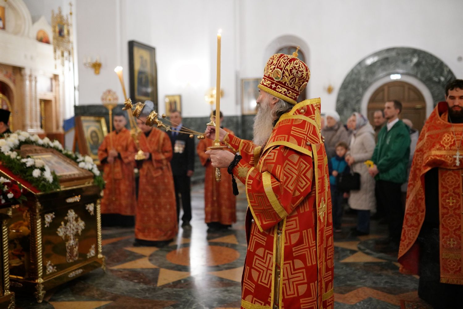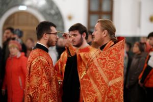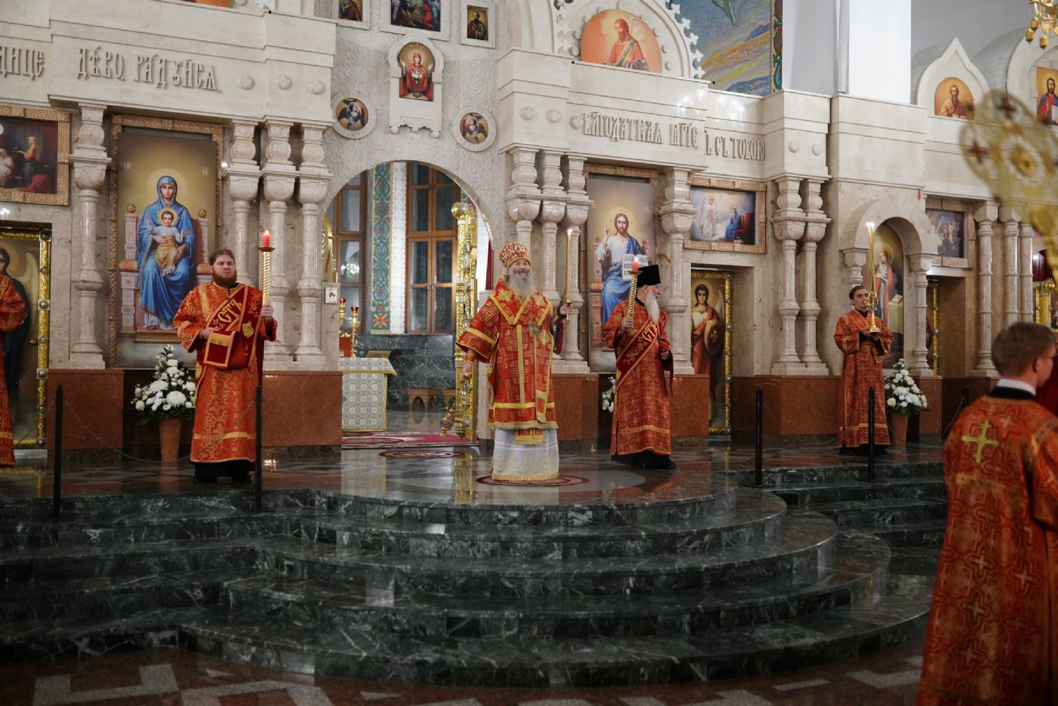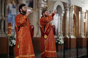 Его Высокопреосвященству сослужили ключарь кафедрального собора протоиерей Сергий Поглазов, клирики собора иереи Никифор Захаров, Евгений Самойлов, Александр Староверов и Иоанн Милютин, диаконы Андрей Дружинин и Артемий Бобоч, а также протодиакон Михаил Козловский. Песнопения антифонно исполняли старший и младший составы детско-юношеского хора «Благовест» под управлением регентов Татьяны Черновой и Софии Андреевой.
