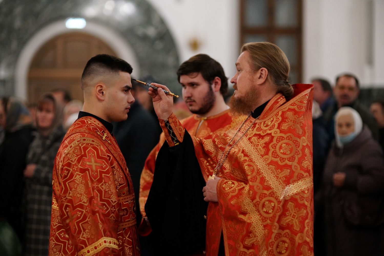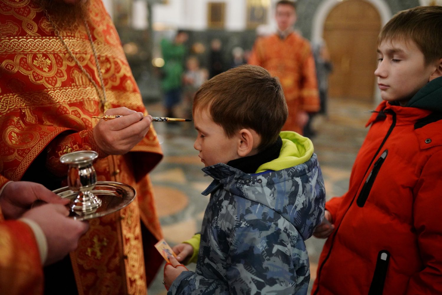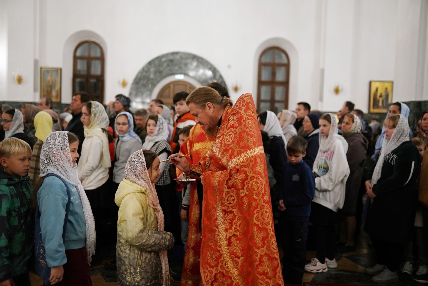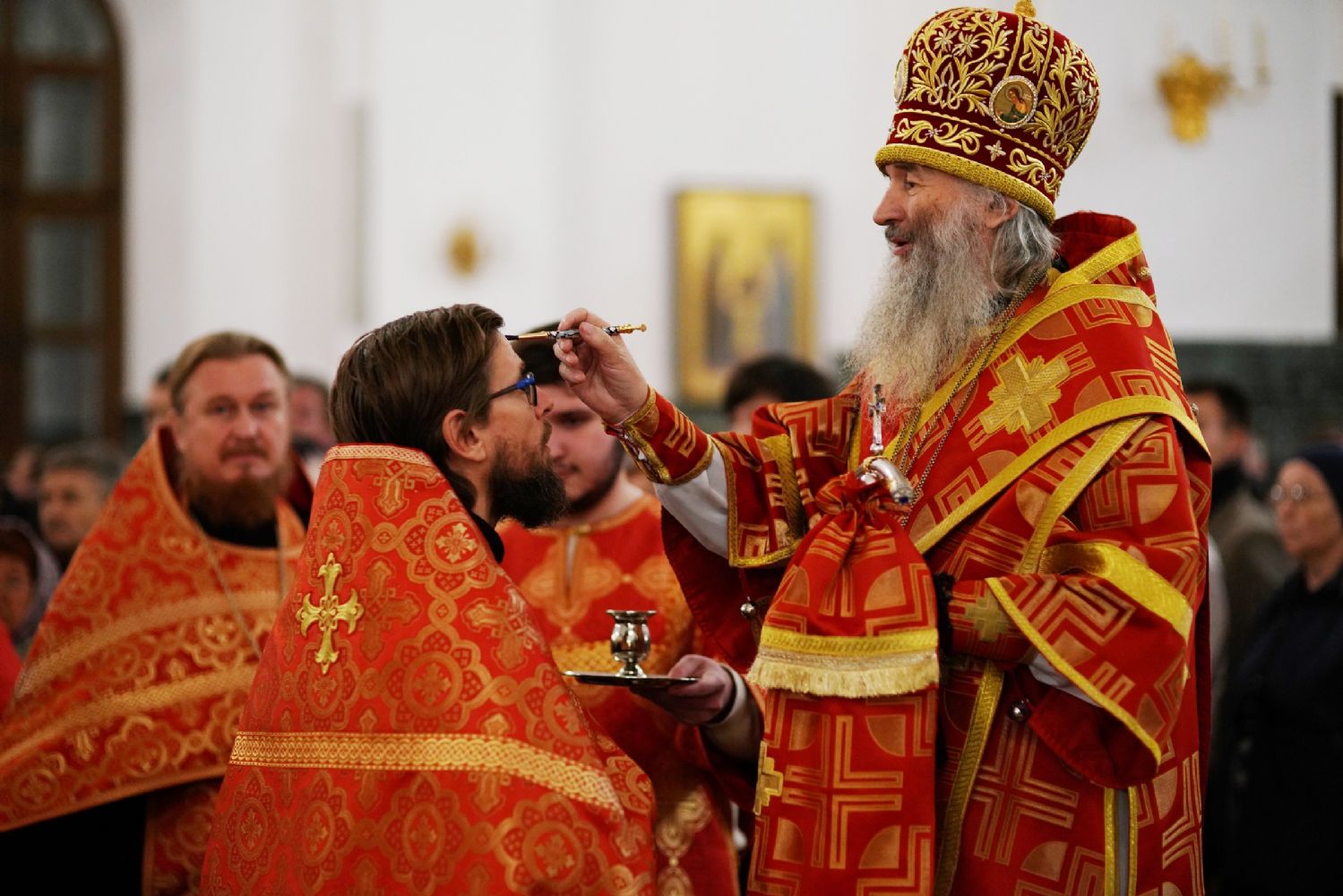 Его Высокопреосвященству сослужили ключарь кафедрального собора протоиерей Сергий Поглазов, клирики собора иереи Никифор Захаров, Евгений Самойлов, Александр Староверов и Иоанн Милютин, диаконы Андрей Дружинин и Артемий Бобоч, а также протодиакон Михаил Козловский. Песнопения антифонно исполняли старший и младший составы детско-юношеского хора «Благовест» под управлением регентов Татьяны Черновой и Софии Андреевой.