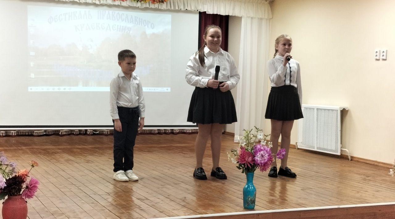 Ученицы воскресной школы при храме святых апостолов Петра и Павла с. Верх-Ушнур Настя Петрова и Настя Петухова Настя также представили презентацию о своем храме, а Надежда Баранова рассказала стихотворение про Петропавловский храм. И все вместе ребята исполнили песню собственного сочинения.