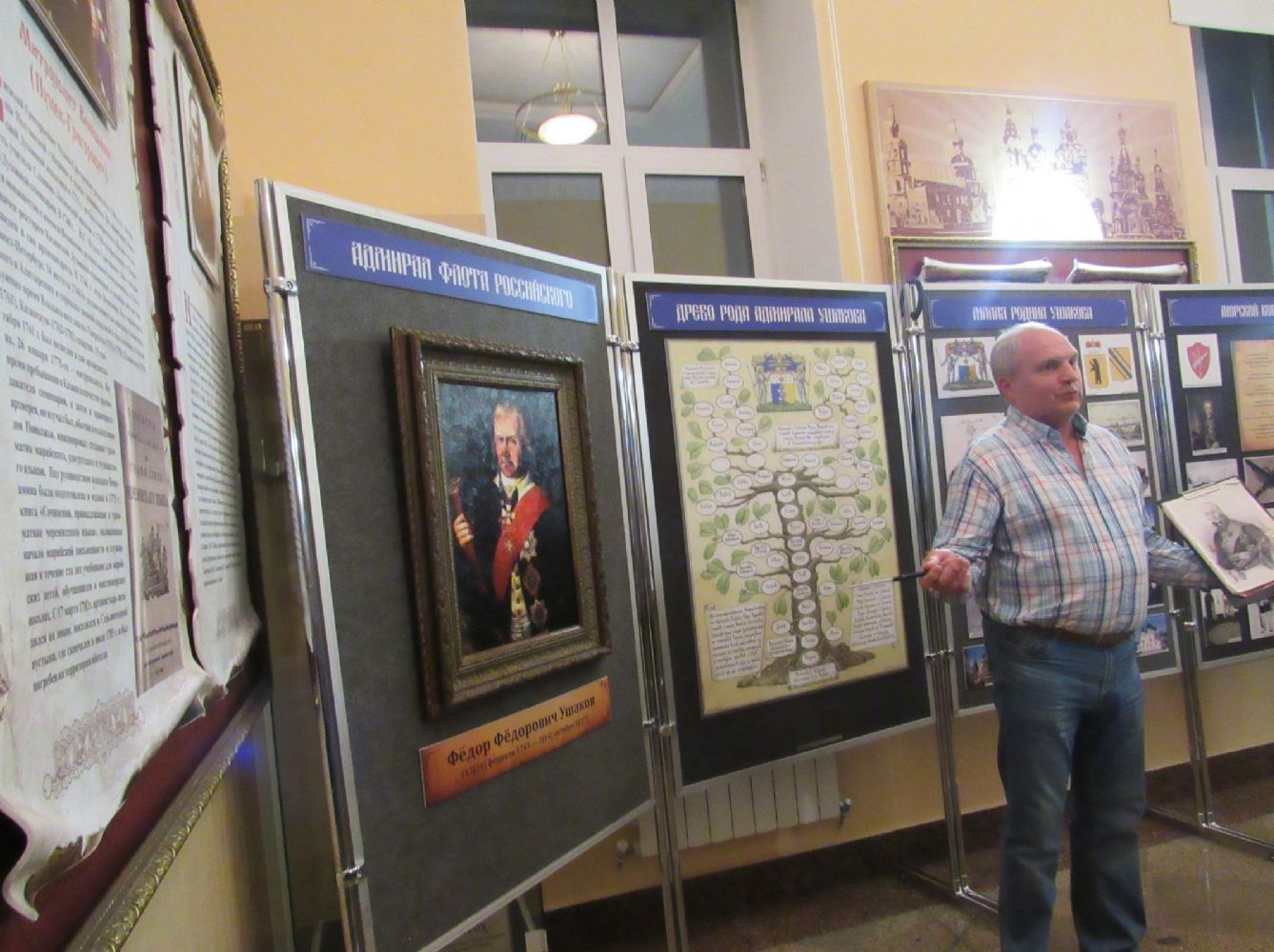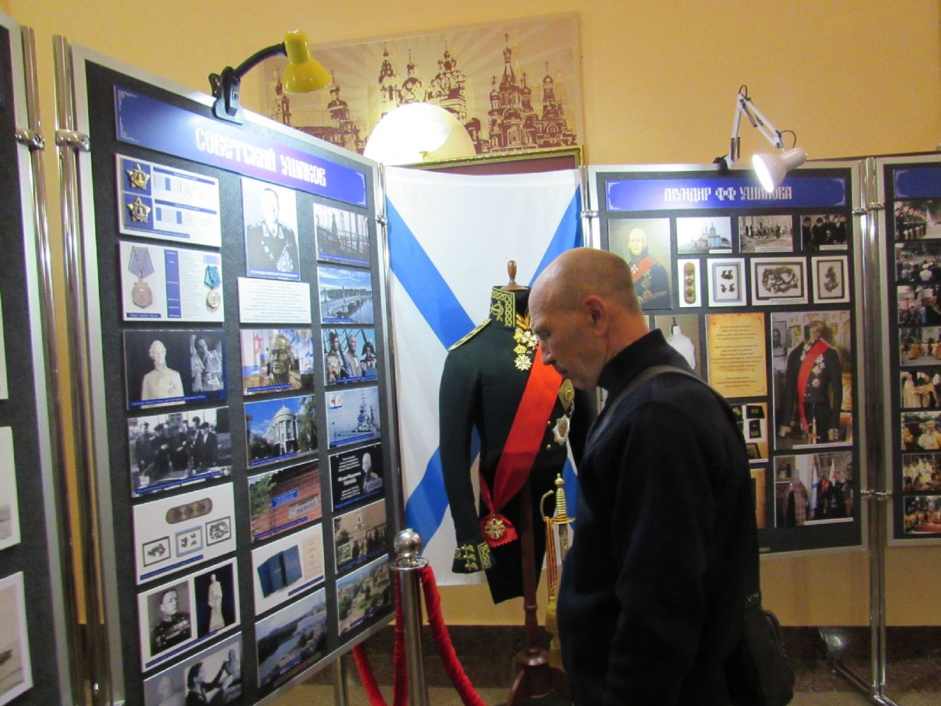 17 октября первокурсники были приглашены в Музей истории Православия на встречу с председателем общественной организации ветеранов военного флота г. Сарова Сергеем Михайловичем Яковлевым – одним из организаторов выставки, посвященной жизненному пути святого праведного воина Феодора Ушакова, адмирала Российского флота. Сергей Михайлович провел экскурсию по выставке, во время которой курсанты узнали о родословной прославленного адмирала, о его учебе в морском училище, о военной службе. За время командования Черноморским флотом он не проиграл ни одного сражения, не потерял ни одного корабля, потери в живой силе были минимальными, ни один моряк под его началом не попал в плен. Эта информация очень впечатлила слушателей. Курсанты в конце встречи не только искренне поблагодарили Сергея Михайловича, но и помолились святому воину – защитнику земли русской и веры Православной.