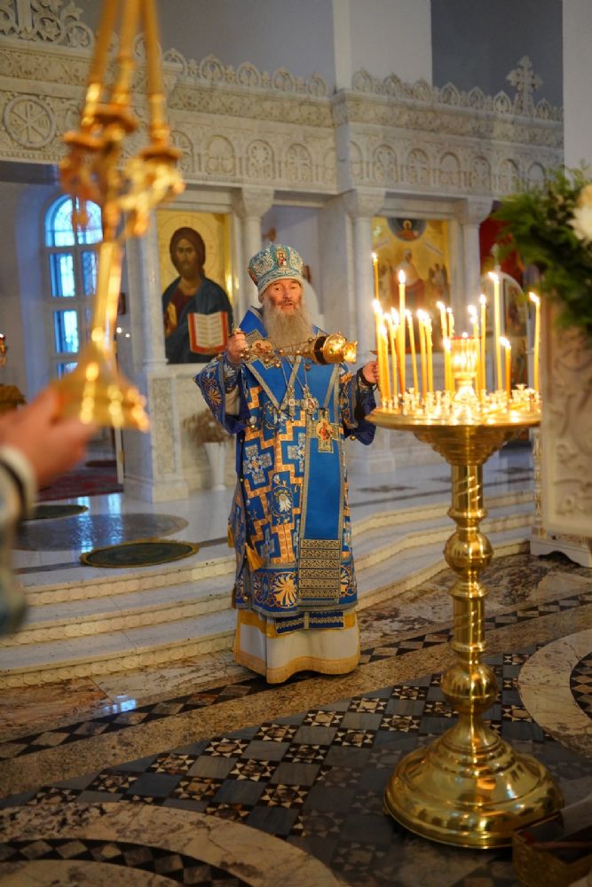 22 ноября вечером, в канун Недели 24-й по Пятидесятнице, дня памяти преподобного Матфея Яранского, митрополит Йошкар-Олинский и Марийский Иоанн возглавил всенощное бдение в Благовещенском кафедральном соборе.