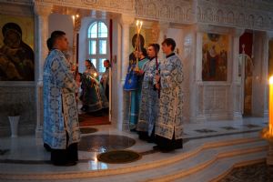 В память преподобного Амвросия Оптинского на вечерне читались ветхозаветные паримии из книги Бытия и Премудрости Соломона.