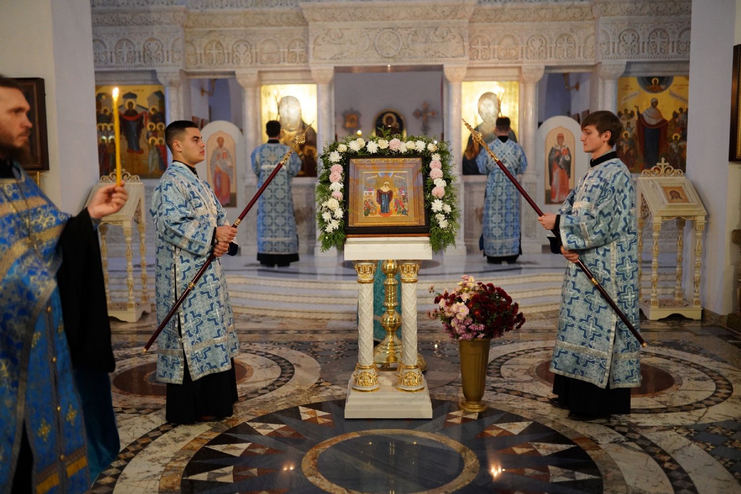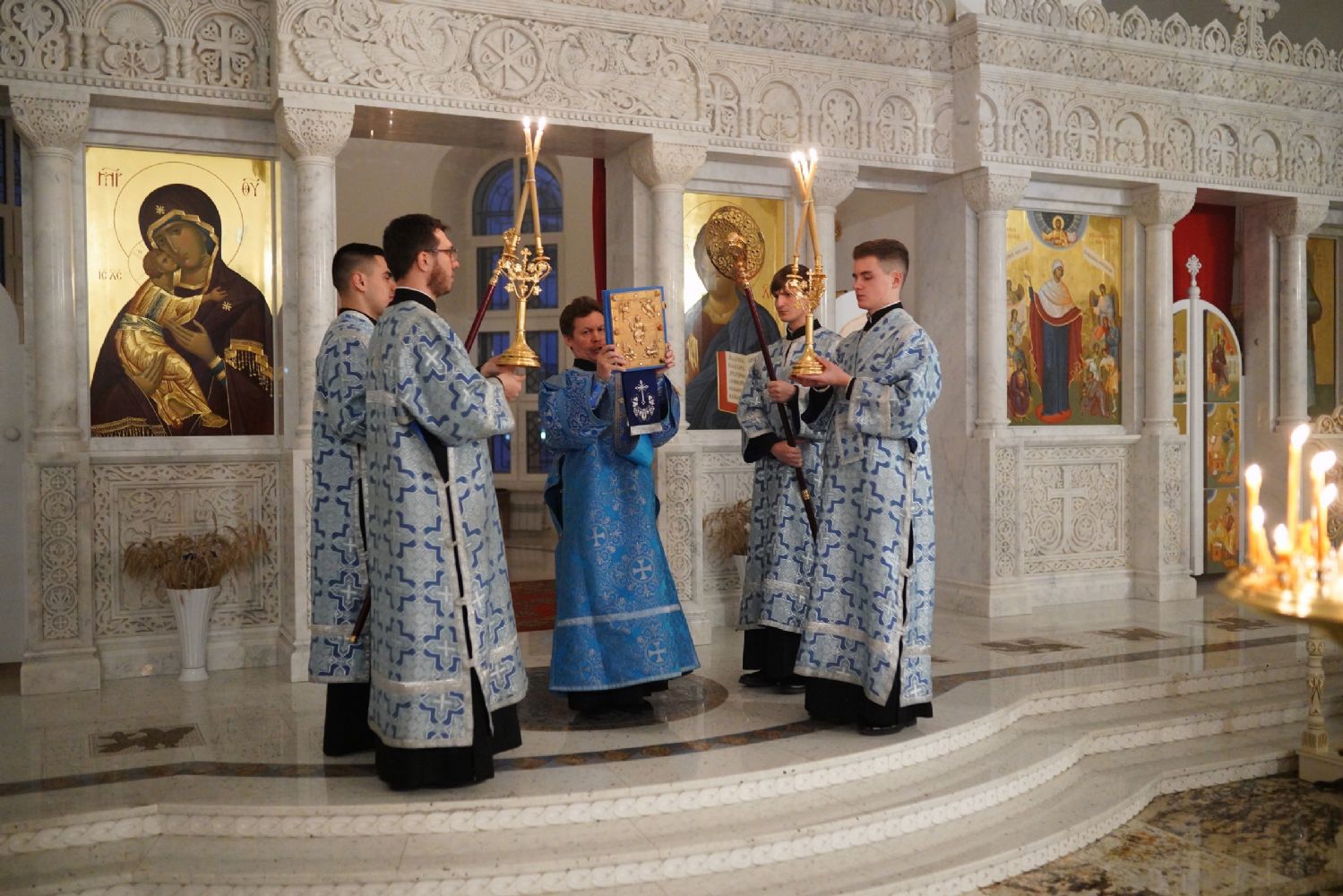 Традиционно, акафист, прославляя Пресвятую Богородицу, вместе со священством и хором пели все прихожане.