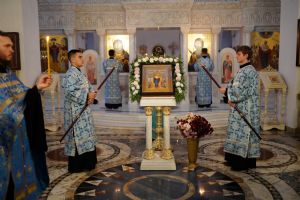 Вечером 22 октября митрополит Йошкар-Олинский и Марийский Иоанн возглавил вечерню с акафистом Пресвятой Богородице в храме иконы Божией Матери «Всех скорбящих Радость» в микрорайоне Тарханово г. Йошкар-Олы.
