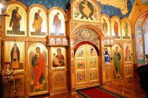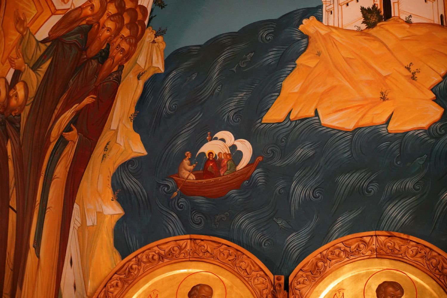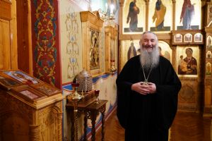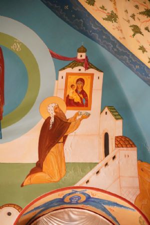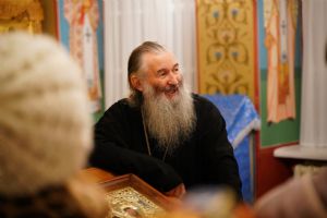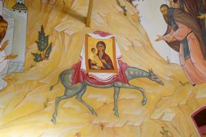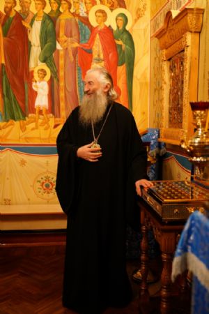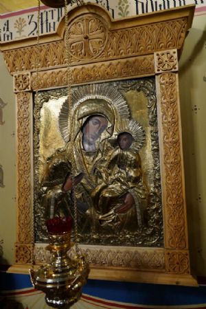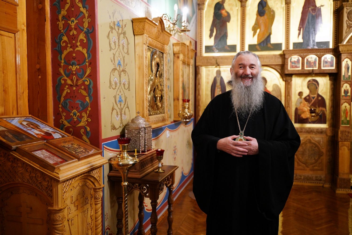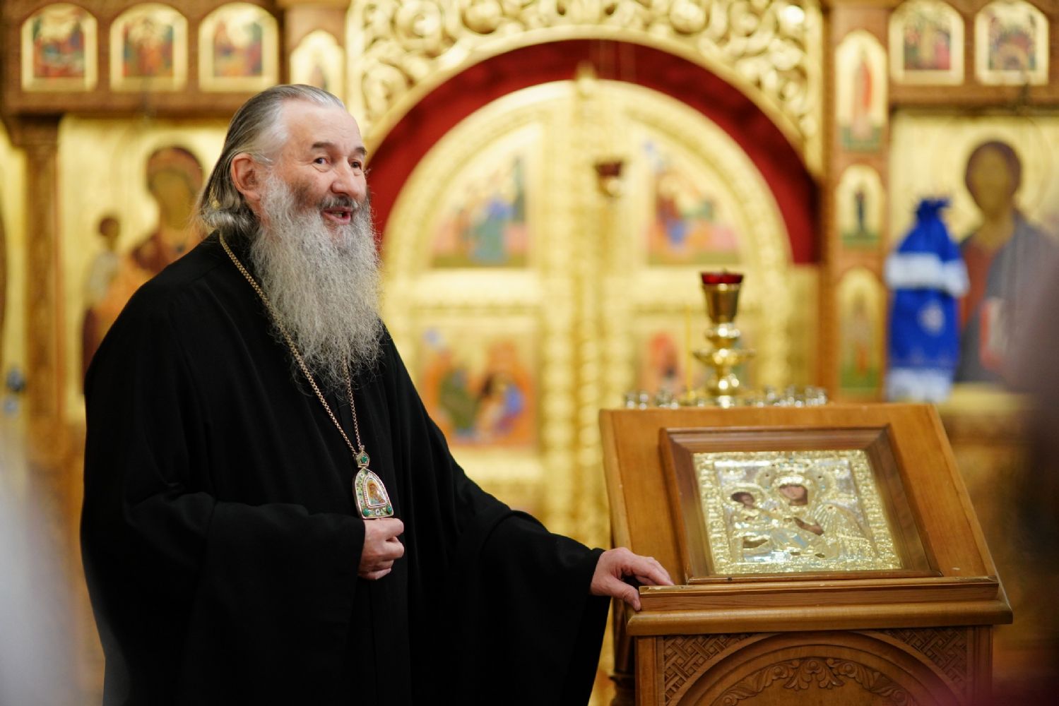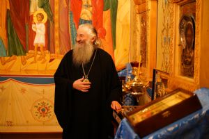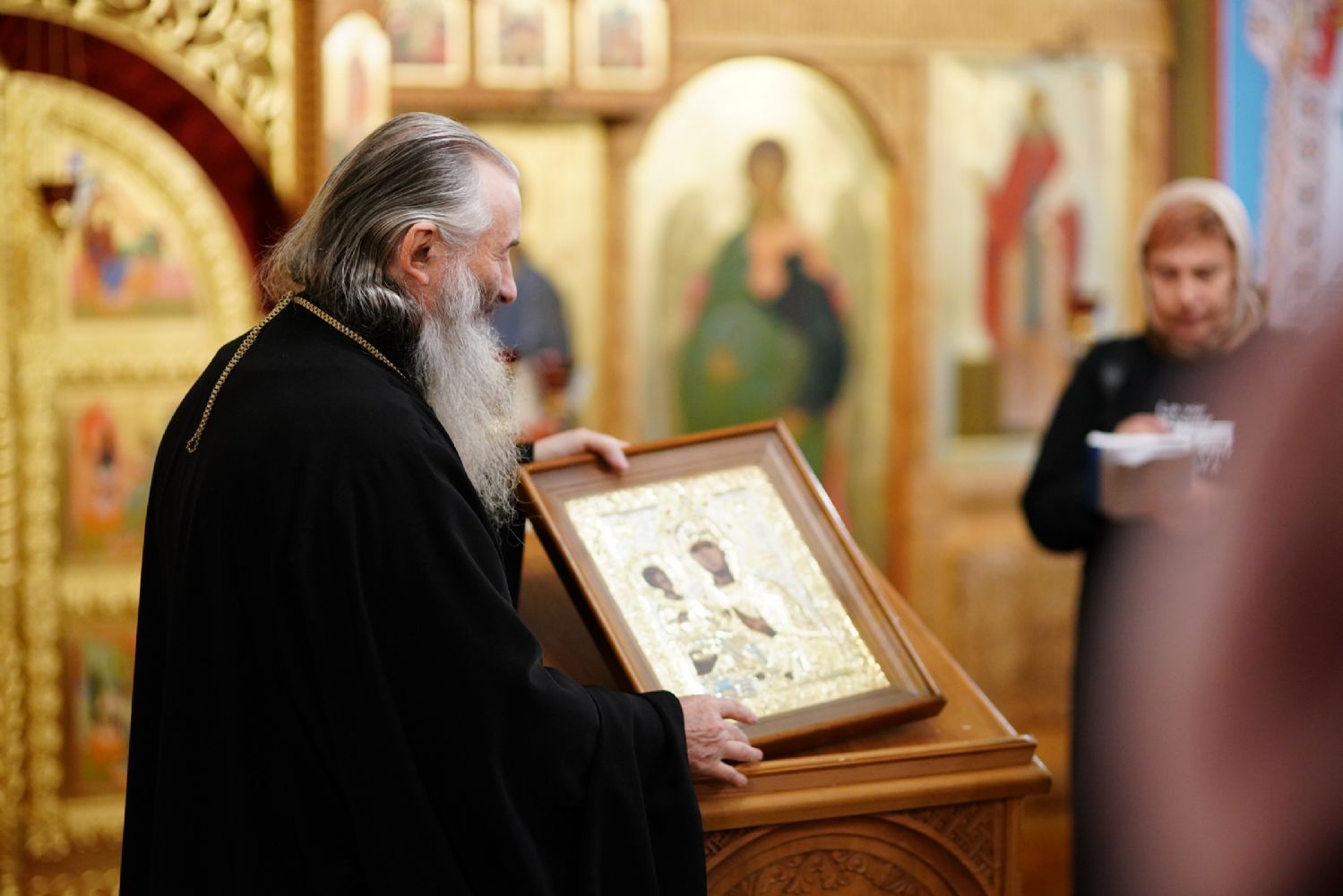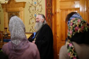 Владыка провел для гостей экскурсию по домовому храму в честь иконы Богородицы «Троеручица» – рассказал об истории храма, о настенных росписях, где в красках изображена история появления чудотворного образа Божией Матери «Троеручица», о чудесном спасении этой иконы от поругания турецкими захватчиками – когда ослик с возложенной на него святыней сам пришел к вратам Хиландарской обители на Афоне. Для нашей епархии афонские монахи изготовили в дар список иконы «Троеручица», который хранится ныне в домовом храме.