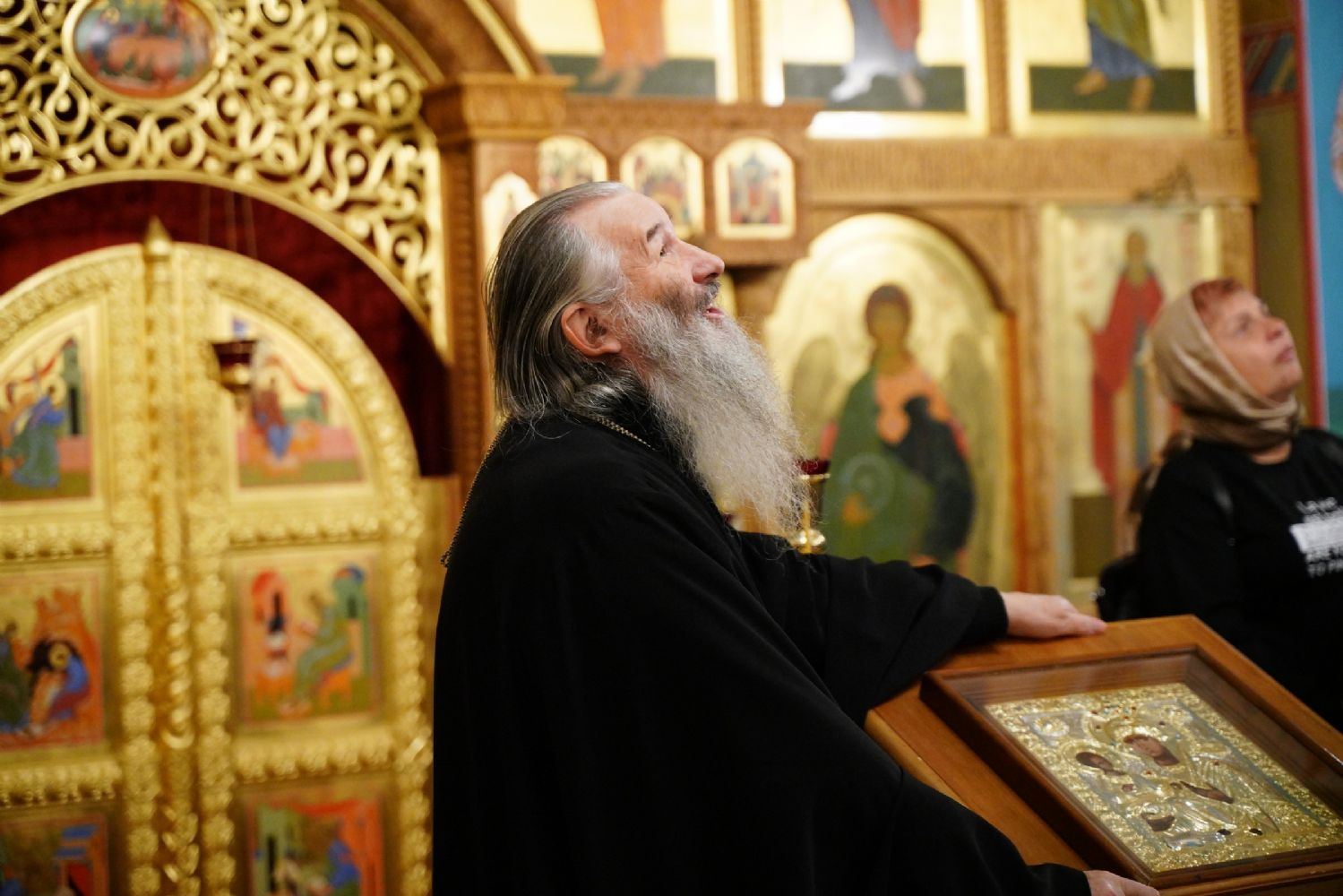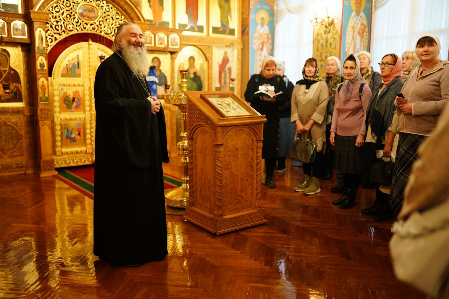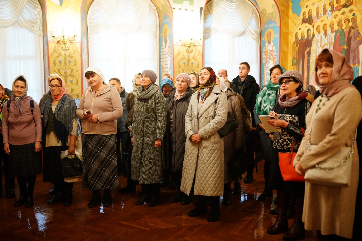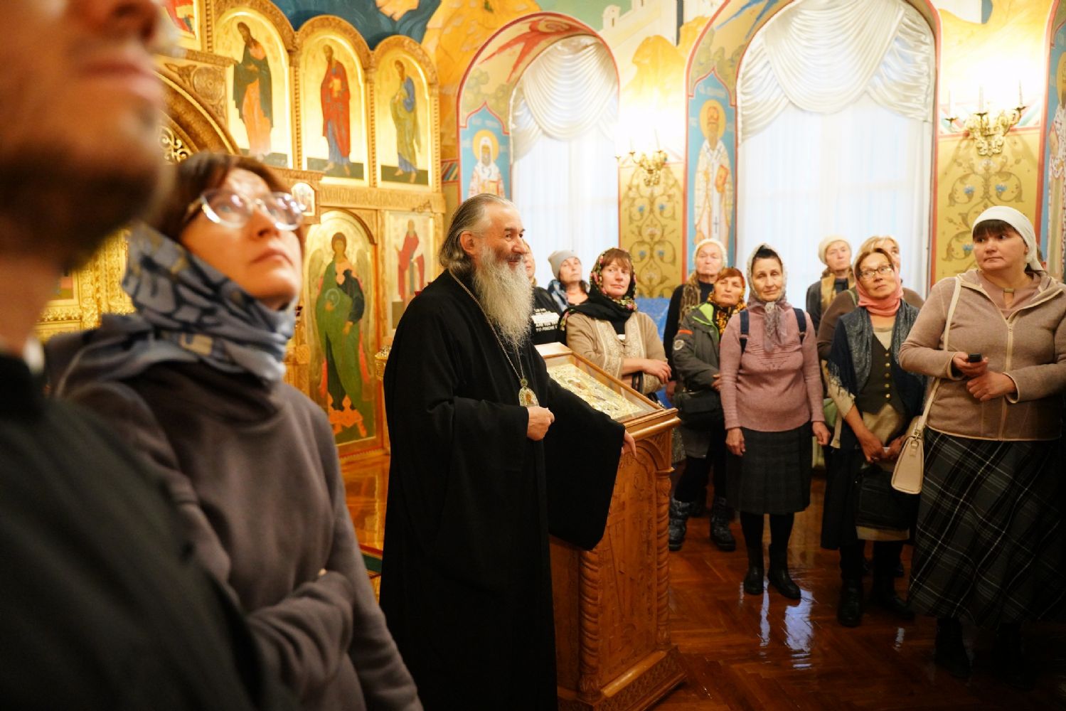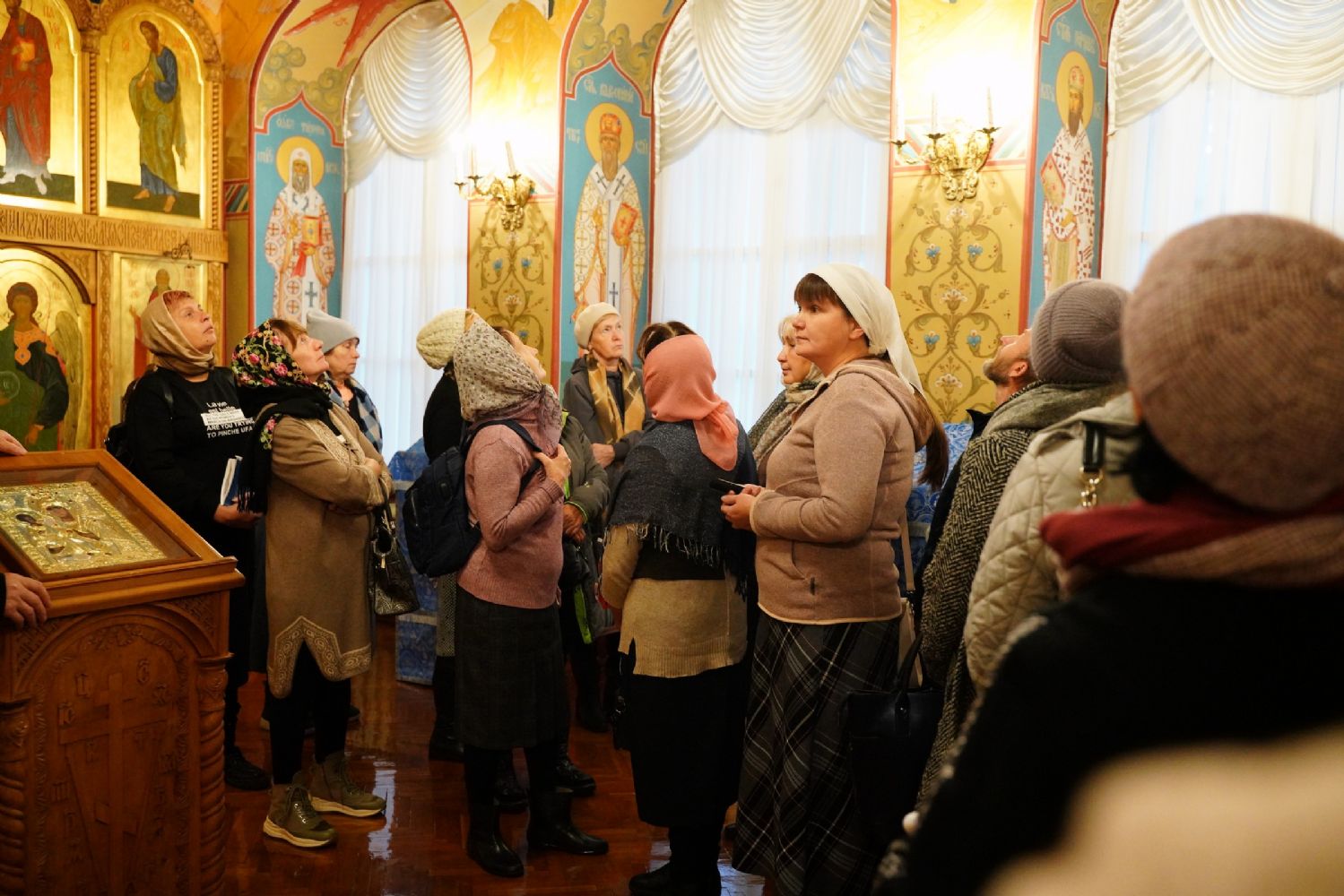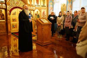 Митрополит Иоанн ознакомил гостей с многочисленными святынями храма, вынес из алтаря ковчег с мощами преподобного Сергия Радонежского – и все смогли приложиться к нему.