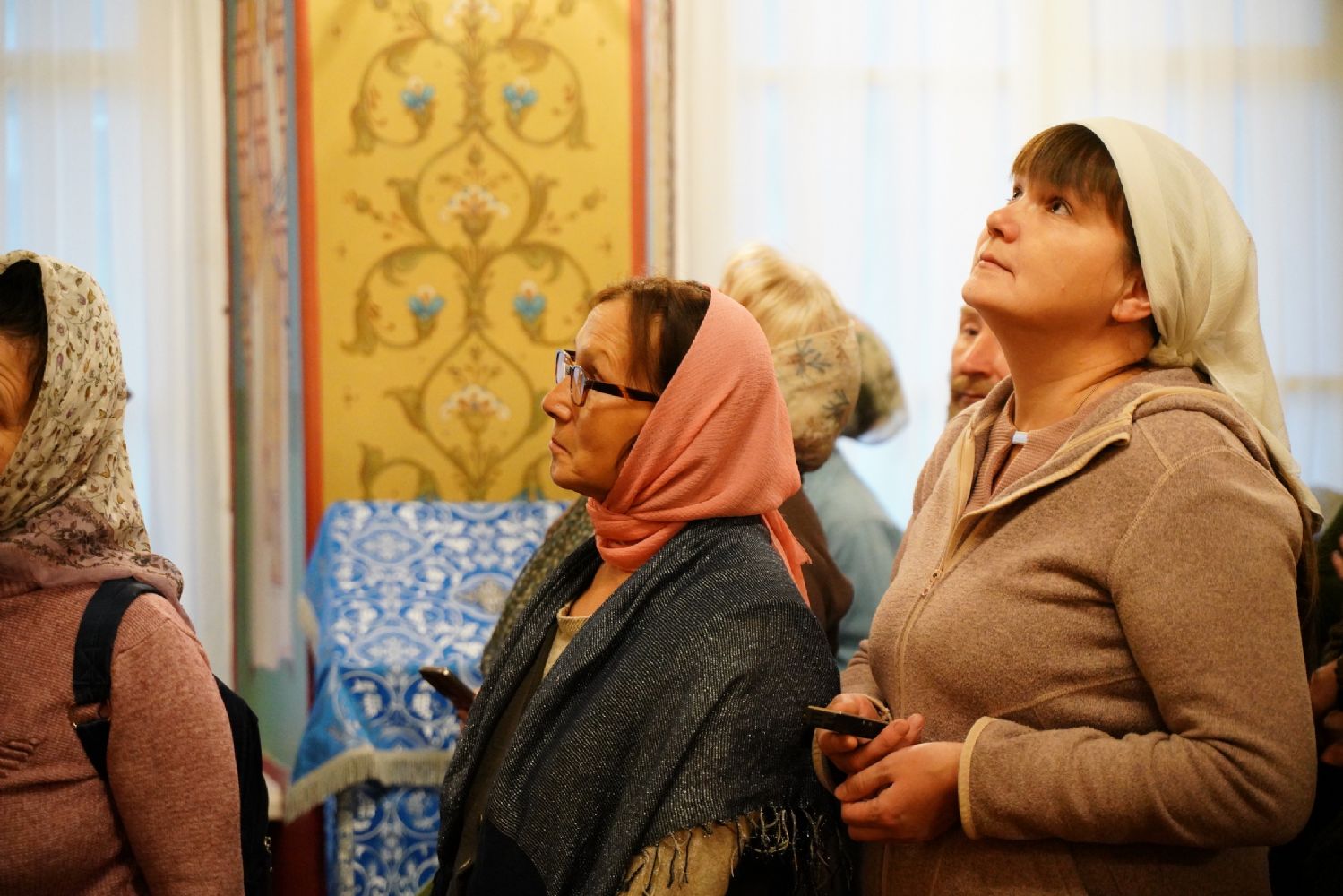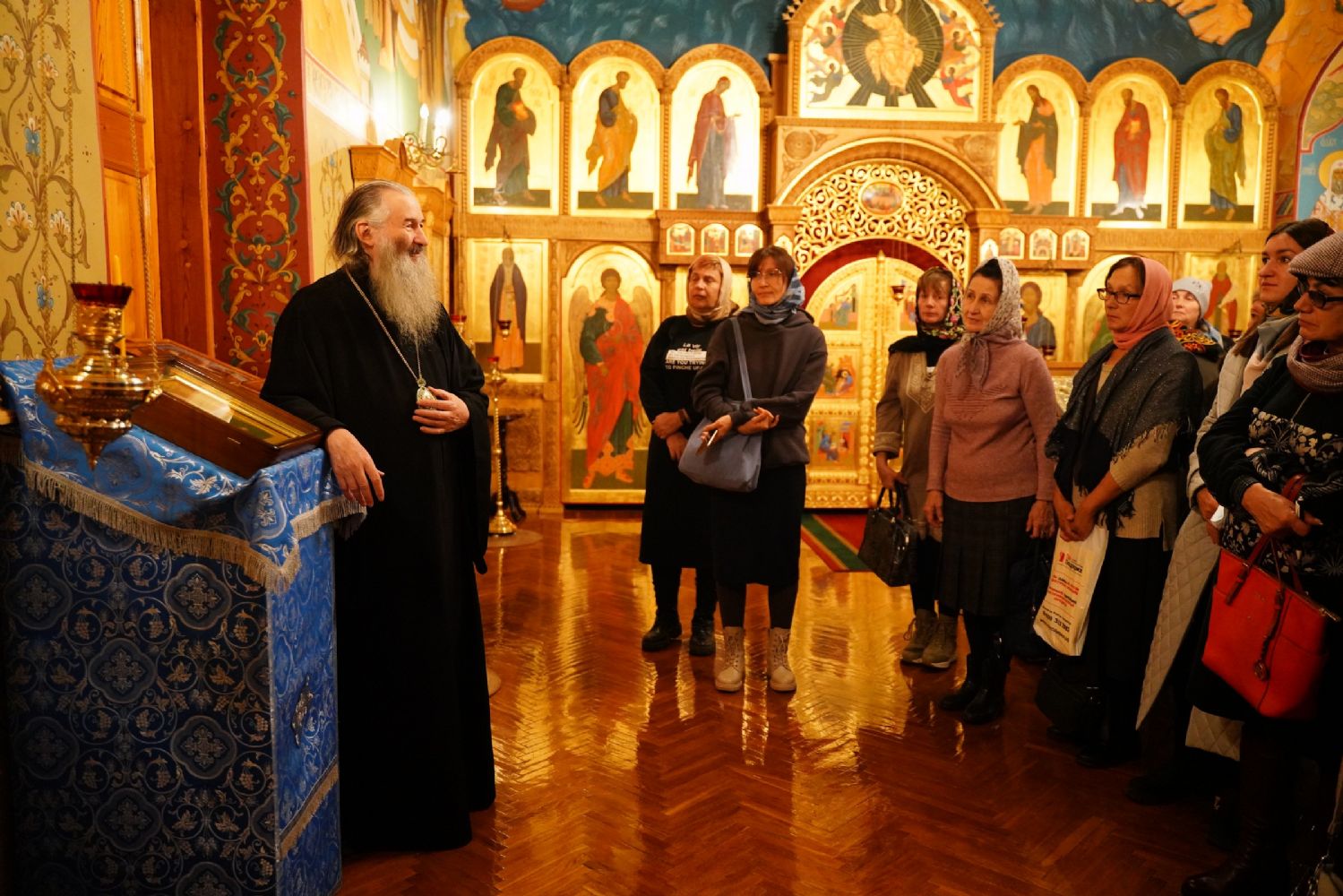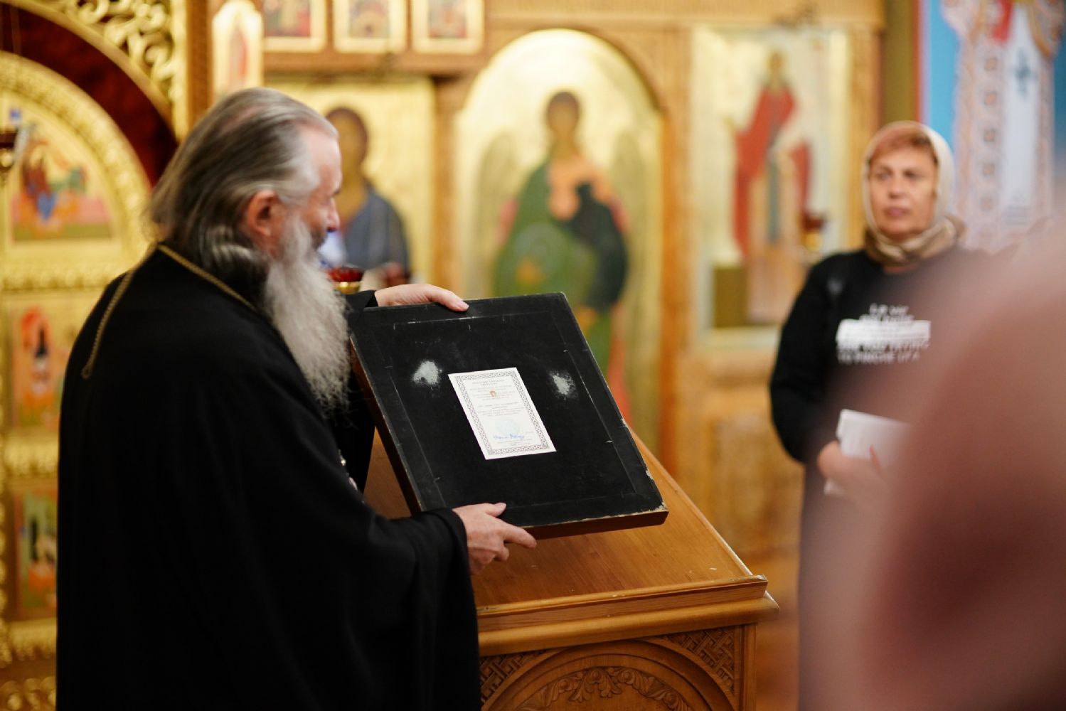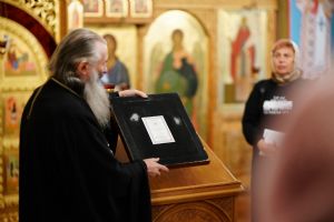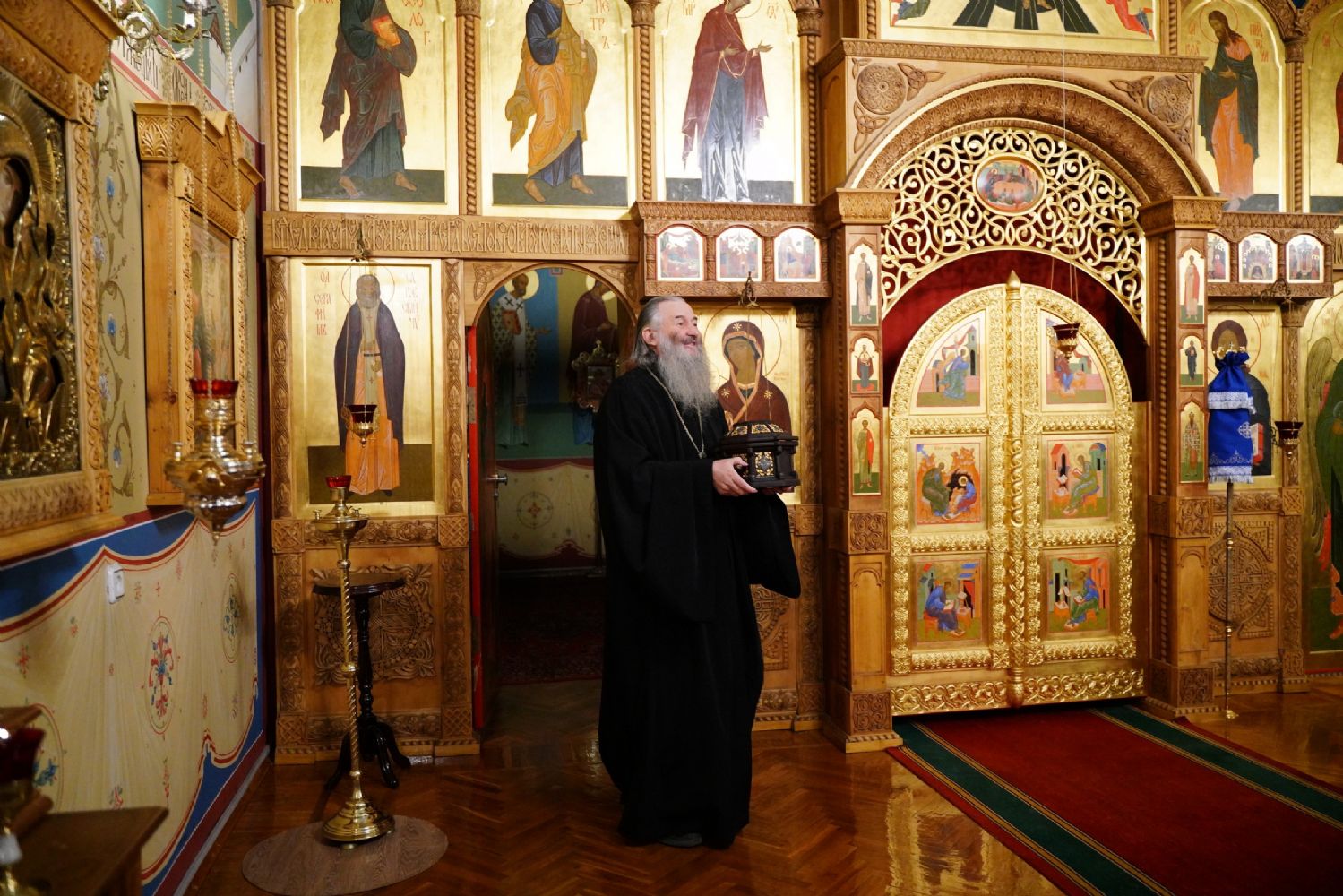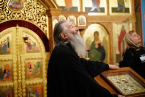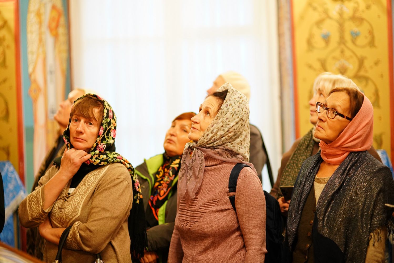 Митрополит Иоанн ознакомил гостей с многочисленными святынями храма, вынес из алтаря ковчег с мощами преподобного Сергия Радонежского – и все смогли приложиться к нему.