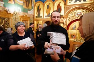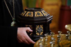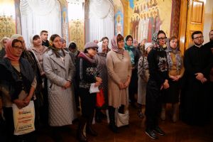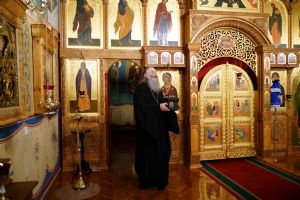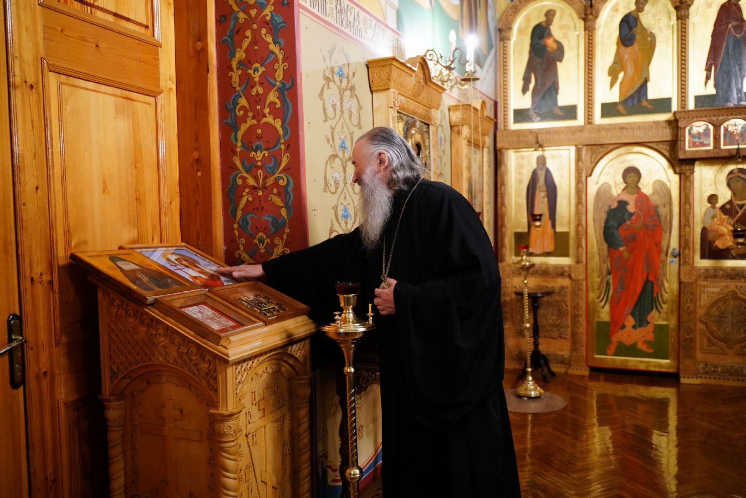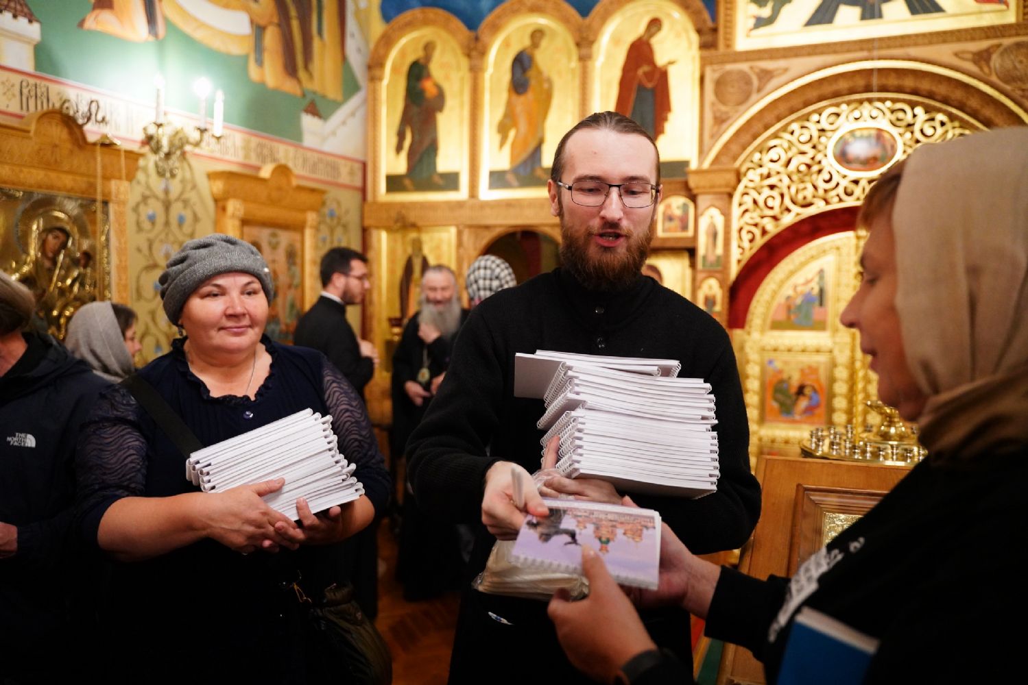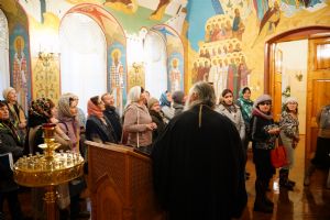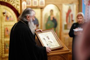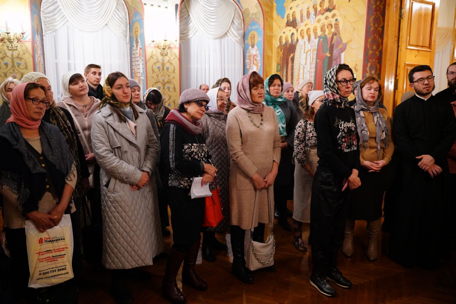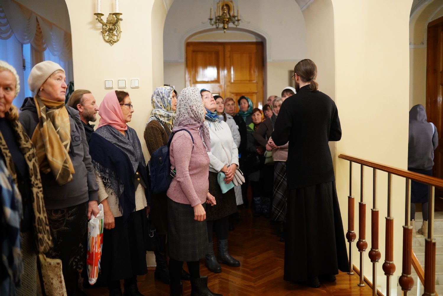 Митрополит Иоанн ознакомил гостей с многочисленными святынями храма, вынес из алтаря ковчег с мощами преподобного Сергия Радонежского – и все смогли приложиться к нему.