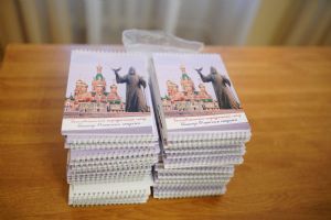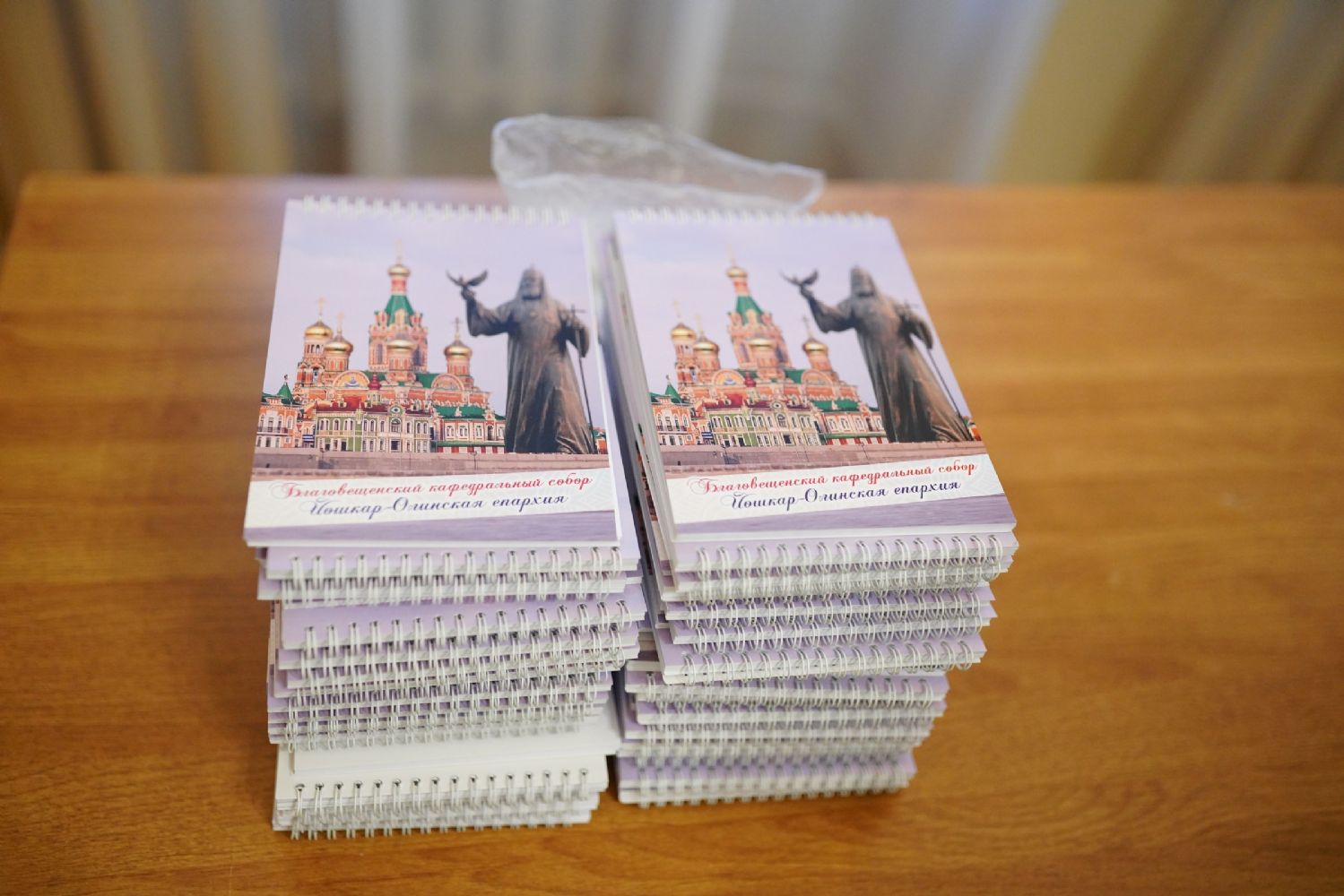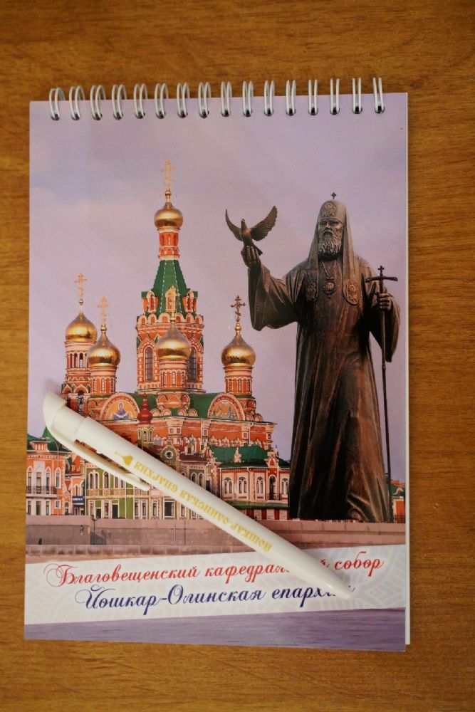 На память гостям митрополит Иоанн подарил блокноты и ручки с символикой епархии.