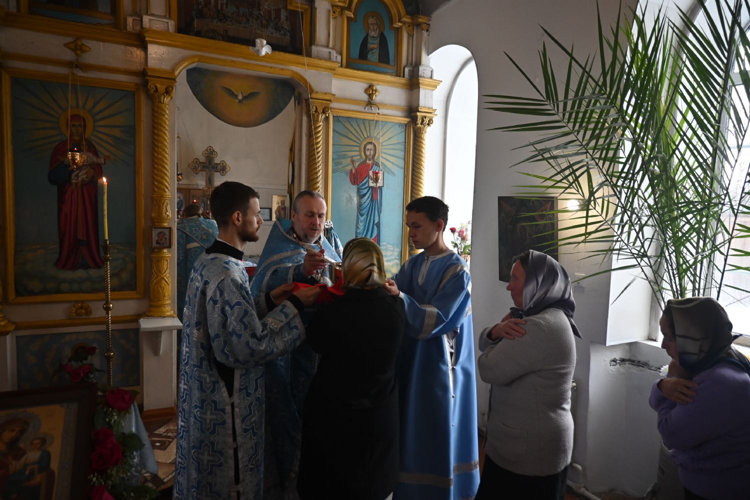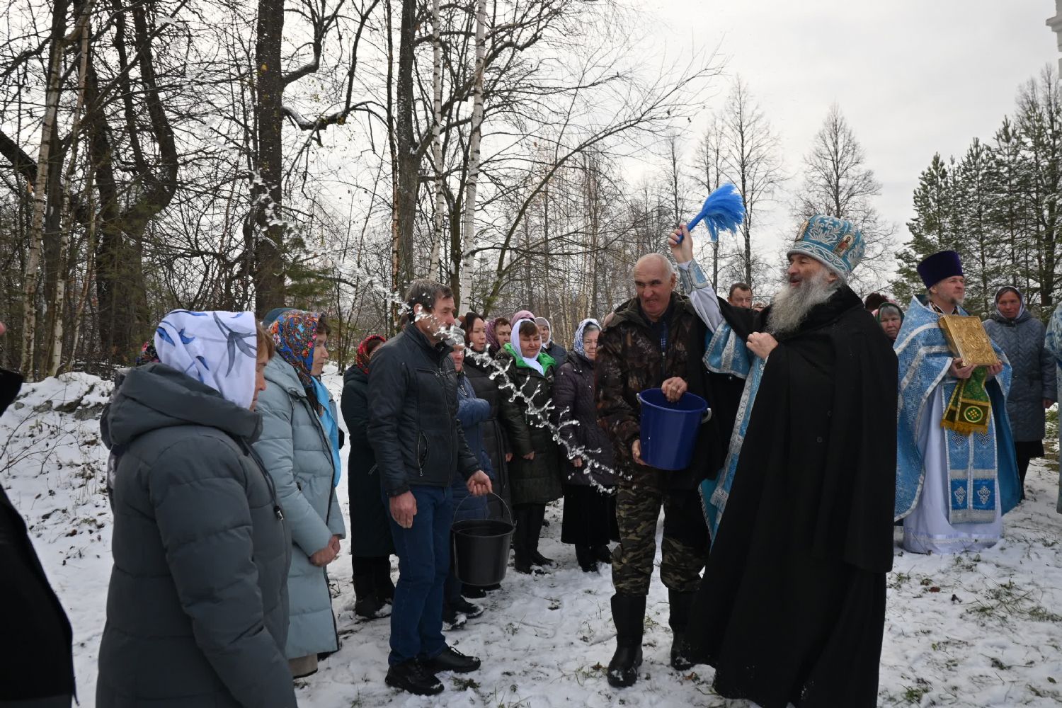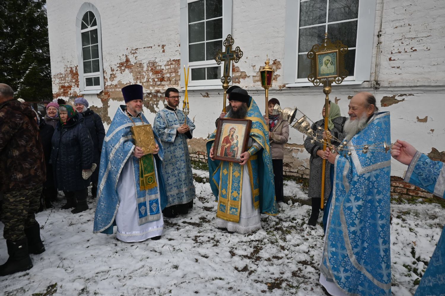 После Литургии прошел крестный ход вокруг храма со чтением Евангелия и кроплением святой водой.