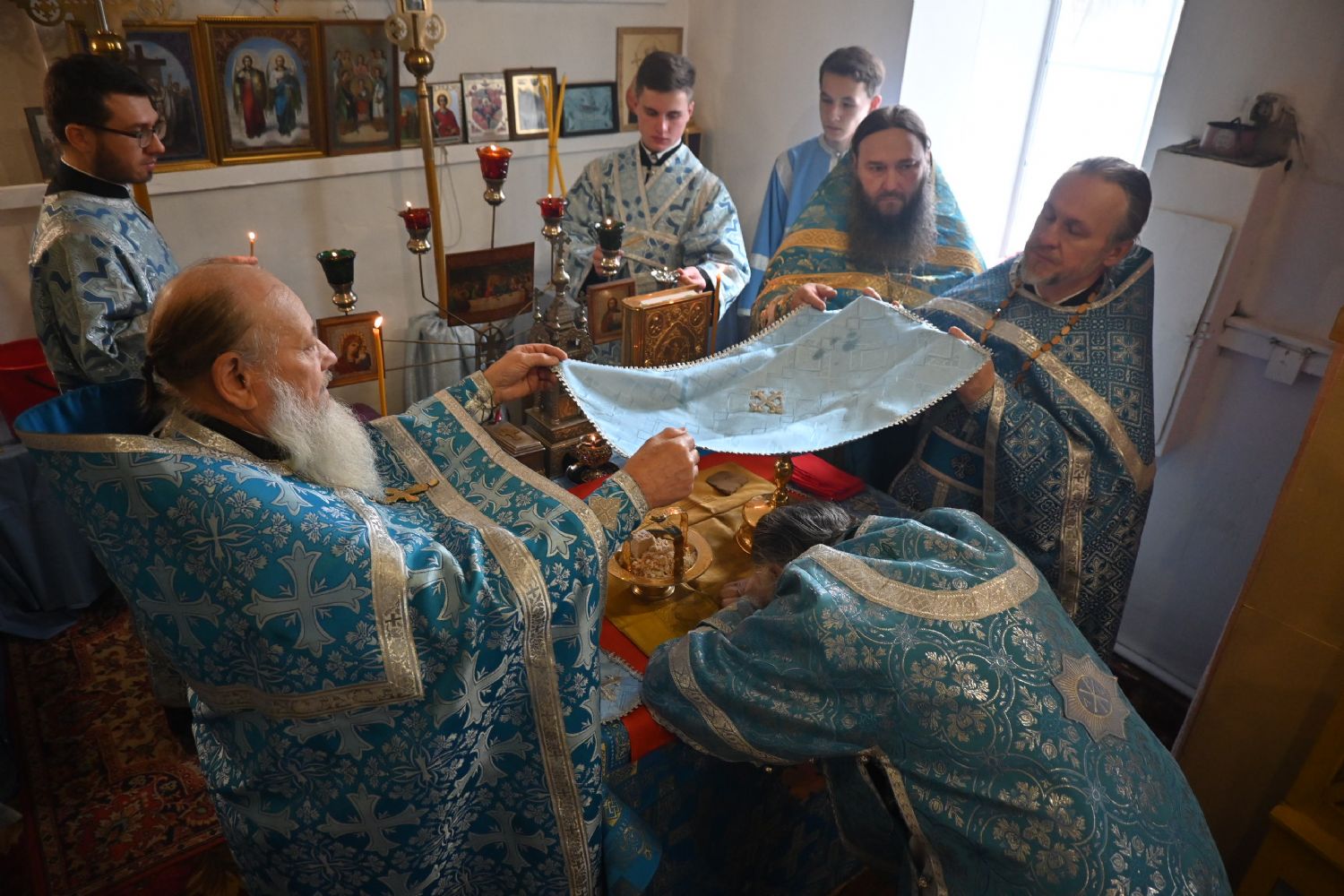Владыке сослужили благочинный Оршанского церковного округа, настоятель храма Рождества Иоанна Предтечи п. Оршанка протоиерей Димитрий Вылекжанин, настоятель Покровского храма с. Упша протоиерей Михаил Нехорошков, настоятель храма Сретения Господня с. Кучка протоиерей Алексий Вязов и клирик Благовещенского кафедрального собора диакон Андрей Дружинин.
