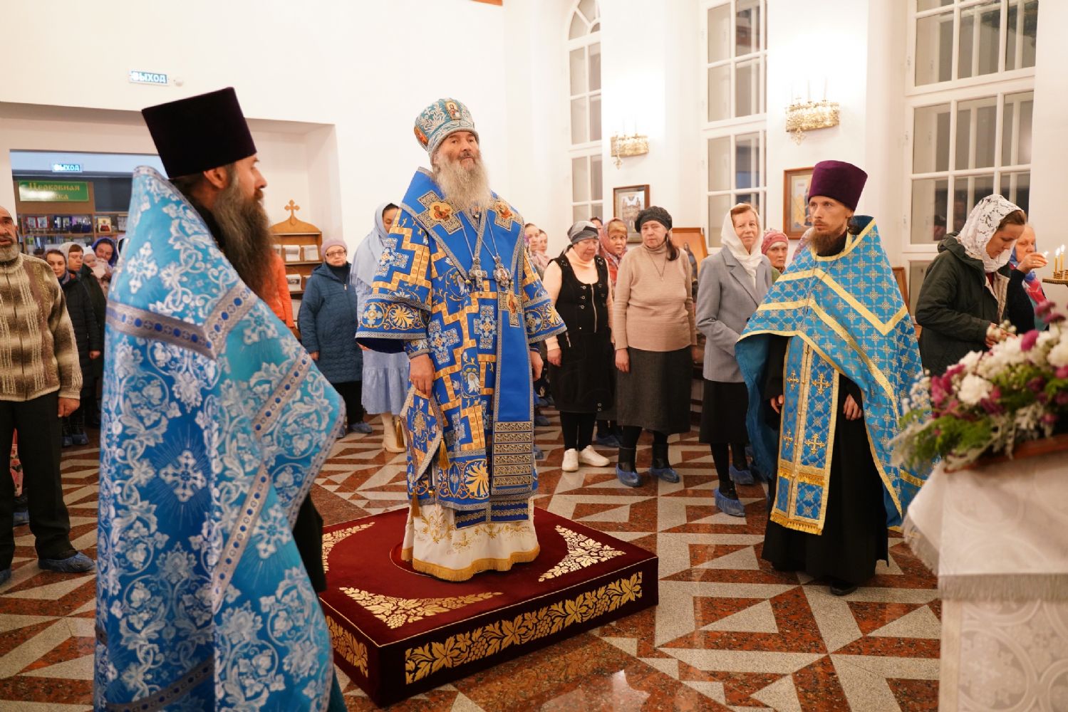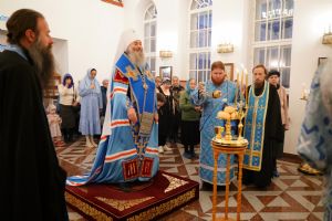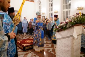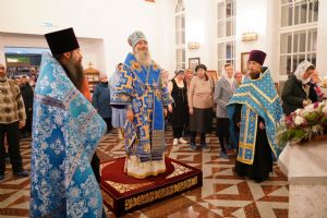 Накануне вечером, 25 октября, праздничное всенощное бдение в новоосвященном храме возглавил митрополит Йошкар-Олинский и Марийский Иоанн. Архипастырю сослужили настоятель храма иерей Михаил Горицкий, клирик храма иерей Евгений Хованский и клирик Благовещенского кафедрального собора диакон Андрей Дружинин. Песнопения исполнял хор храма под управлением регента Елены Умрихиной.