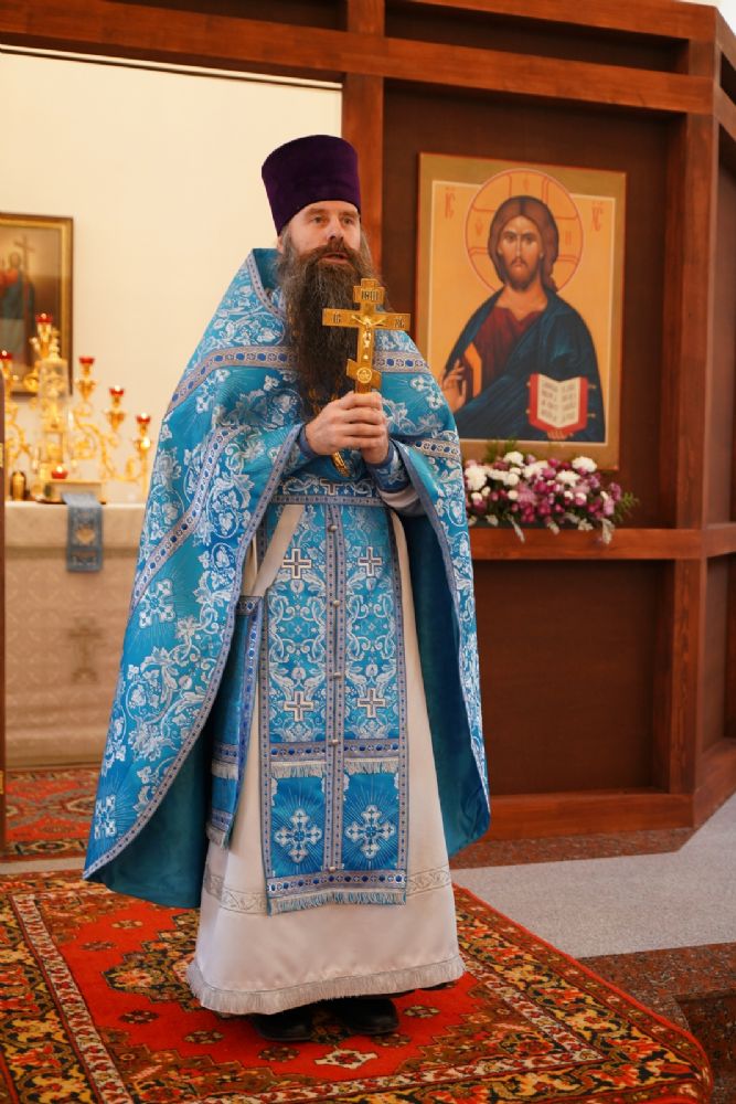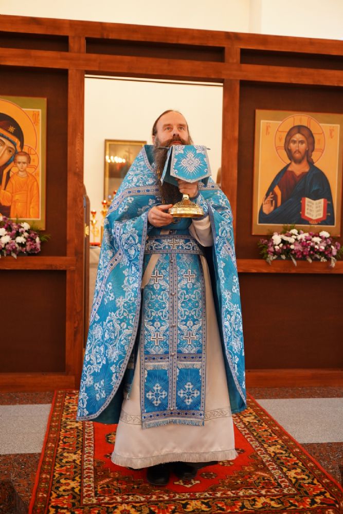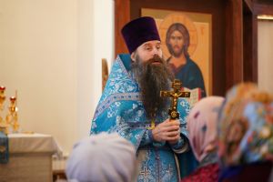 Обращаясь к собравшимся с проповедью, отец Михаил об истории чудотворного образа Пресвятой Богородицы «Иверская» и о заступничестве за нас Божией Матери.
