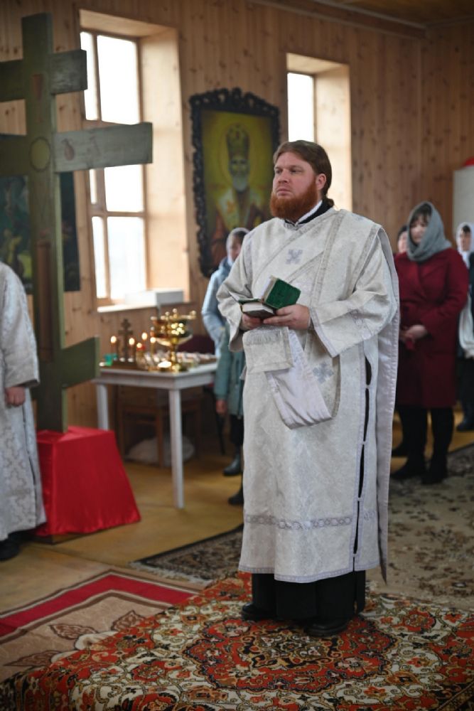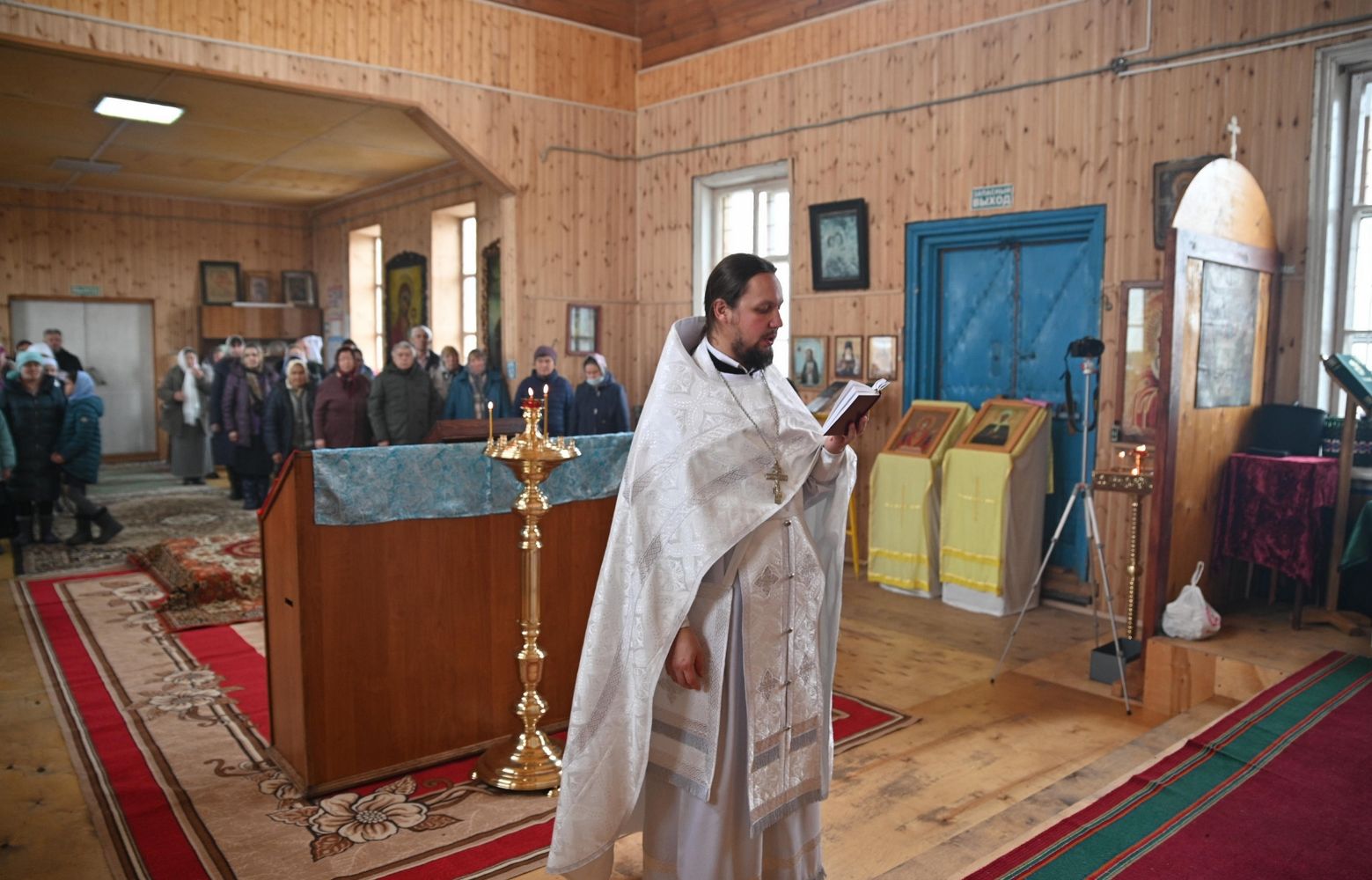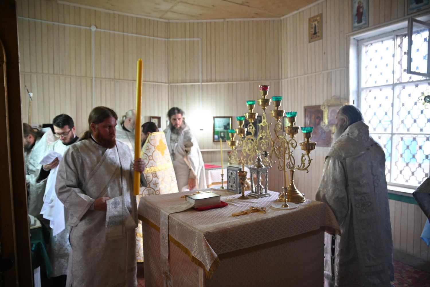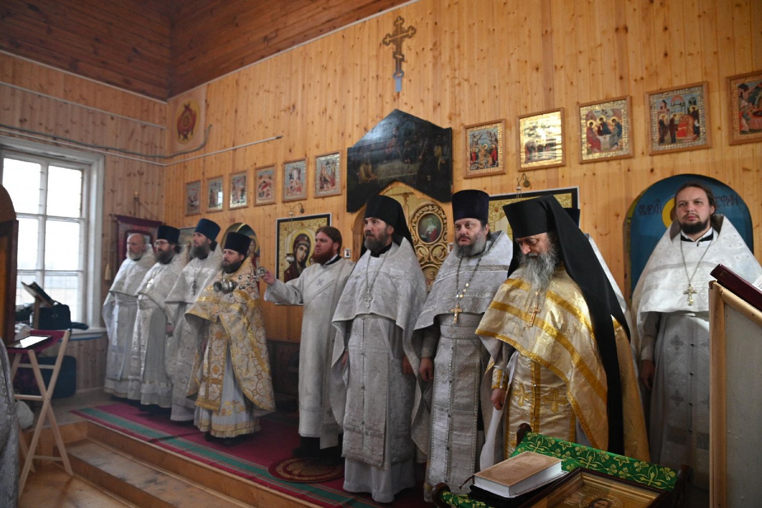 Архипастырю сослужили секретарь Йошкар-Олинского епархиального управления иеромонах Серафим (Пасанаев), благочинный Лугово-Марийского церковного округа настоятель Никольского храма с. Кожла-Сола протоиерей Алексий Никитин, благочинный Килемарского церковного округа настоятель Свято-Илиинского храма п. Килемары протоиерей Андрей Романов, настоятель Покровского храма с. Кокшайск иерей Алексий Леонов, окормляющий приход с. Сидельниково, настоятель Троицкого храма с. Красный Яр иерей Михаил Репин, клирик Вознесенского собора г. Йошкар-Олы иерей Владимир Глебов, клирик храма иконы Пресвятой Богородицы «Всех скорбящих Радость» г. Йошкар-Олы иерей Игорь Коваль, клирик Никольского храма с. Звенигово иерей Александр Сергунин, клирик Благовещенского кафедрального собора диакон Андрей Дружинин, а также гость из Чувашской митрополии – насельник Свято-Троицкого монастыря г. Алатырь иеромонах Израиль. Песнопения исполнял малый состав хора «Благовест» под управлением регента Татьяны Черновой.