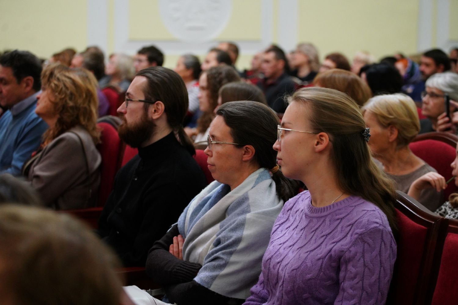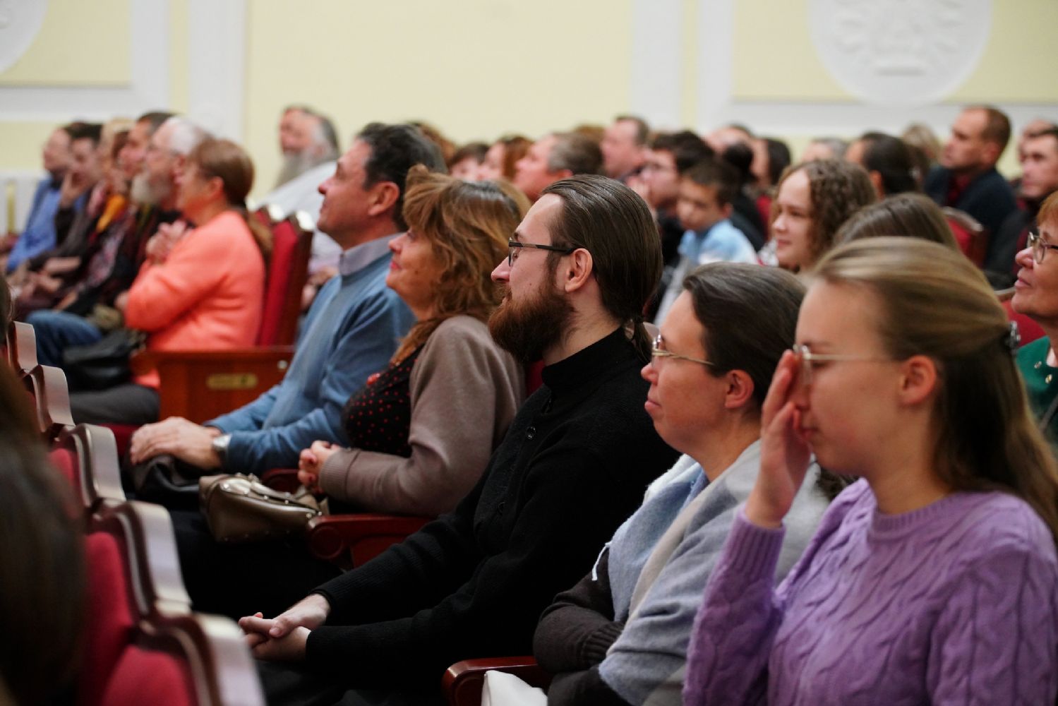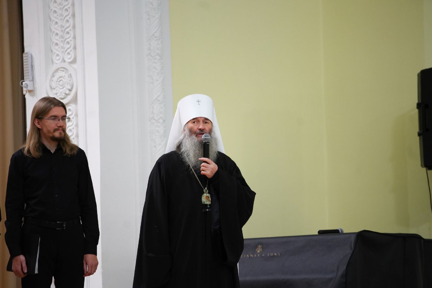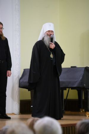 «Дорогие братья и сестры, милостью Божией вновь мы собрались в этом зале, чтобы соприкоснуться через музыку с той великой духовной радостью, которую открывает нам слово Божие. Чем отличается музыка оркестровая от хорового пения? Нет более совершенного инструмента, способного выразить не только красоту музыки, но и ее духовный смысл, как человеческий голос. Исходящие из глубины сердца песнопения раскрывают не только ум и душу человека, но прежде всего его сердце – и от сердца к сердцу происходит внутренние духовное общение и единение не только поющих, но и слушающих. Церковная музыка поражает наше сердце не только гармонией и красотой звука, а выражает слово, которое износится из уст поющего. А музыка только раскрывает полноту божественных словес, которые входят в духовную сокровищницу – в наше сердце.