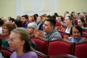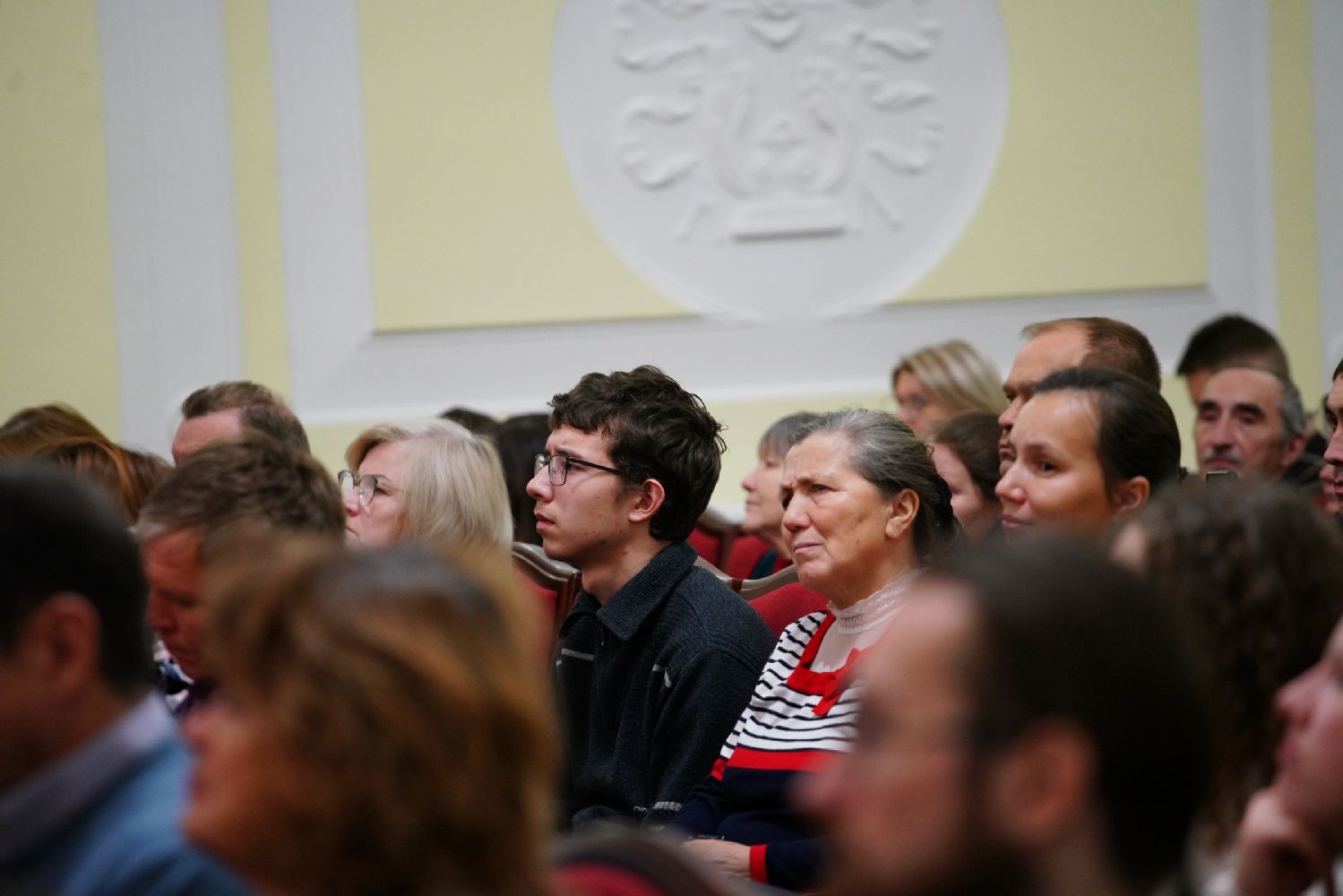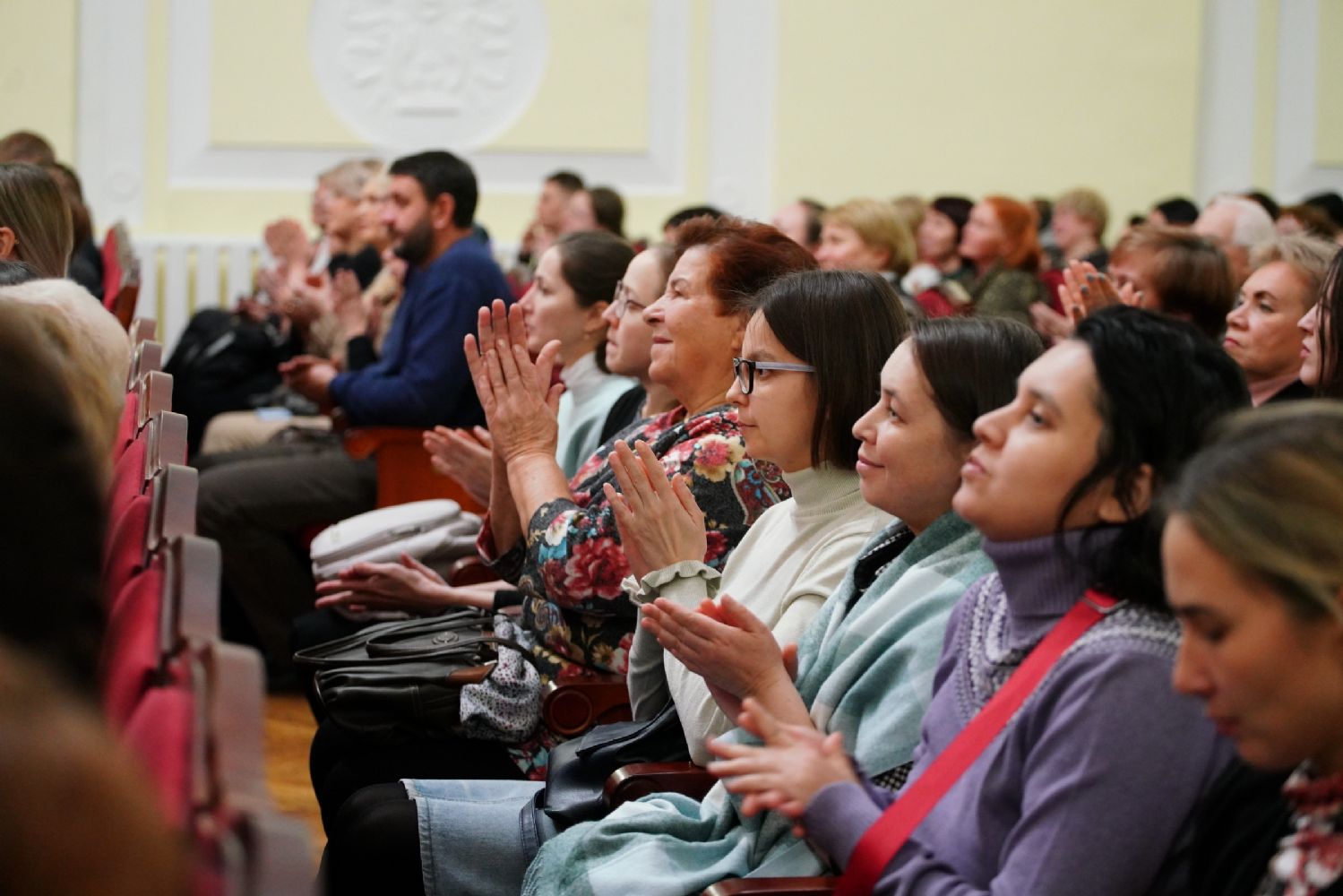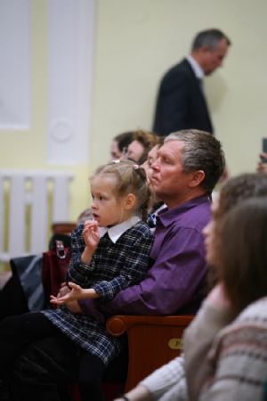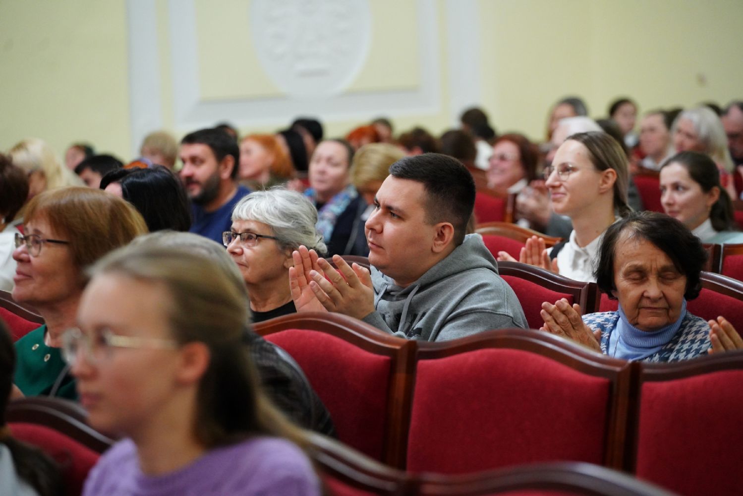 «Дорогие братья и сестры, милостью Божией вновь мы собрались в этом зале, чтобы соприкоснуться через музыку с той великой духовной радостью, которую открывает нам слово Божие. Чем отличается музыка оркестровая от хорового пения? Нет более совершенного инструмента, способного выразить не только красоту музыки, но и ее духовный смысл, как человеческий голос. Исходящие из глубины сердца песнопения раскрывают не только ум и душу человека, но прежде всего его сердце – и от сердца к сердцу происходит внутренние духовное общение и единение не только поющих, но и слушающих. Церковная музыка поражает наше сердце не только гармонией и красотой звука, а выражает слово, которое износится из уст поющего. А музыка только раскрывает полноту божественных словес, которые входят в духовную сокровищницу – в наше сердце.