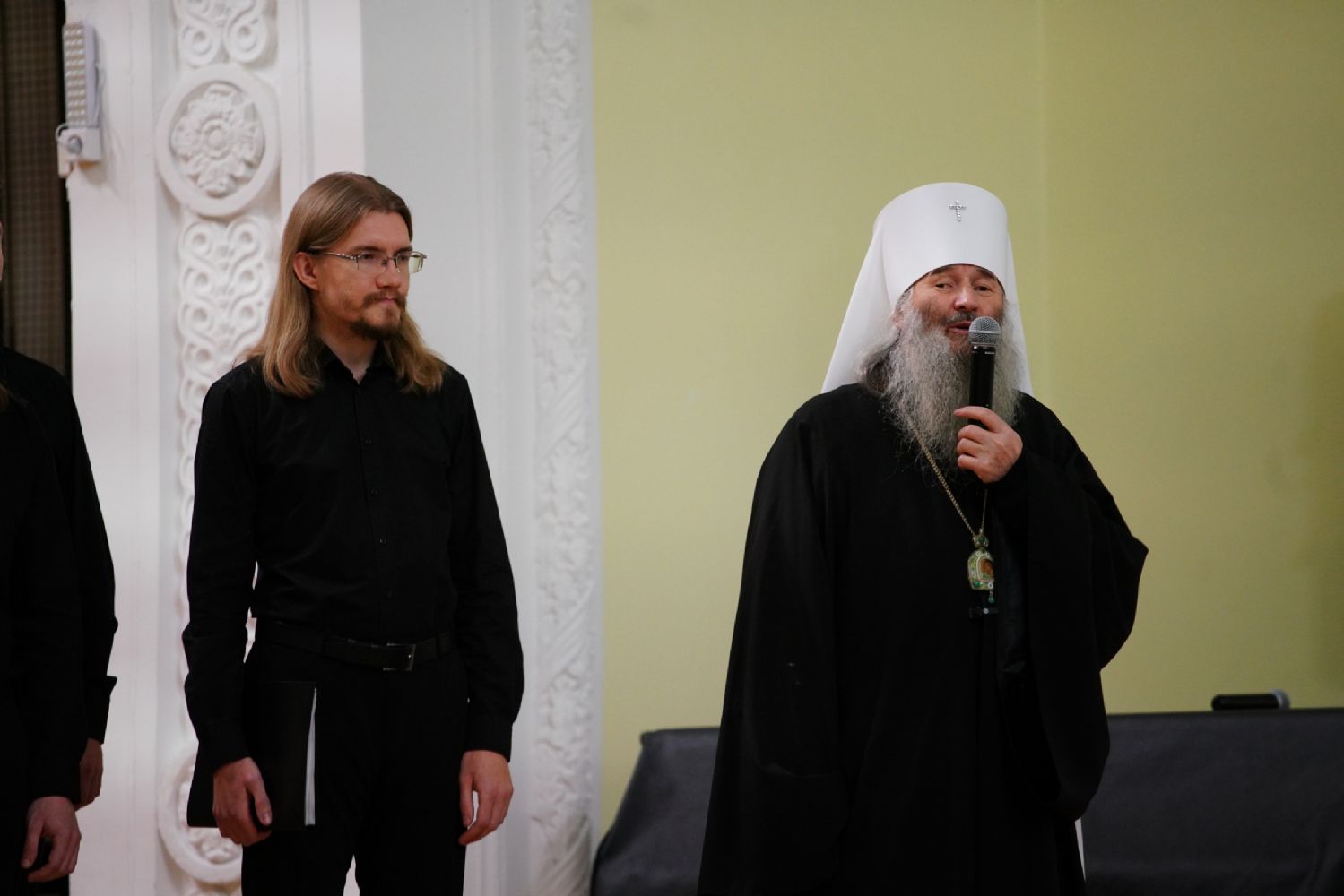 Концерт Архиерейского мужского хора из Казани под управлением Дениса Рогова посетил митрополит Йошкар-Олинский и Марийский Иоанн. Приветствуя собравшихся, владыка отметил: