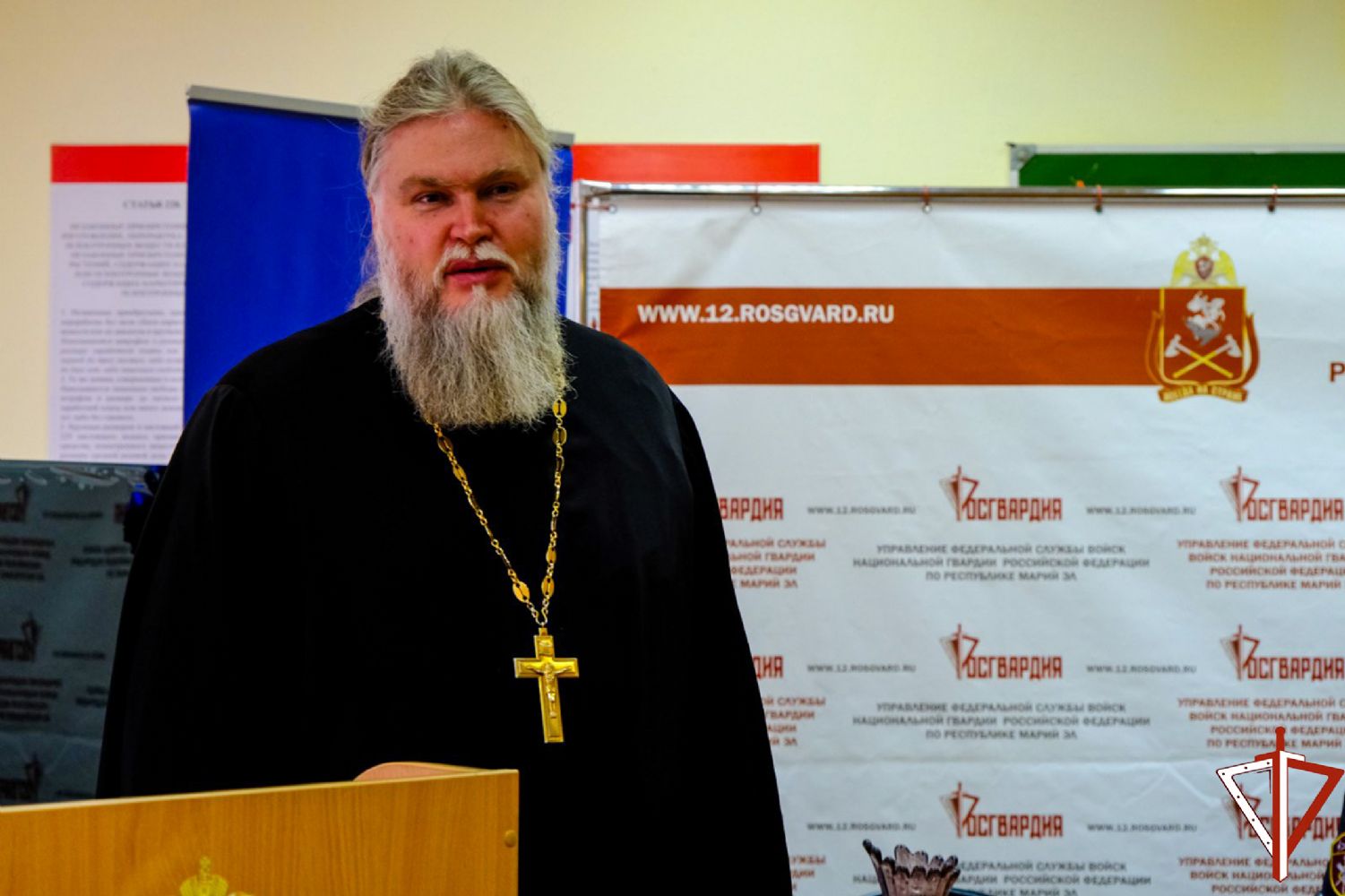 Также с поздравительными словами выступили врио начальника ФГКУ «ОВО ВНГ России по Республике Марий Эл» подполковник полиции Сергей Стешин, председатель ветеранской организации регионального управления Росгвардии Александр Головин и руководитель отдела по взаимодействию с правоохранительными органами и вооруженными силами Йошкар-Олинской епархии протоиерей Александр Бачурин.