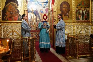 По случаю праздника за богослужением читались ветхозаветные паремии из книг Бытия, пророка Иезекииля и Притчей Соломоновых, прообразующие Пресвятую Богородицу. На литии освящались хлебы, пшеница, вино и елей.