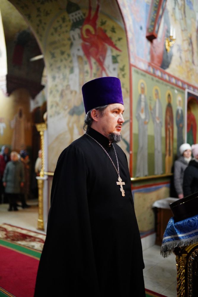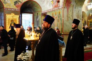 Архипастырю сослужили настоятель собора протоиерей Евгений Кутырев, благочинный Йошкар-Олинского церковного округа протоиерей Андрей Норкин, клирики собора иереи Владимир Камышев, Олег Большаков и Димитрий Копылов, диакон Владимир Лихачев, а также протодиакон Михаил Козловский. Пел хор собора под управлением Ангелины Бабиной.