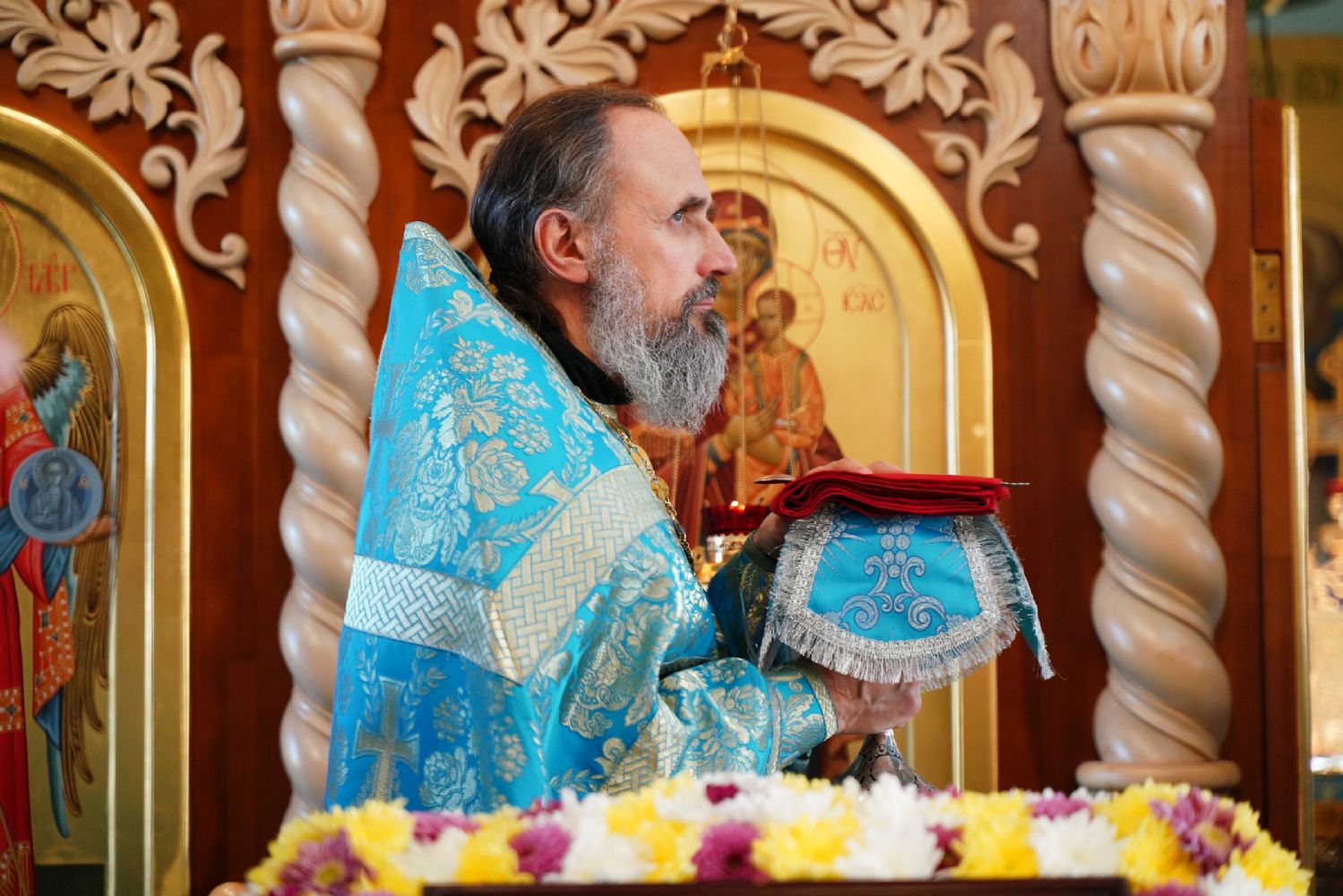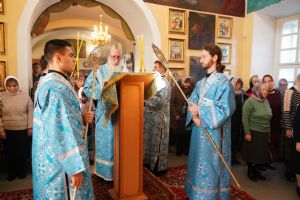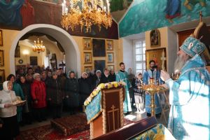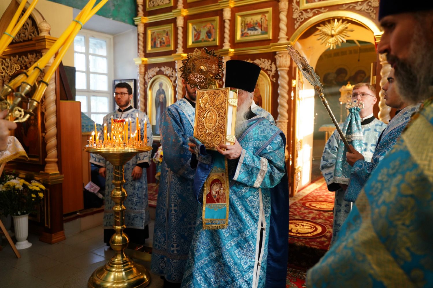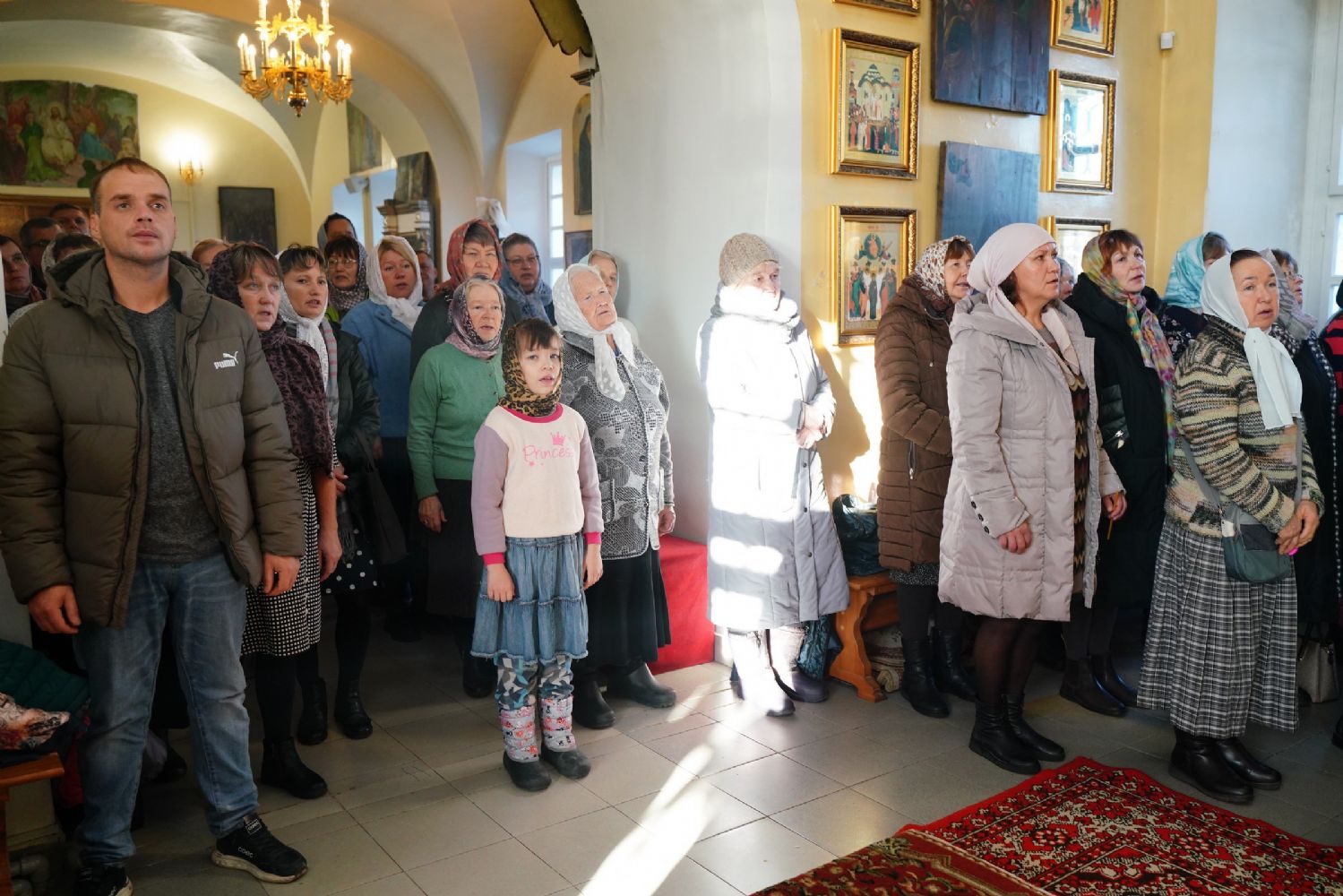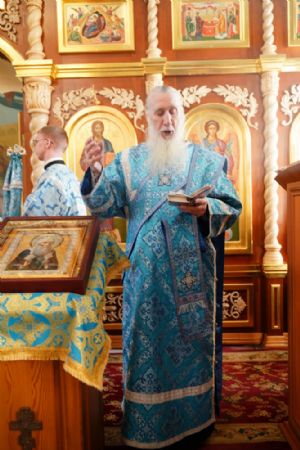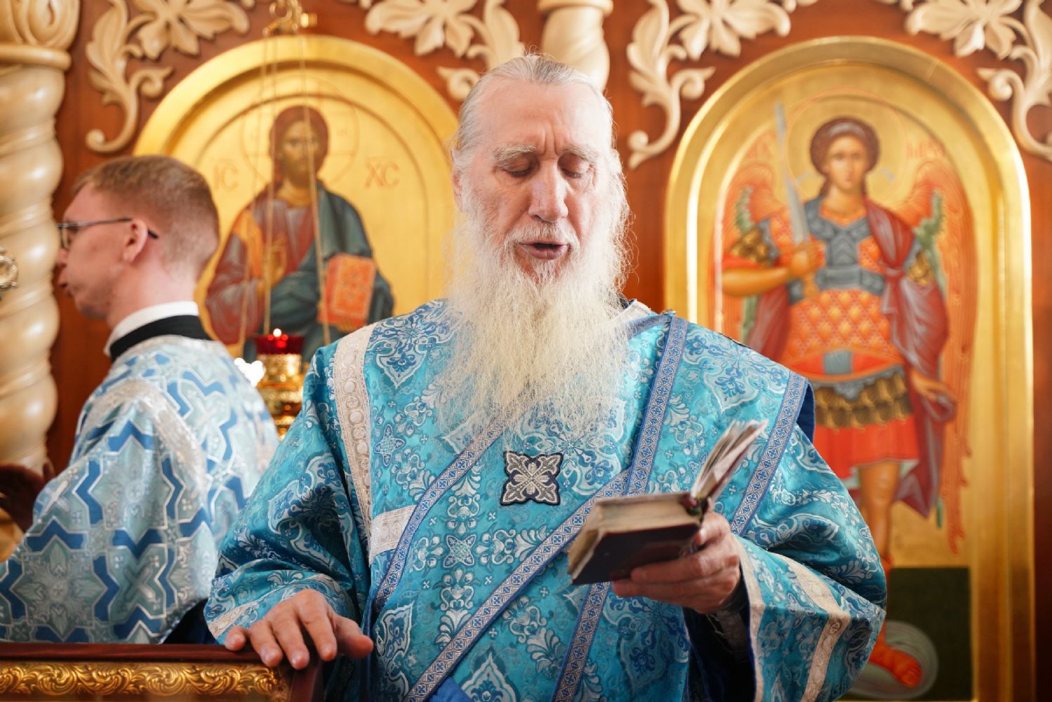 Архипастырю сослужили настоятель храма иерей Александр Коваль и протодиакон Михаил Козловский. Песнопения исполнял хор храма.