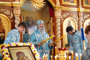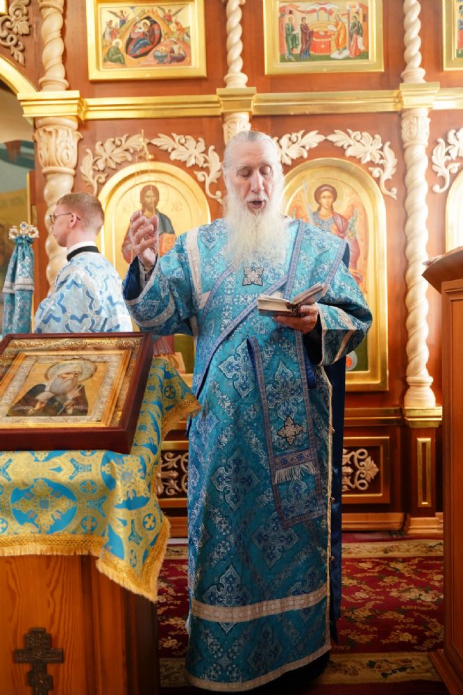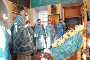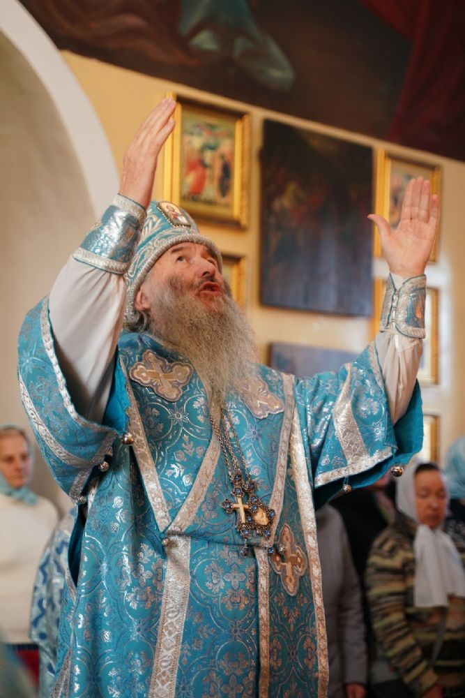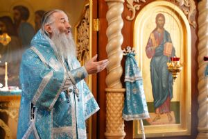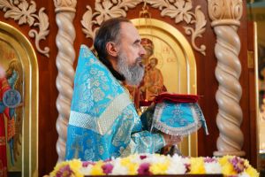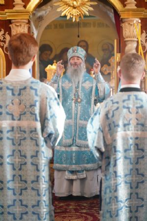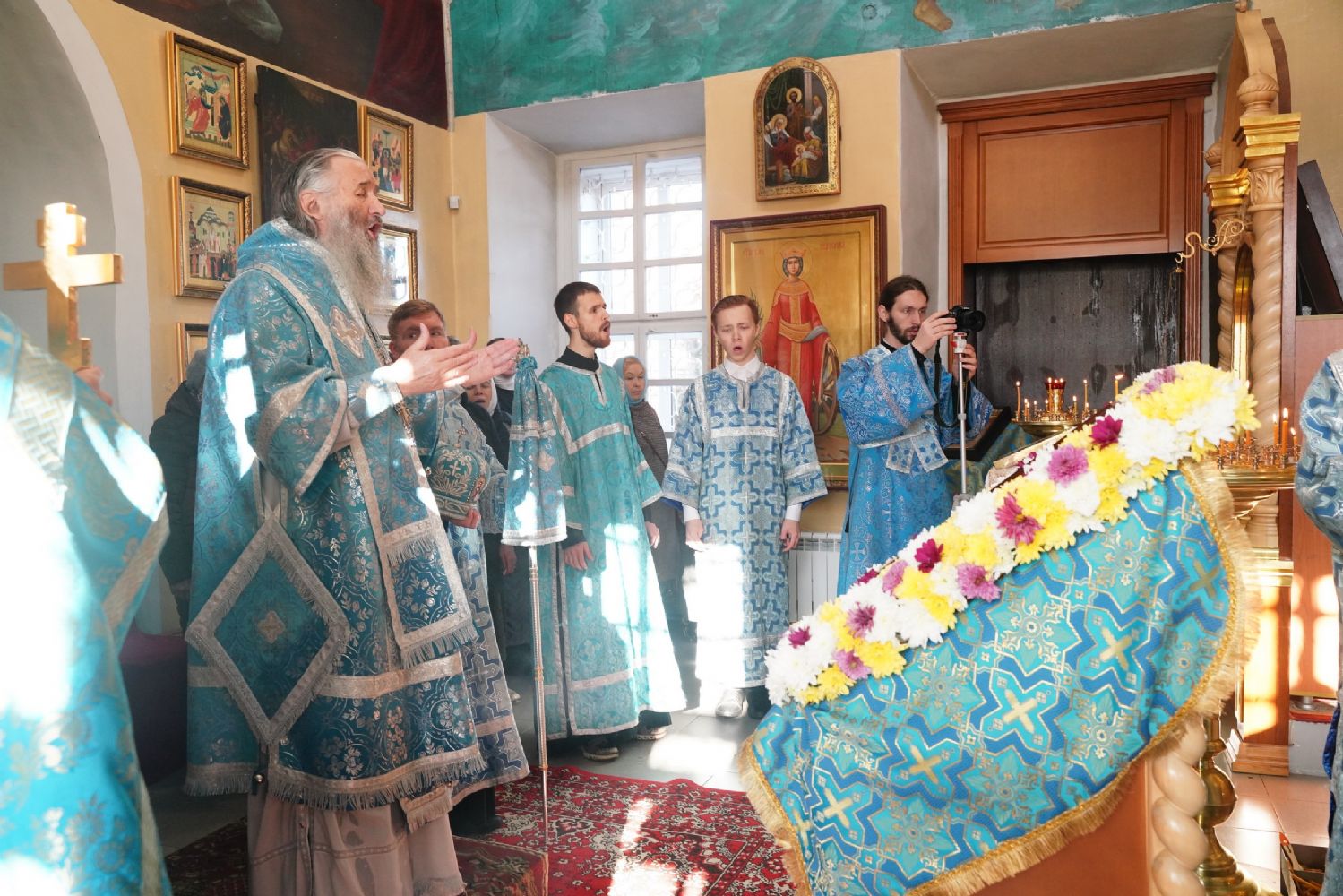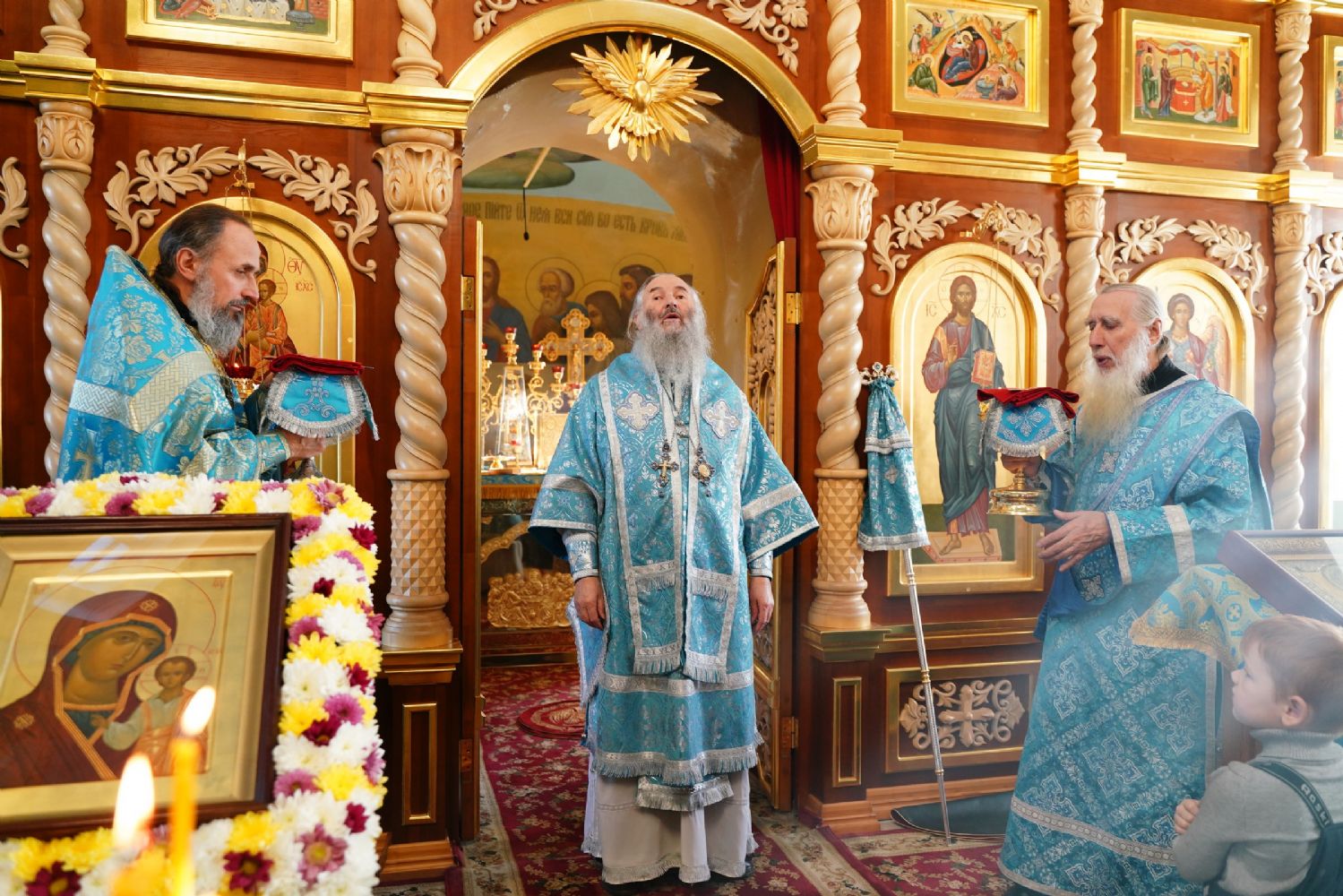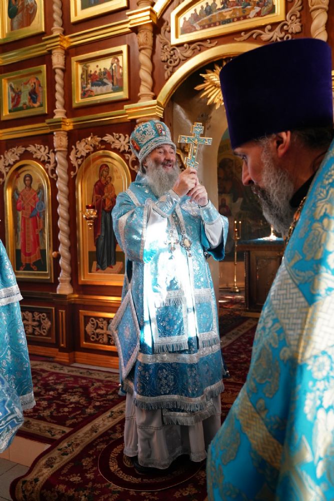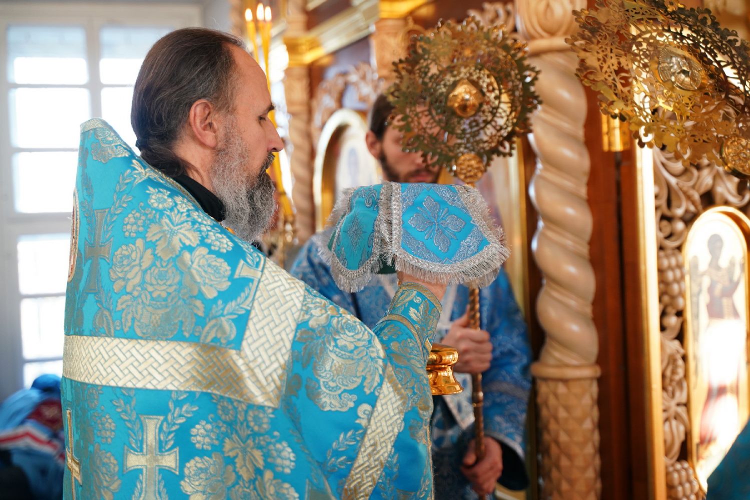 Архипастырю сослужили настоятель храма иерей Александр Коваль и протодиакон Михаил Козловский. Песнопения исполнял хор храма.