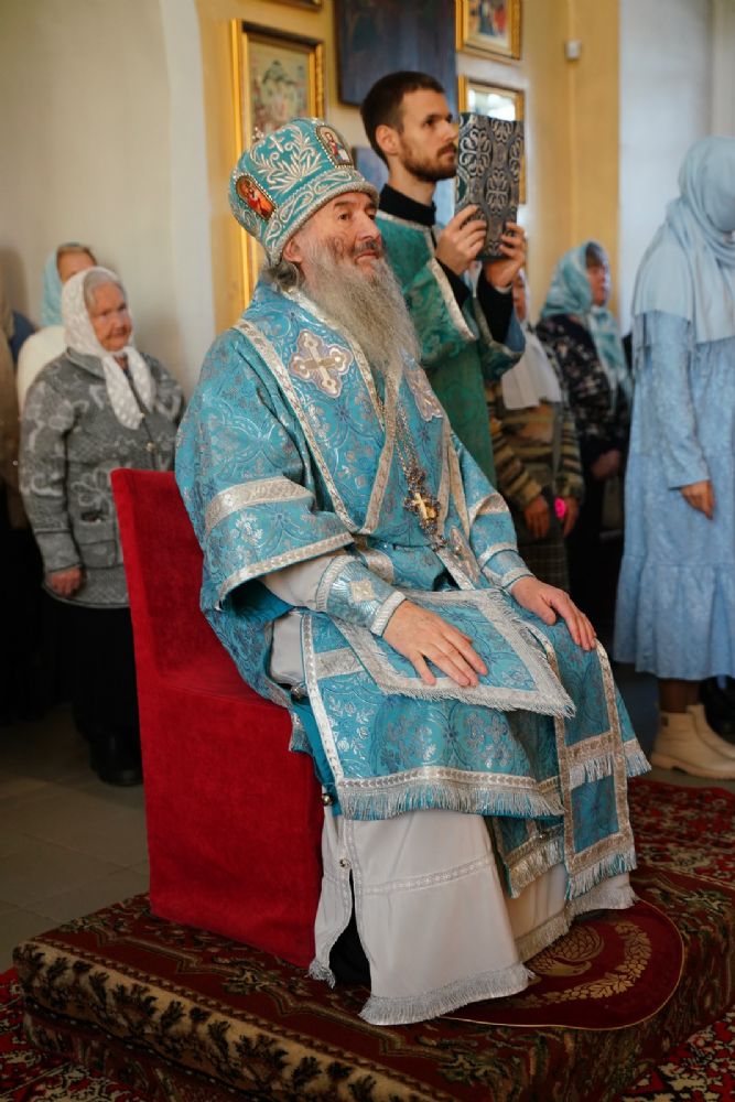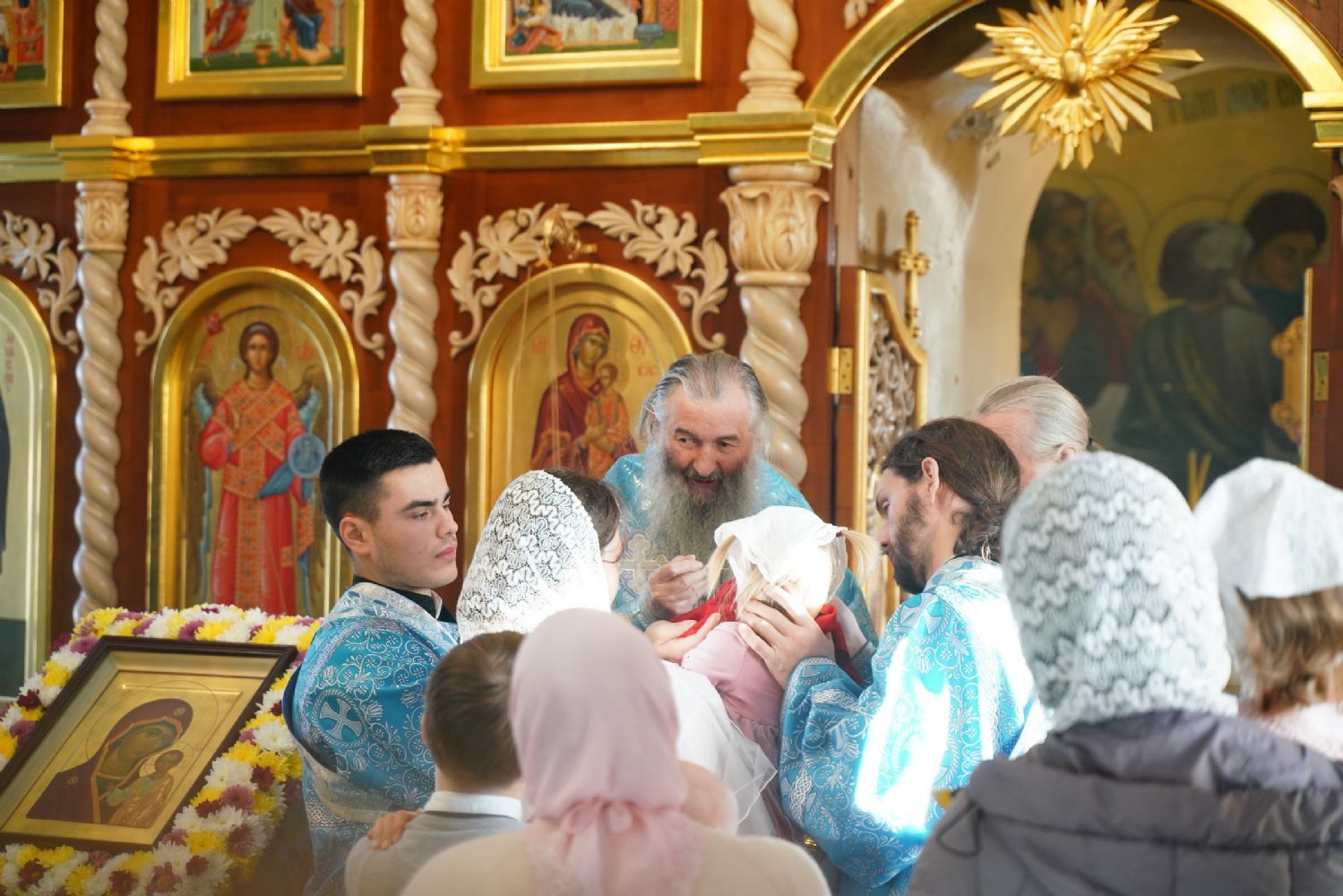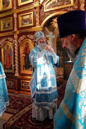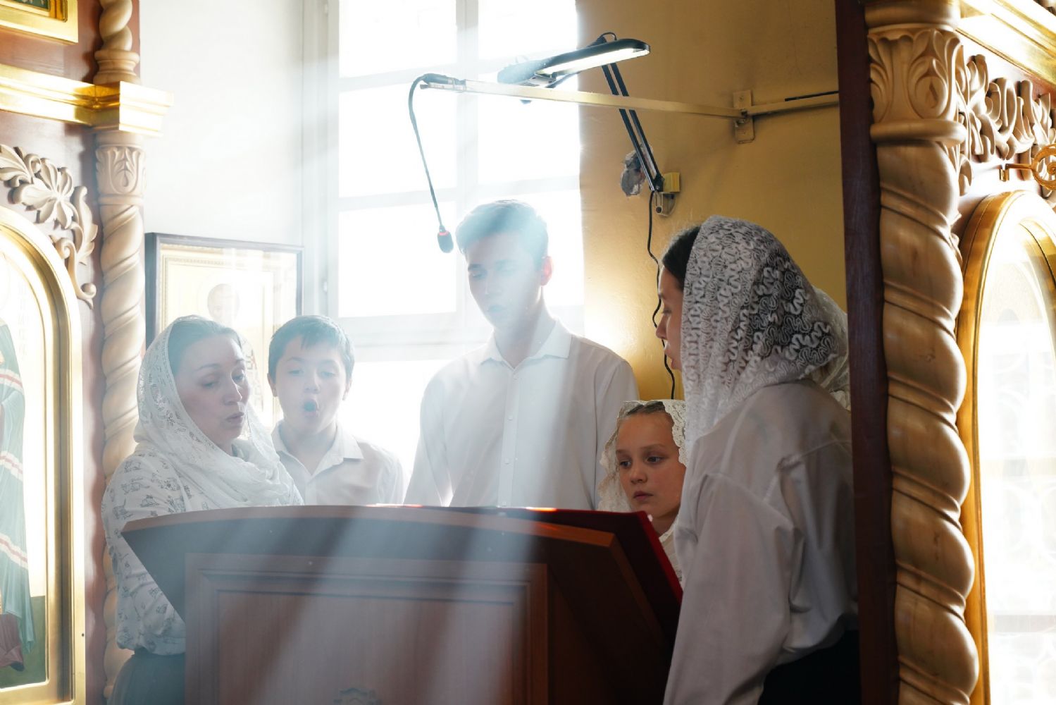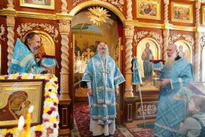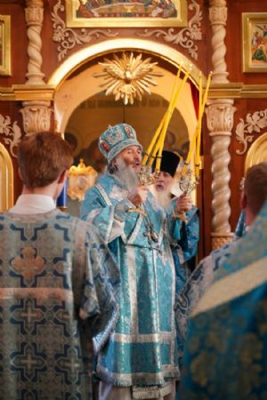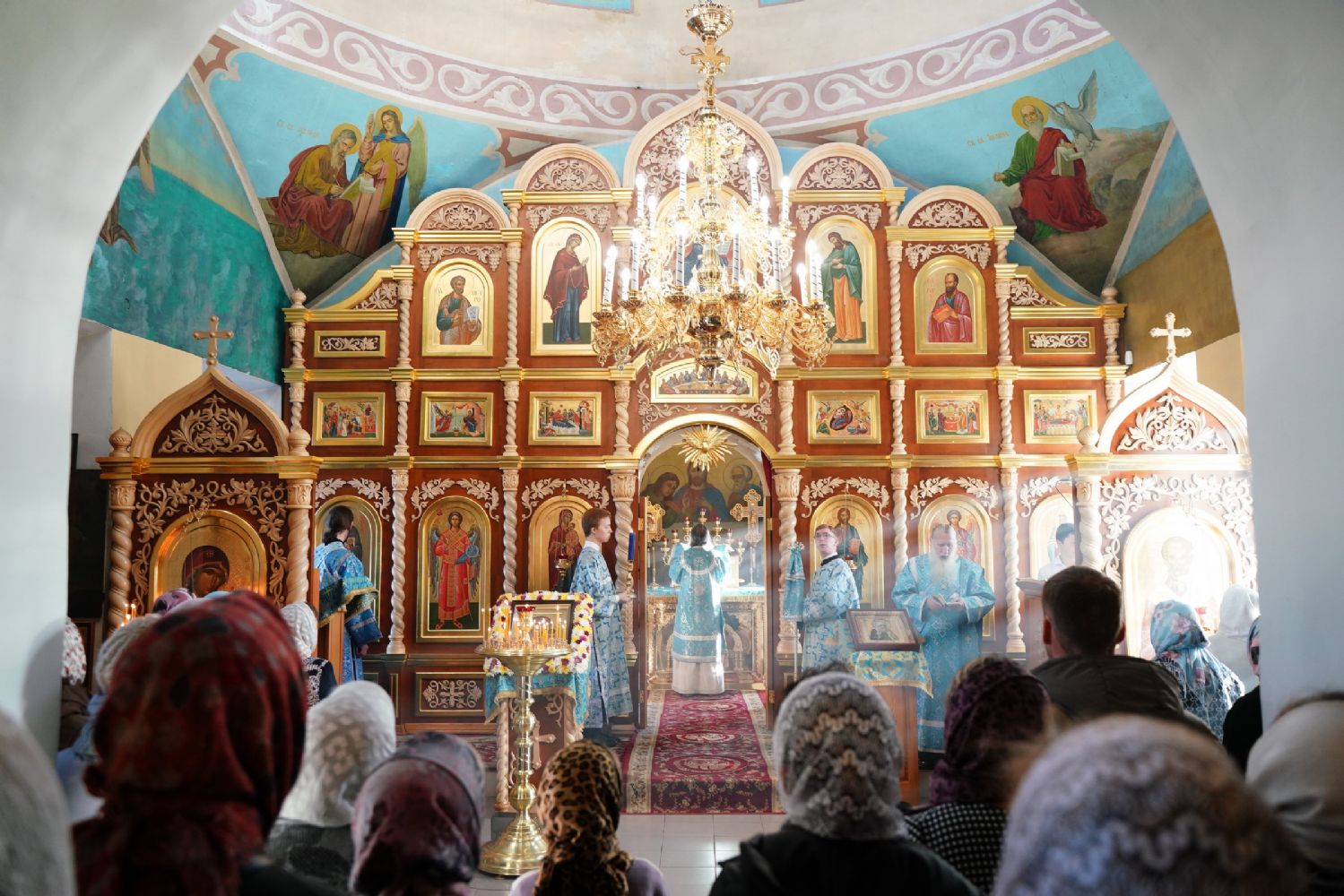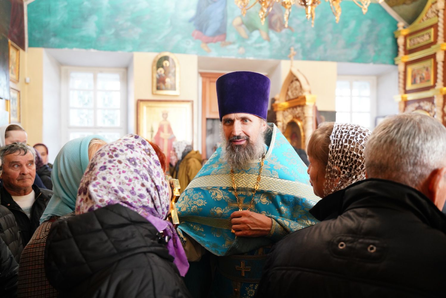 Архипастырю сослужили настоятель храма иерей Александр Коваль и протодиакон Михаил Козловский. Песнопения исполнял хор храма.