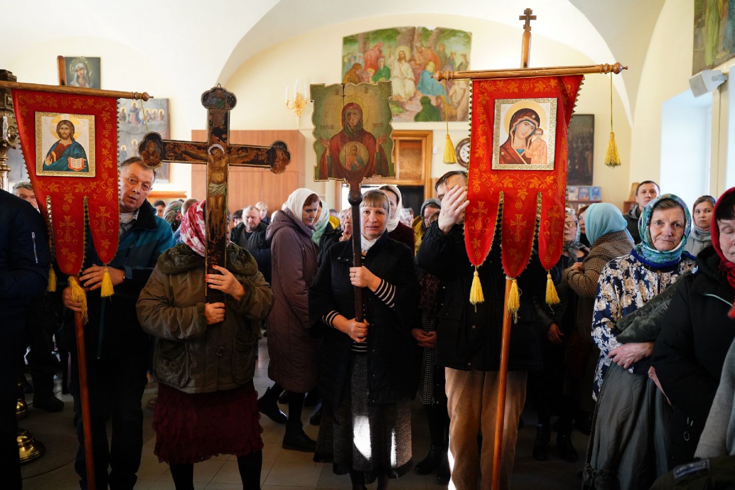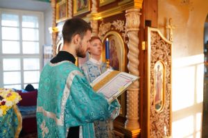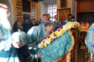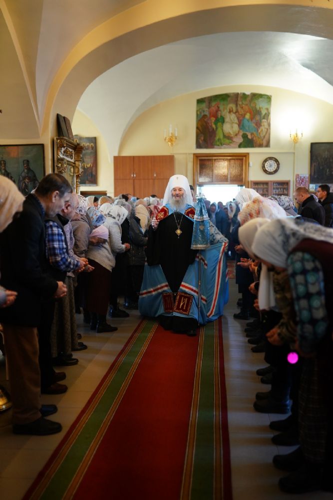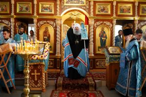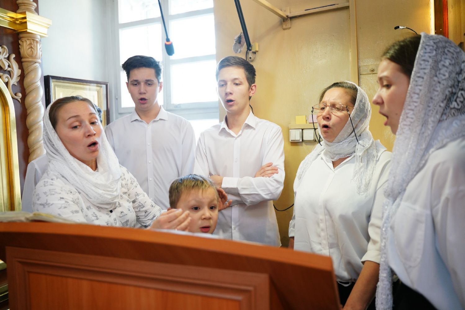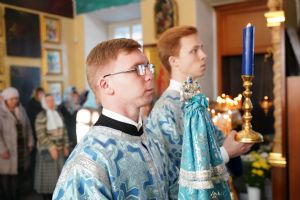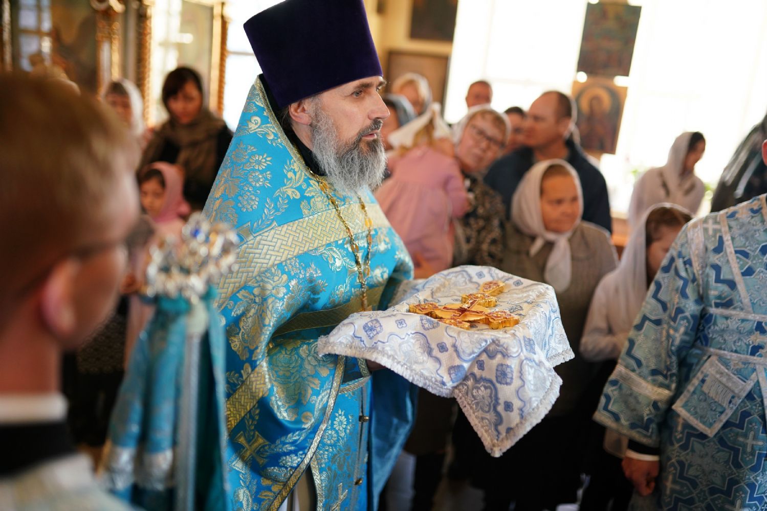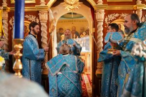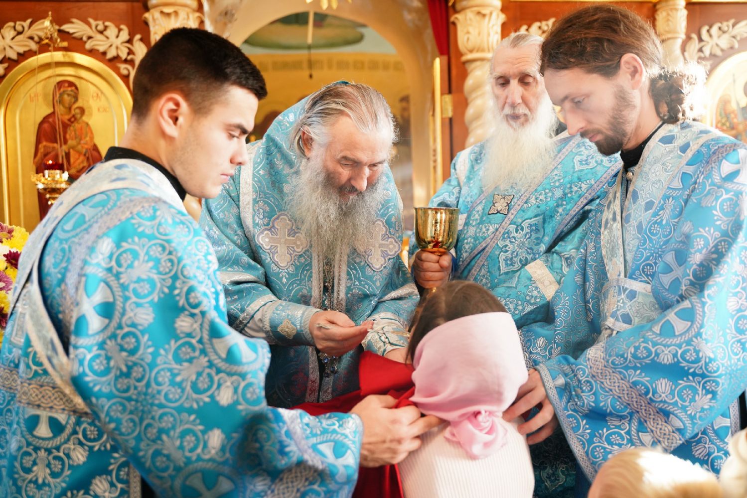 Архипастырю сослужили настоятель храма иерей Александр Коваль и протодиакон Михаил Козловский. Песнопения исполнял хор храма.